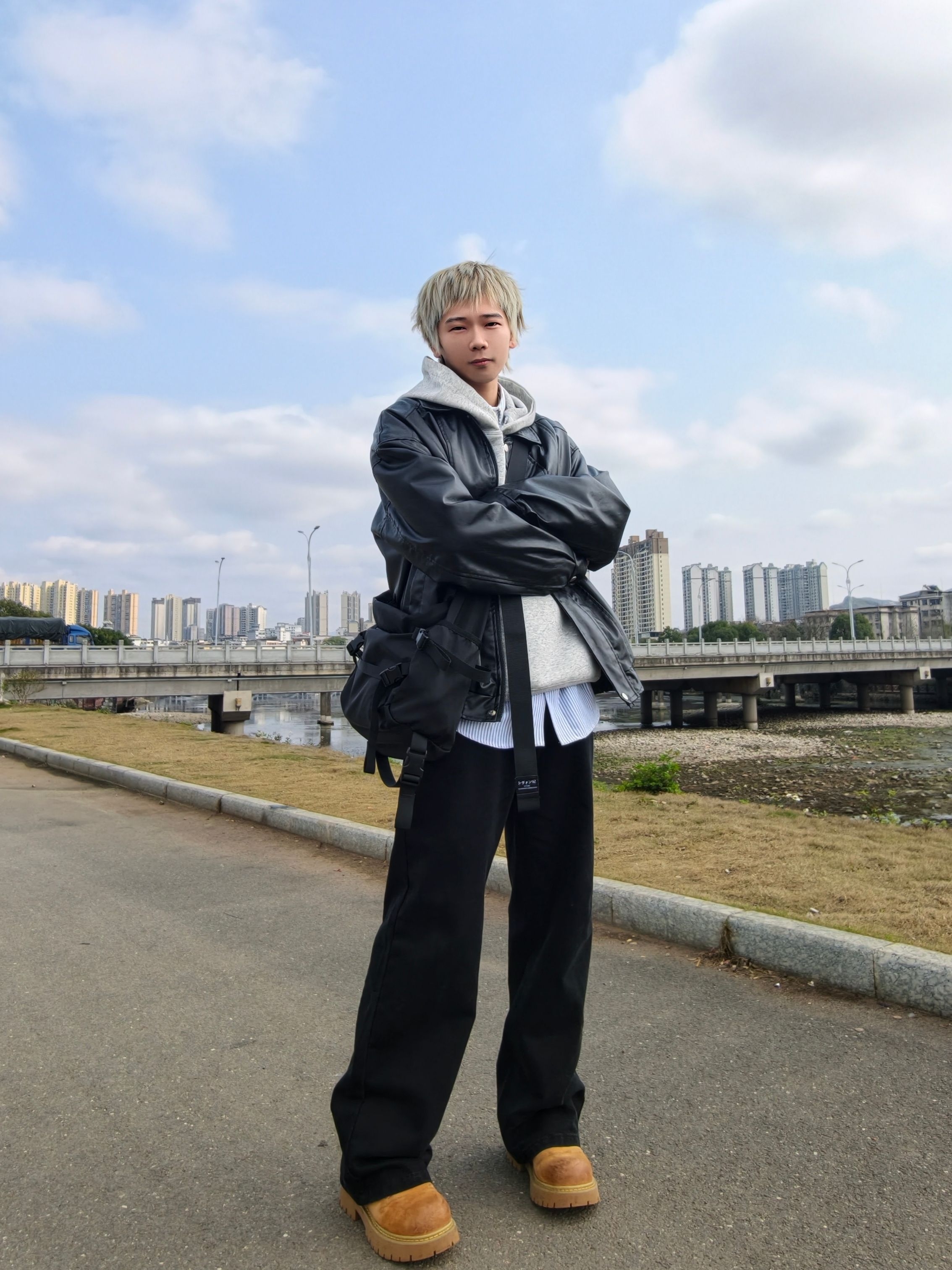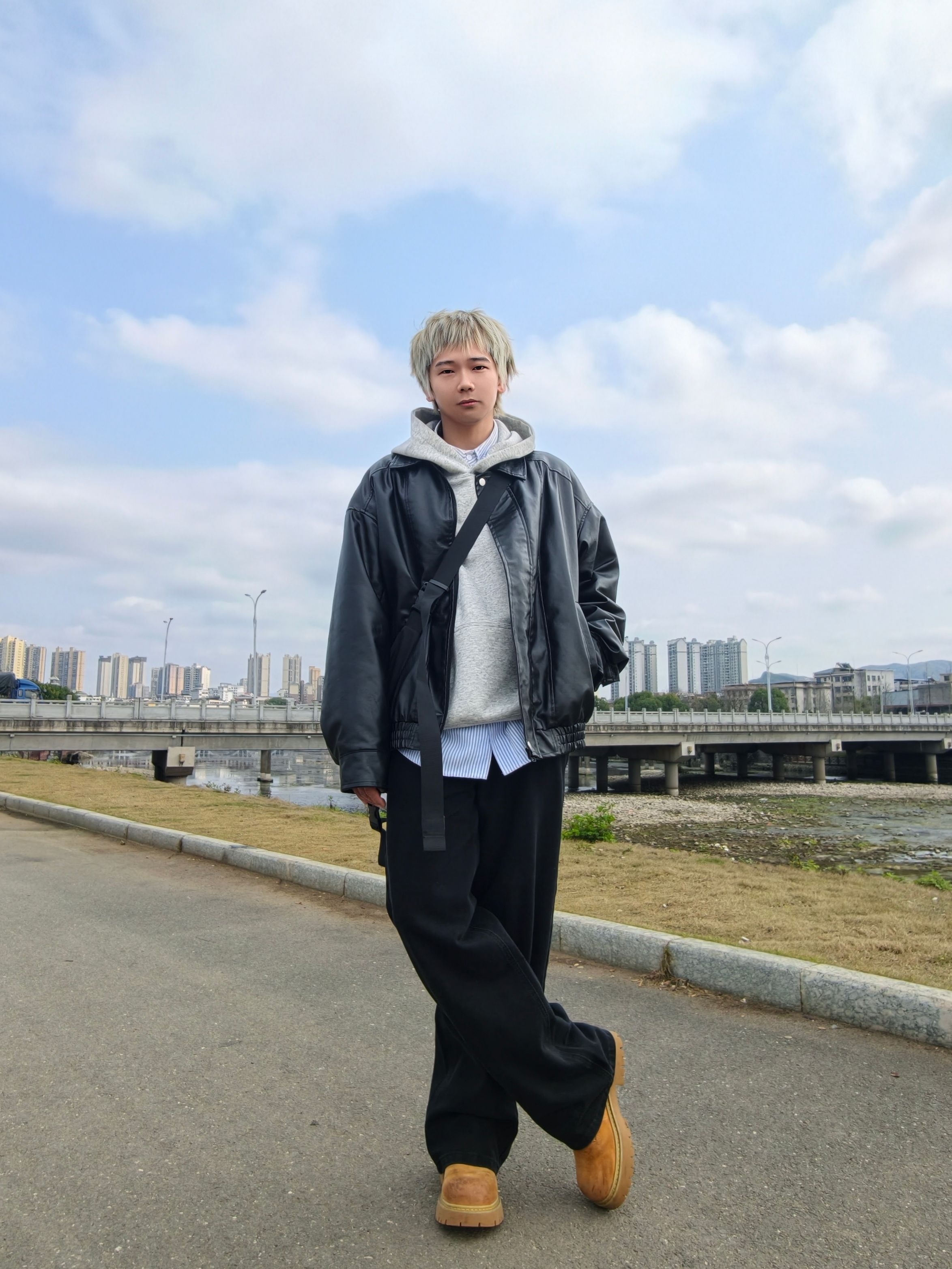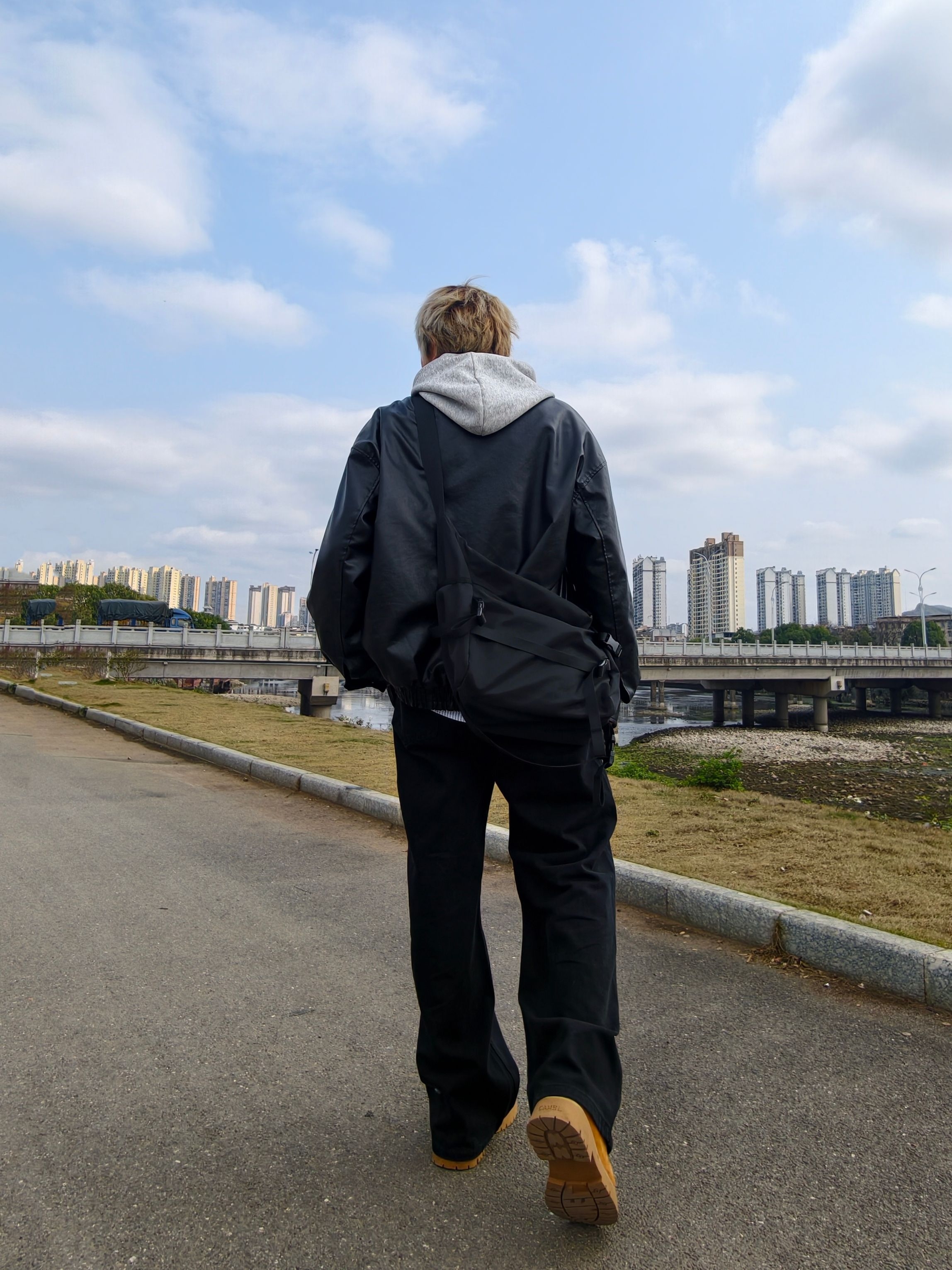 黑色系叠穿好看又很酷 卫衣内搭衬衫增加层次感 大黄靴撞色有增高还复古
