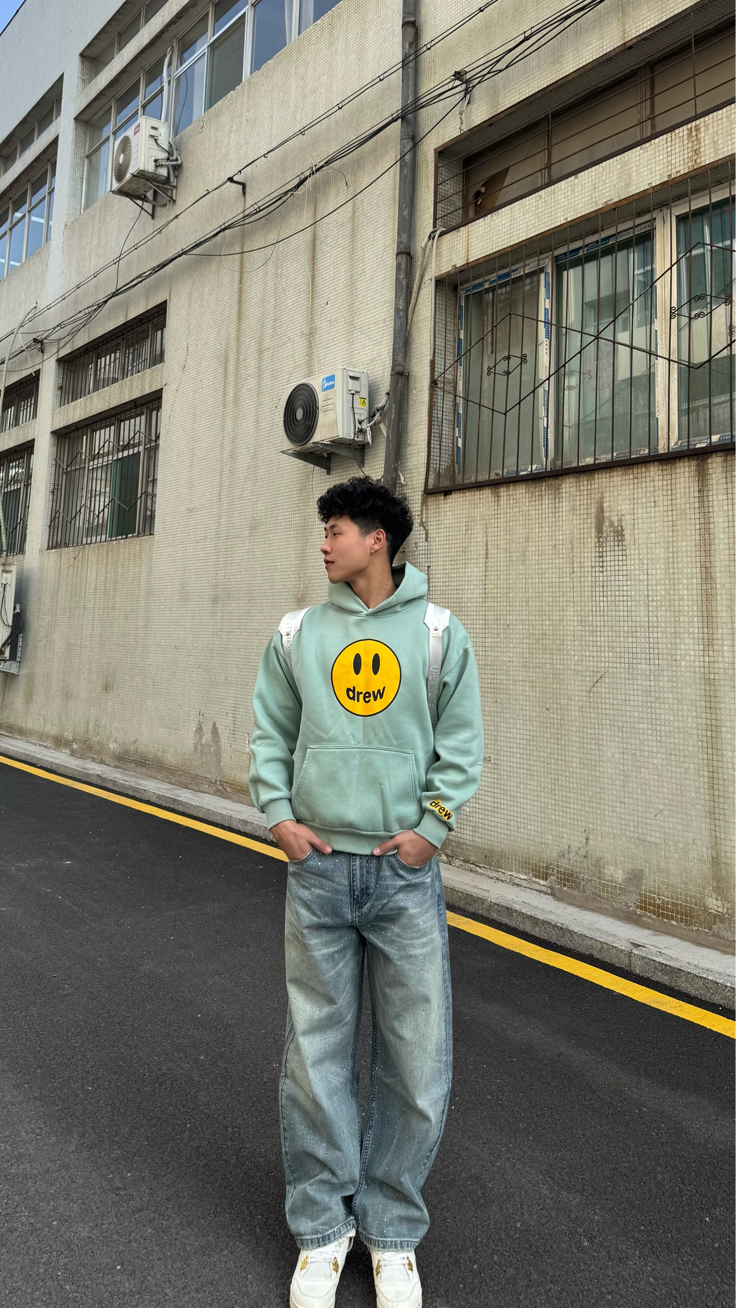 谁懂啊!春天的第一件卫衣直接被drew这件拿捏了🤌 薄荷绿也太显白了吧!黄皮男生直接冲,上身秒变冷白皮,完全不挑皮! 经典的黄色笑脸印花,美式街头感拉满,oversize版型对身材包容性超强,微胖男生也能轻松驾驭,慵懒松弛感直接焊在身上~ 面料软fufu的,加绒款早春穿刚刚好,不闷汗还保暖,袖口的小字母细节感拉满,细节控狂喜! 搭配做旧泼墨牛仔裤+小白鞋,一套就是韩系潮男穿搭,上学、出街、约会都能...