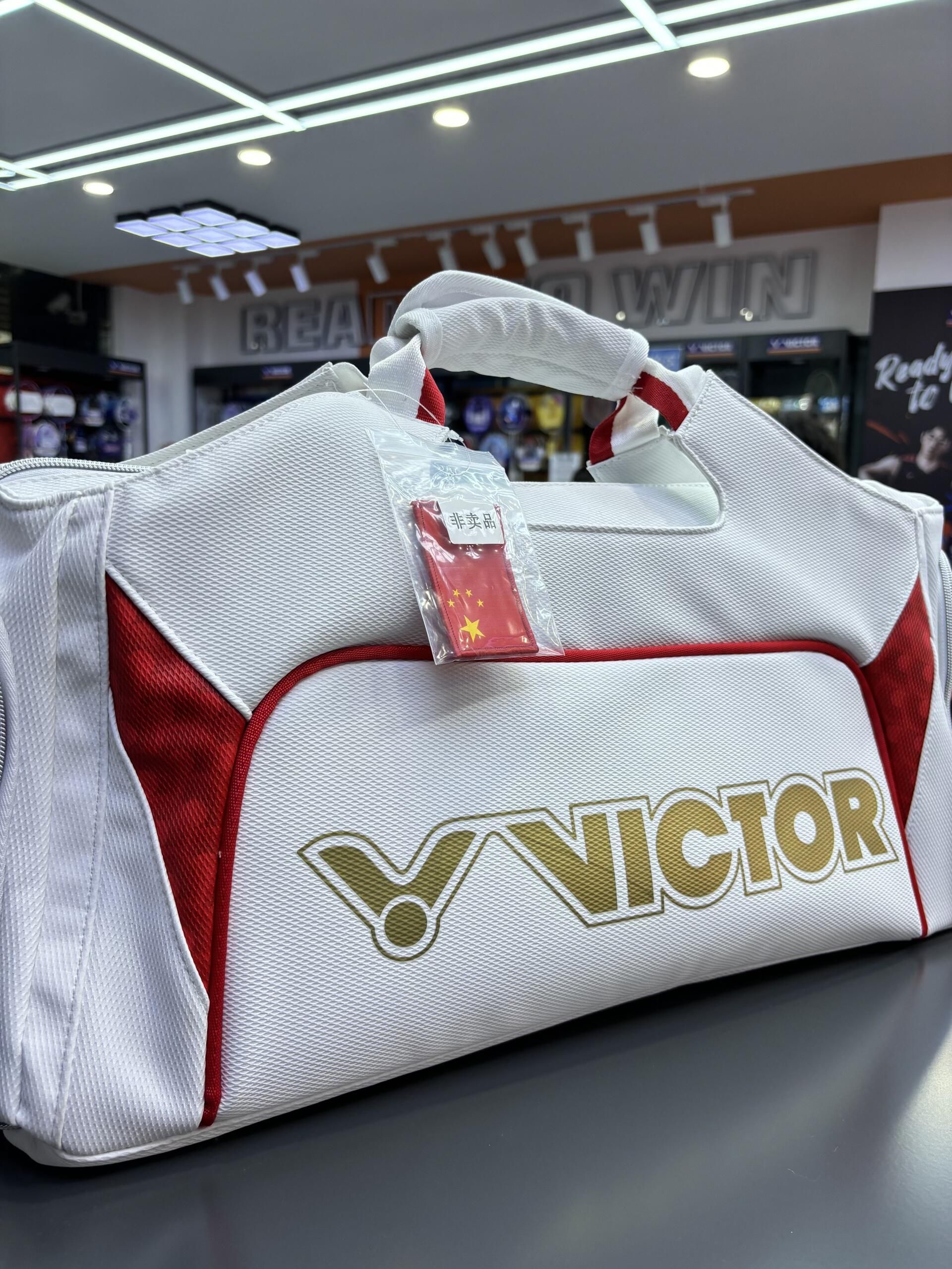 🏸VICTOR中国国家队羽毛球包,专为羽毛球爱好者设计,白色主色+红色装饰,正面“CHINA”字样超有国风氛围感!包体采用耐磨防水材质,独立拍仓、扩容主仓、干湿分离隔层,收纳球拍、球鞋、衣物、水杯都OK✨。外部小物袋方便放钥匙、手胶等小物件,肩带可调节,手提斜挎都舒适,日常训练或比赛都能轻松应对!