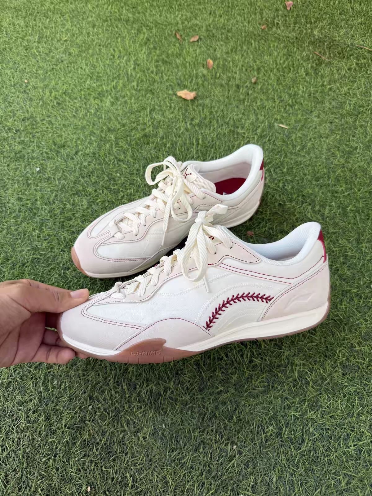 李宁复古休闲鞋以米白为主调,酒红色车线勾勒出棒球缝线元素,麂皮与网布拼接质感拉满。生胶大底耐磨防滑,脚感也非常OK,低帮版型适配日常通勤、街头穿搭,复古又不失运动感,是春日出街的百搭选择,颜值与舒适度双在线。