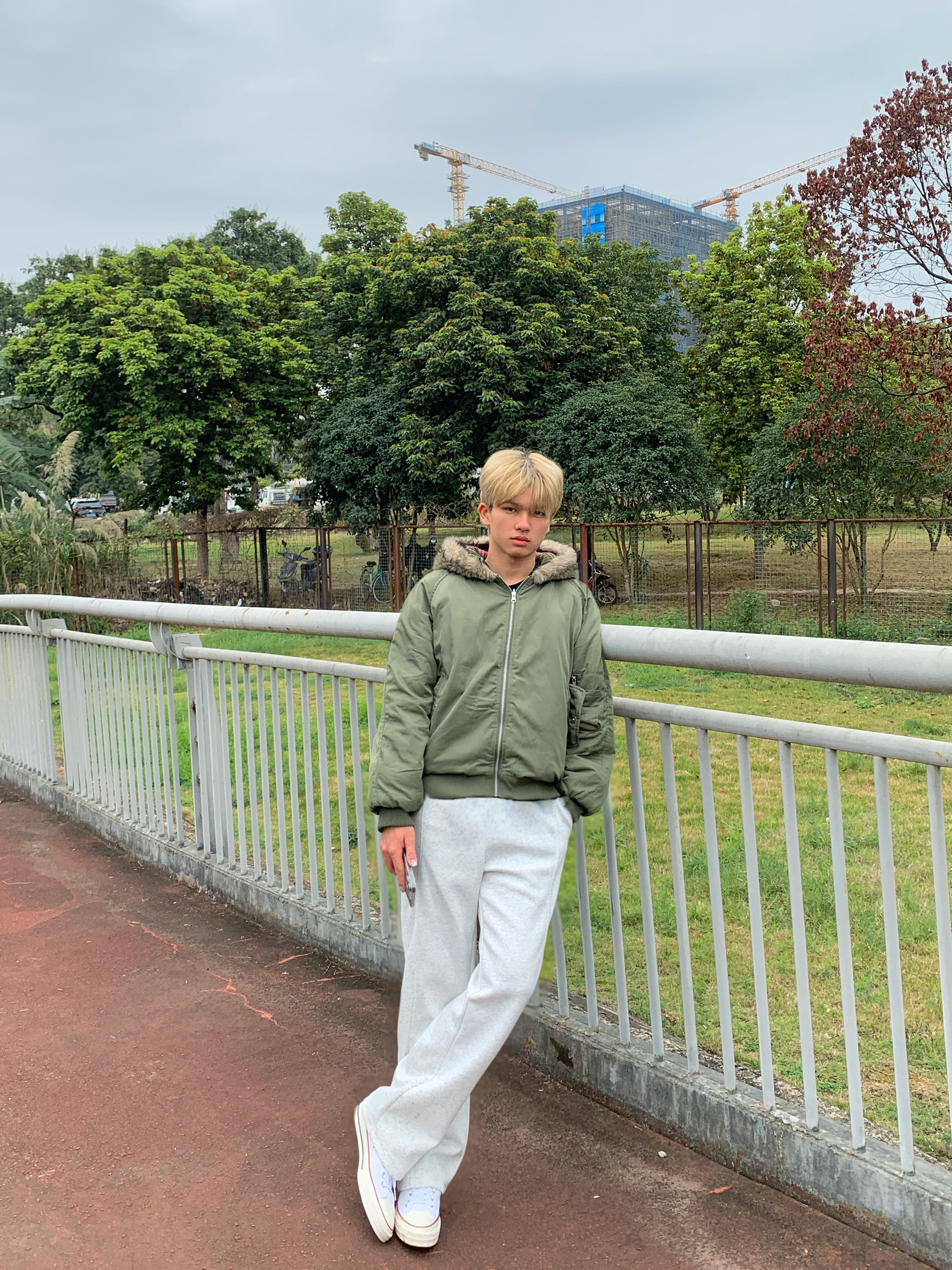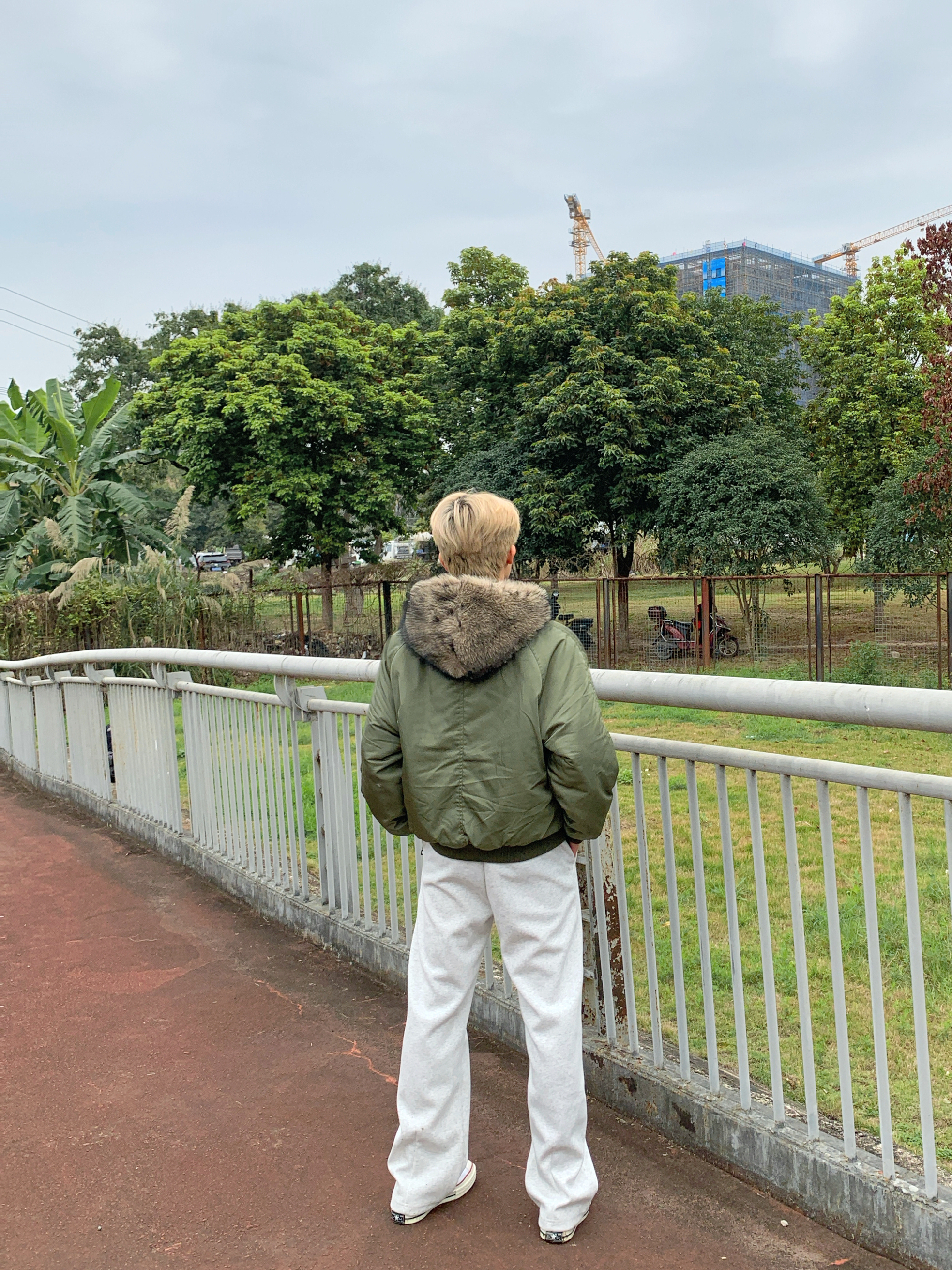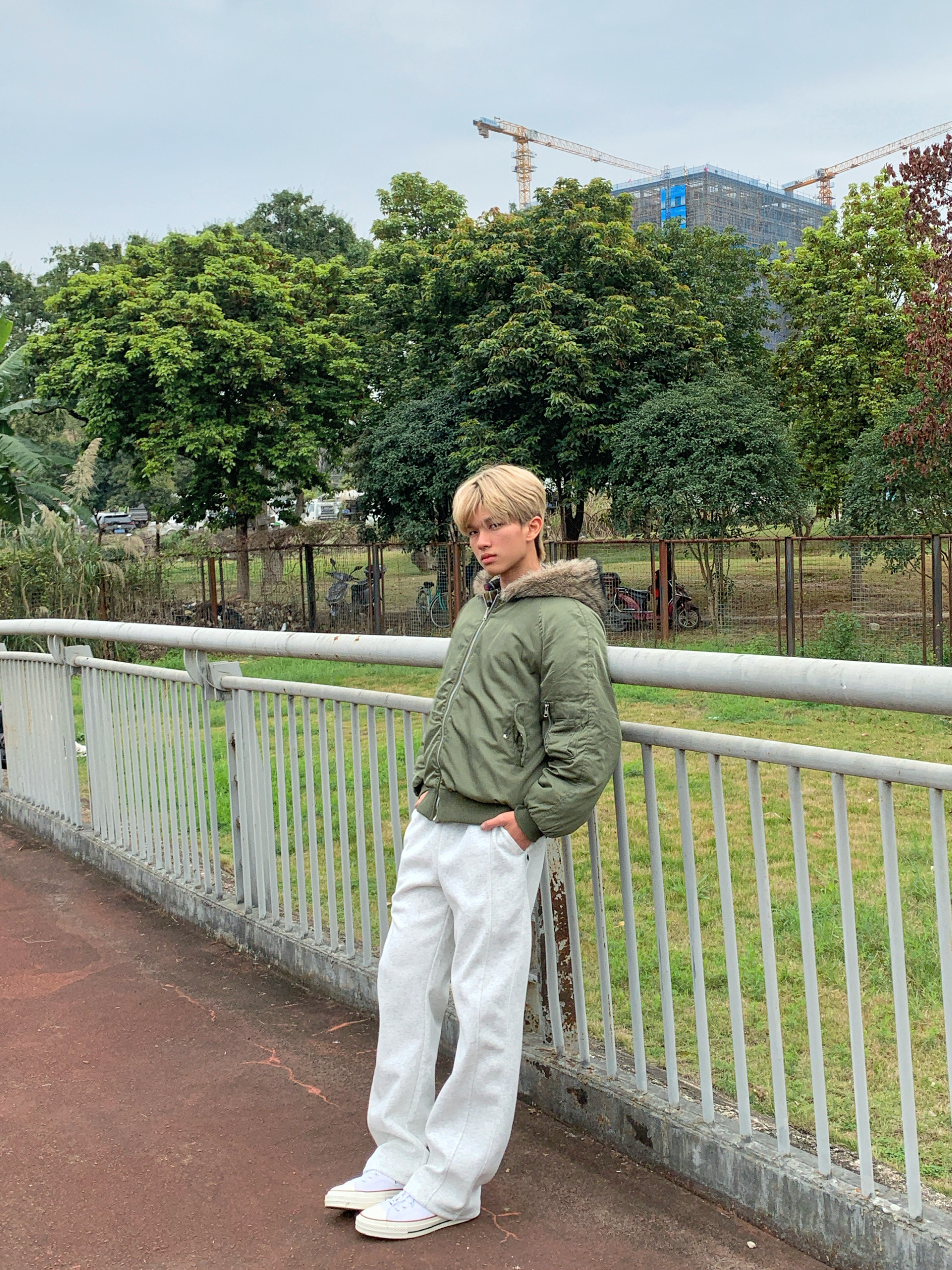 ▪️上衣:复古军绿毛领夹克,质感毛领超有冬日氛围 ▪️下装:白色阔腿卫裤,中和深色的厚重,视觉清爽 ▪️鞋履:经典帆布鞋,休闲感拉满 短款版型超友好,小个子也能轻松驾驭,学生党直接抄作业✅