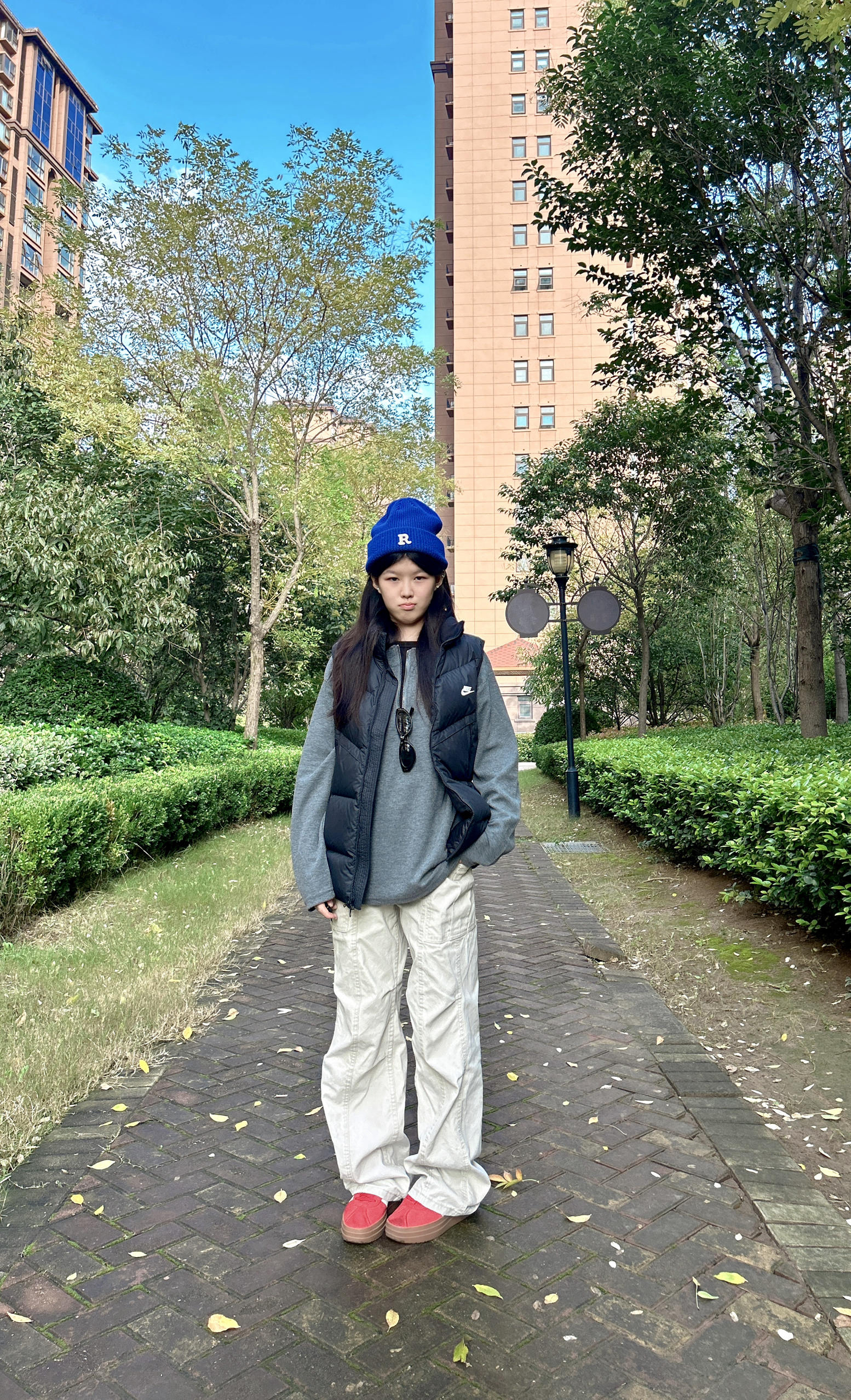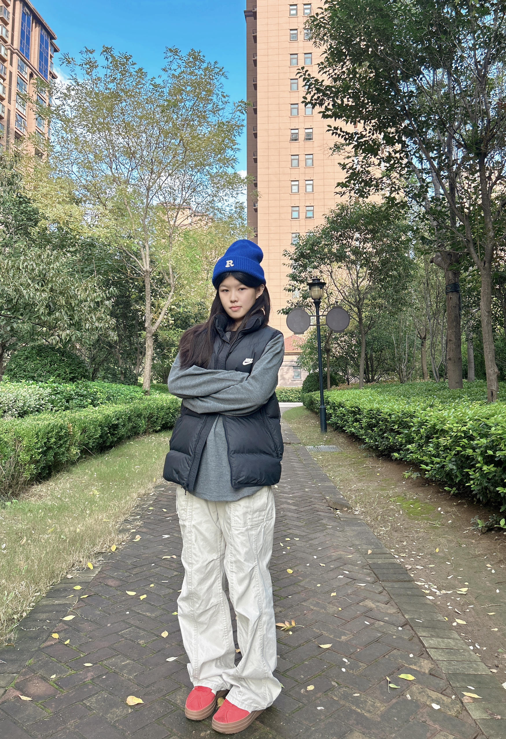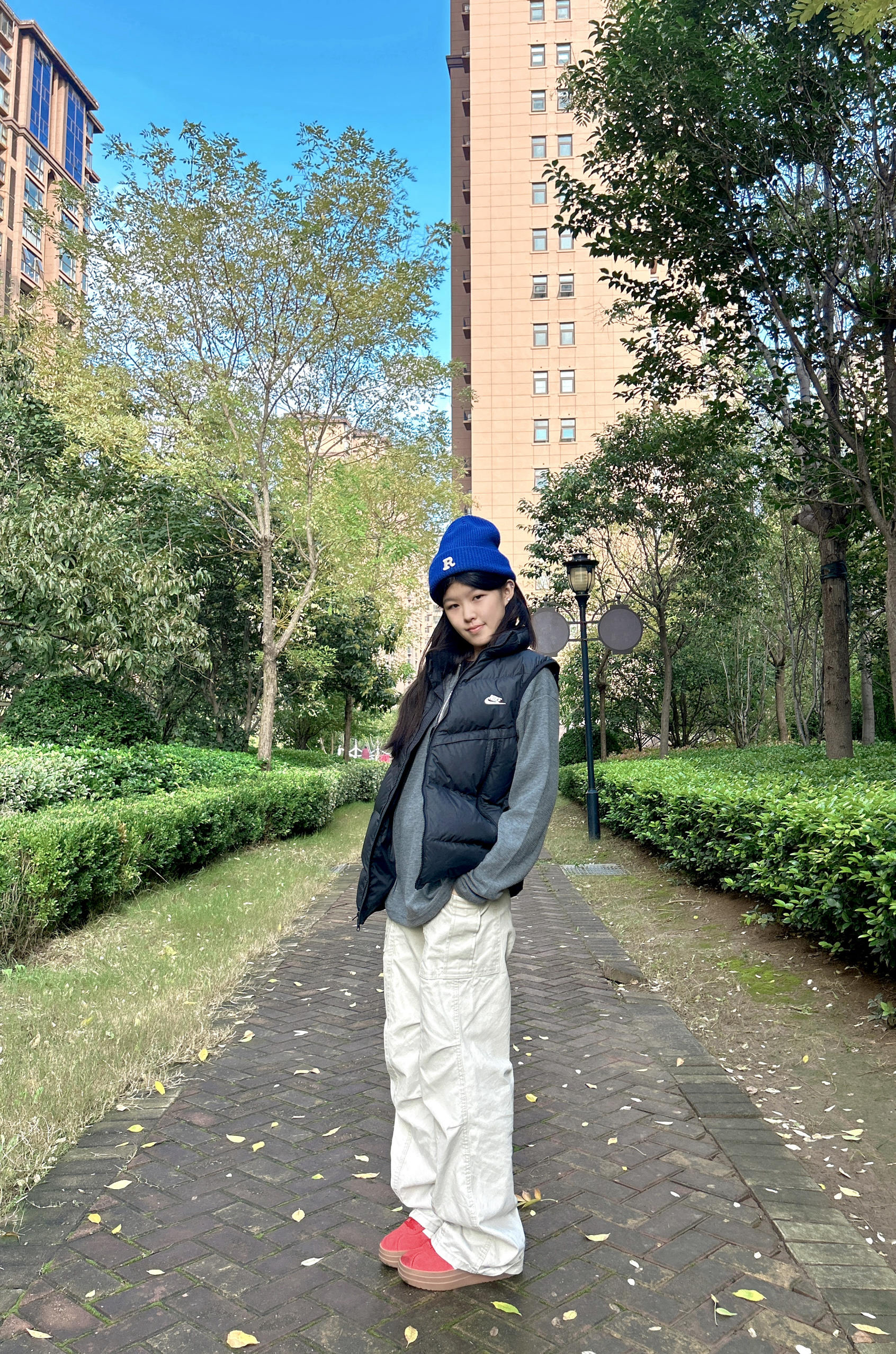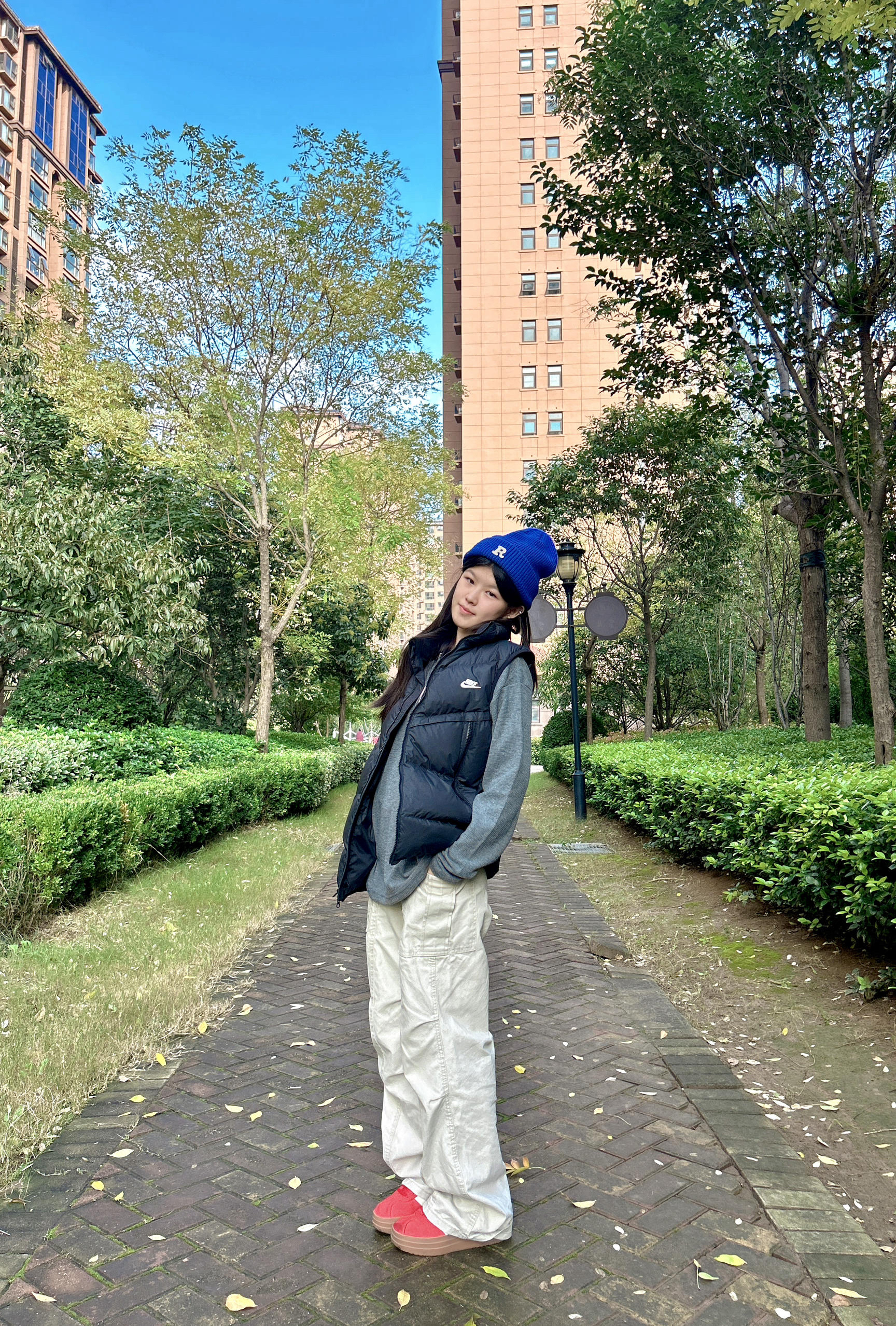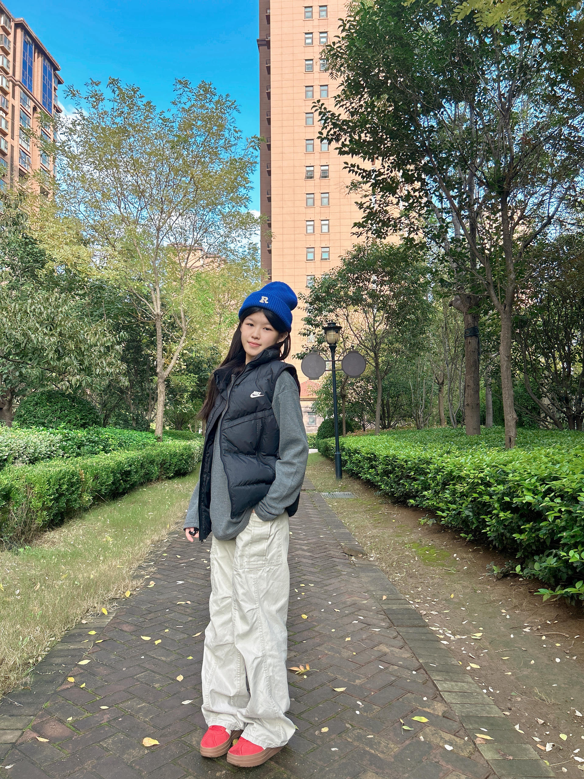 真的好喜欢这个耐克羽绒马甲非常保暖特别好穿👍👍搭配工装裤非常好看日常通勤 把羽绒马夹焊在我身上 松弛感拉满