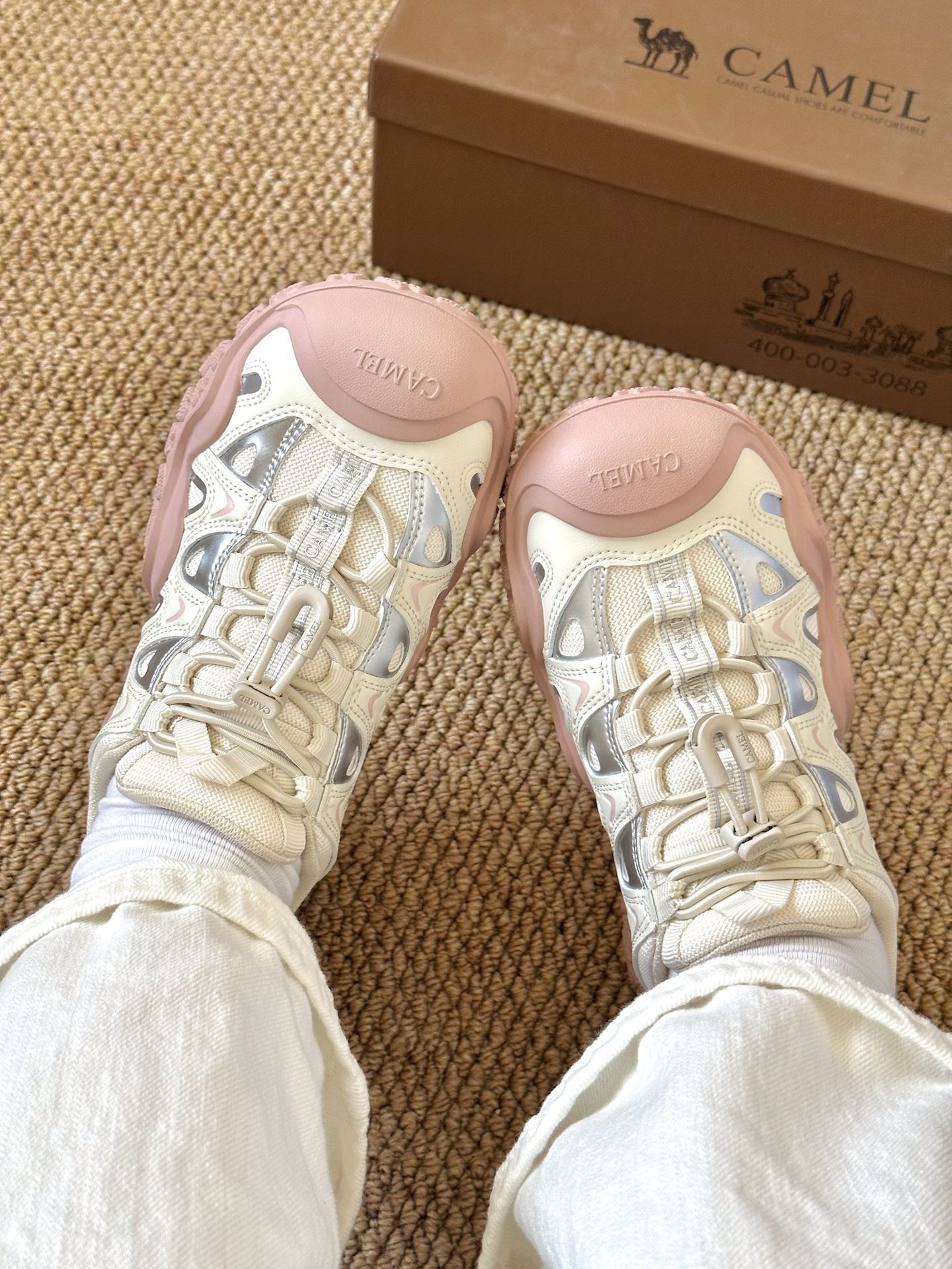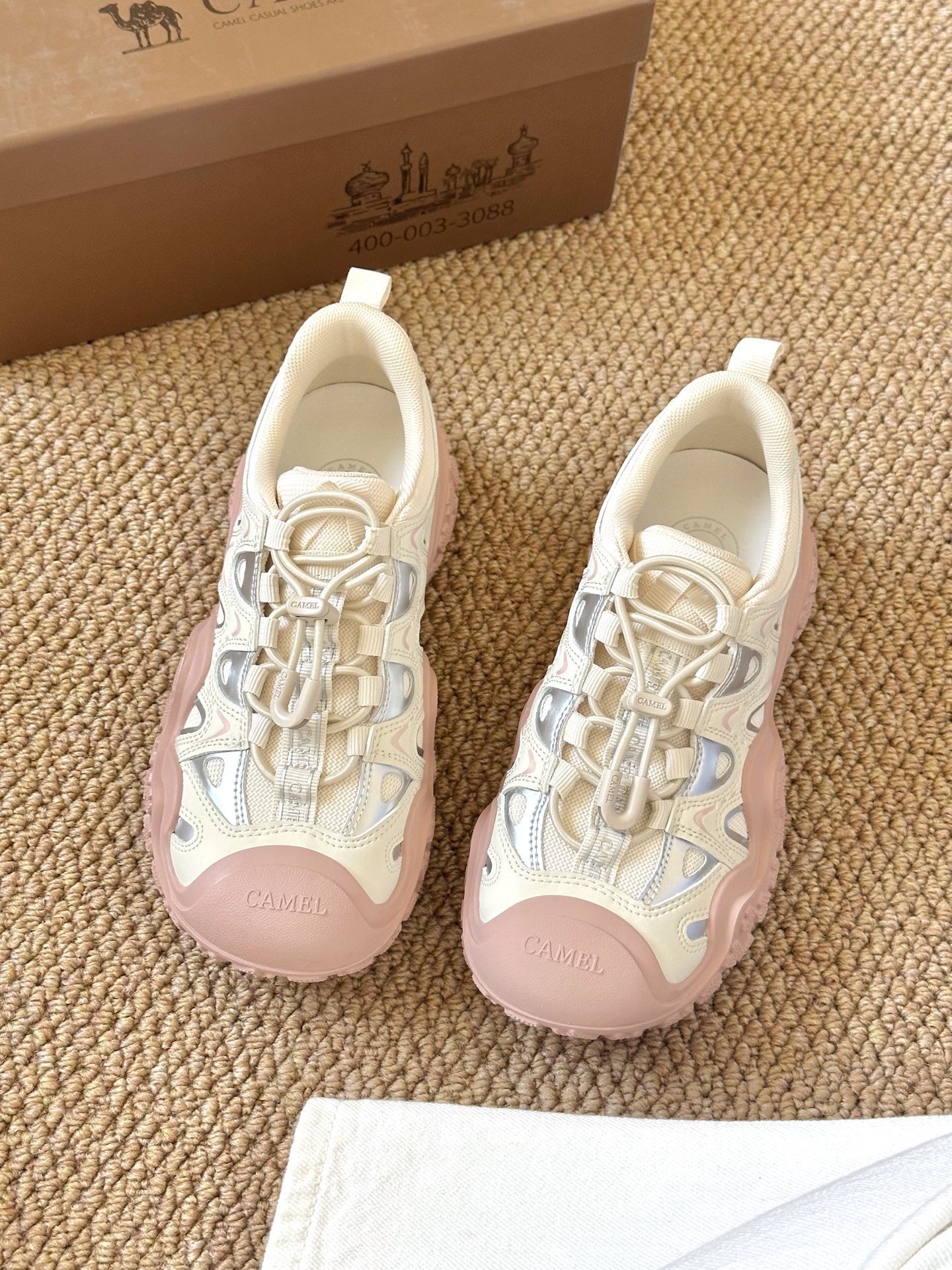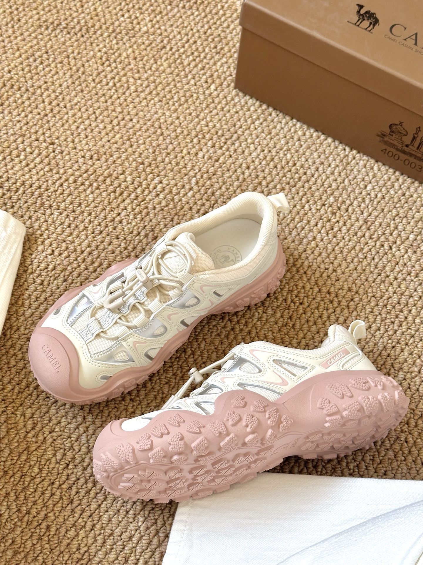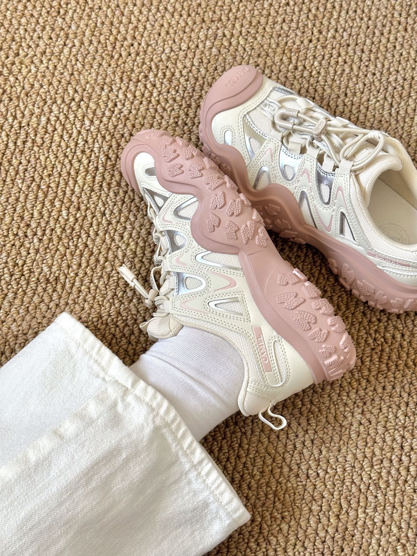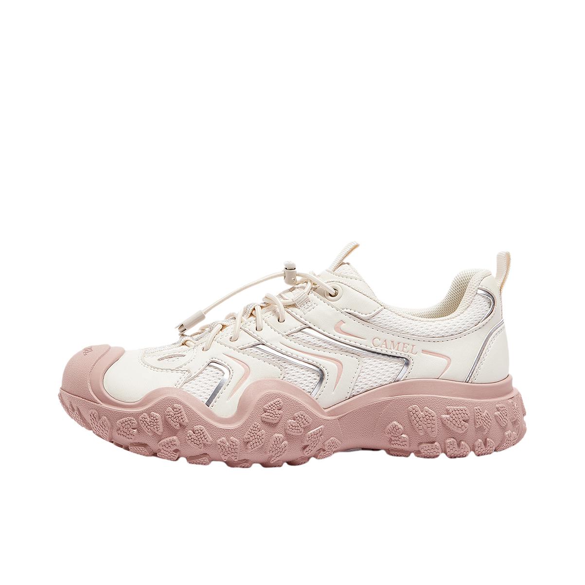 是骆驼的丑萌徒步鞋诶 白粉配色好有少女感 我觉得上脚还蛮好康 有春天的味道啦 不用系鞋带的设计 平常穿脱也方便 日常休闲通勤还是逛街穿都合适