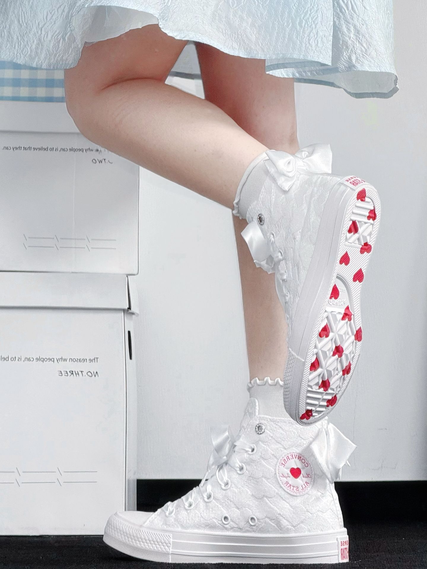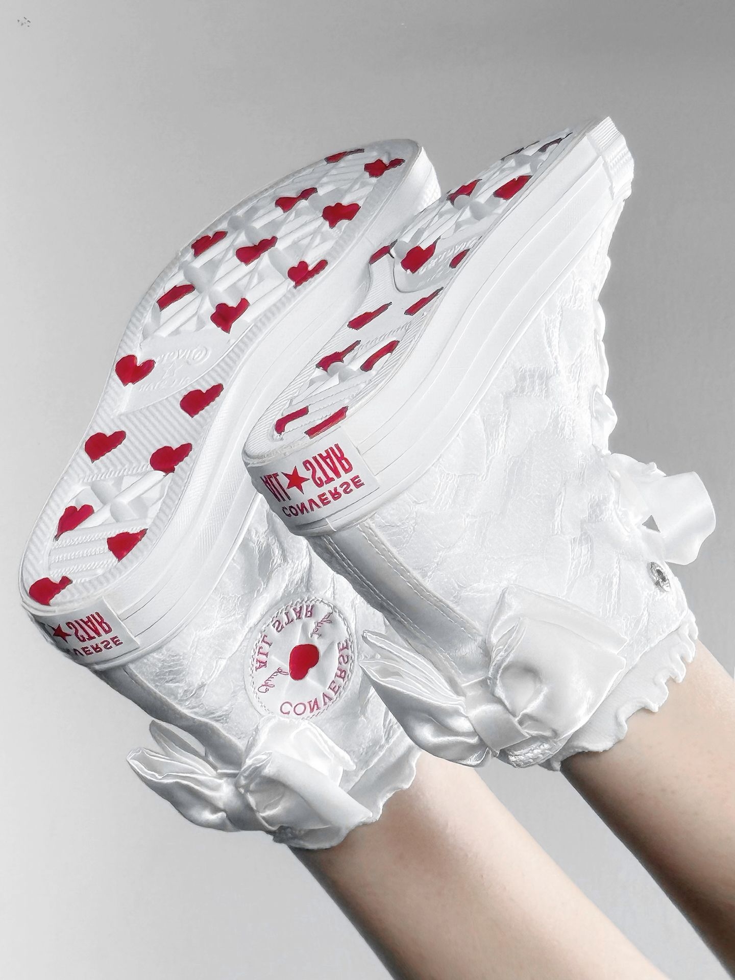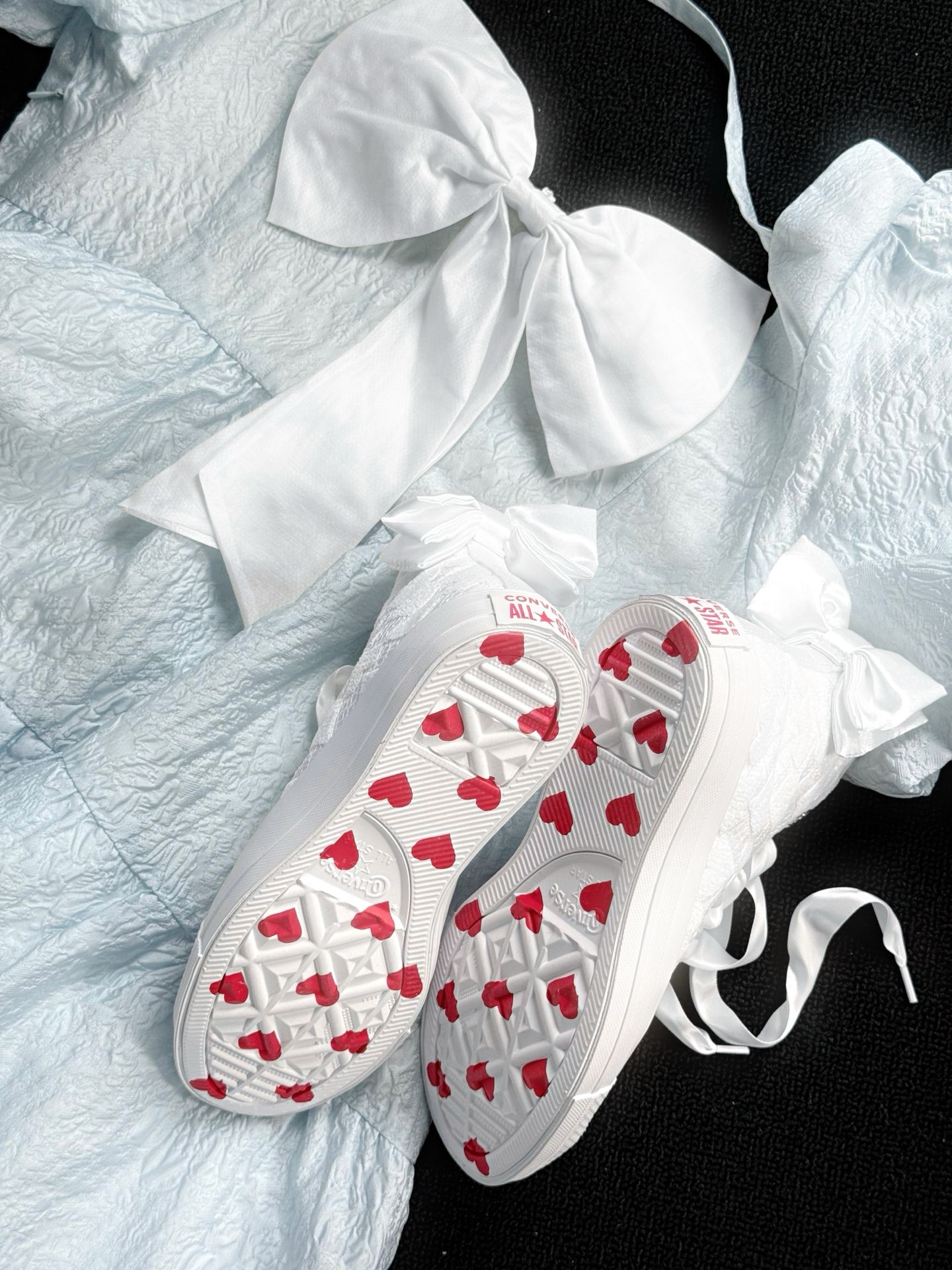 救命!这双鞋才是约会战袍吧💖 白色提花+缎面蝴蝶结,温柔到骨子里! 鞋底全是小红心,连走路都在偷偷比心~ 春天穿它去约会,甜度直接超标,姐妹们闭眼冲!
