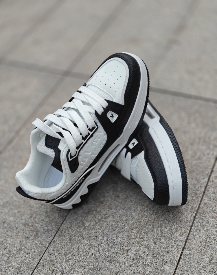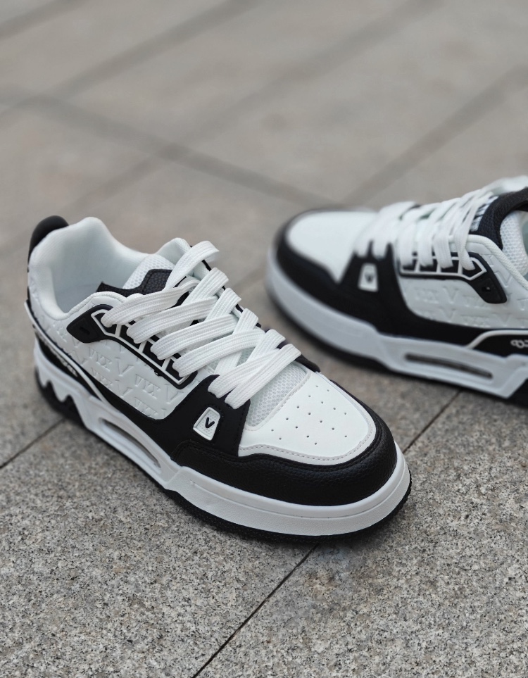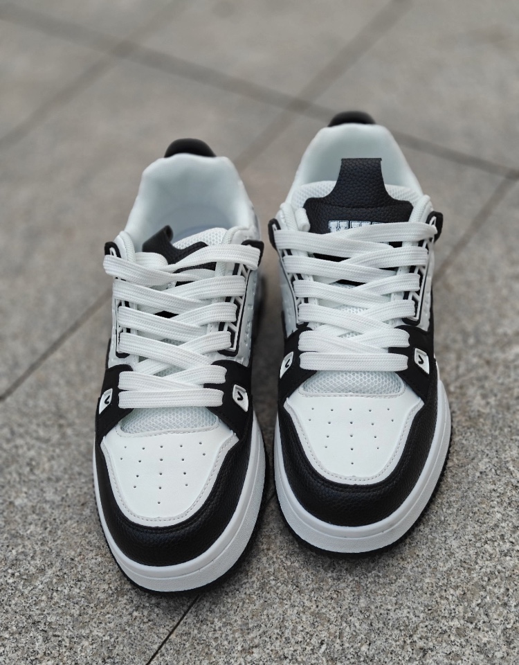 姐姐给你们分享这双黑白色经典的休闲板鞋。 这个材质看上去挺软的 而且上脚的话比较轻盈,黑白配色搭配衣服和图片。 先先整个细节就挺好的。 鞋舌也做了,还没填充包裹性速度这一块。 还可以,主要是性价比高的