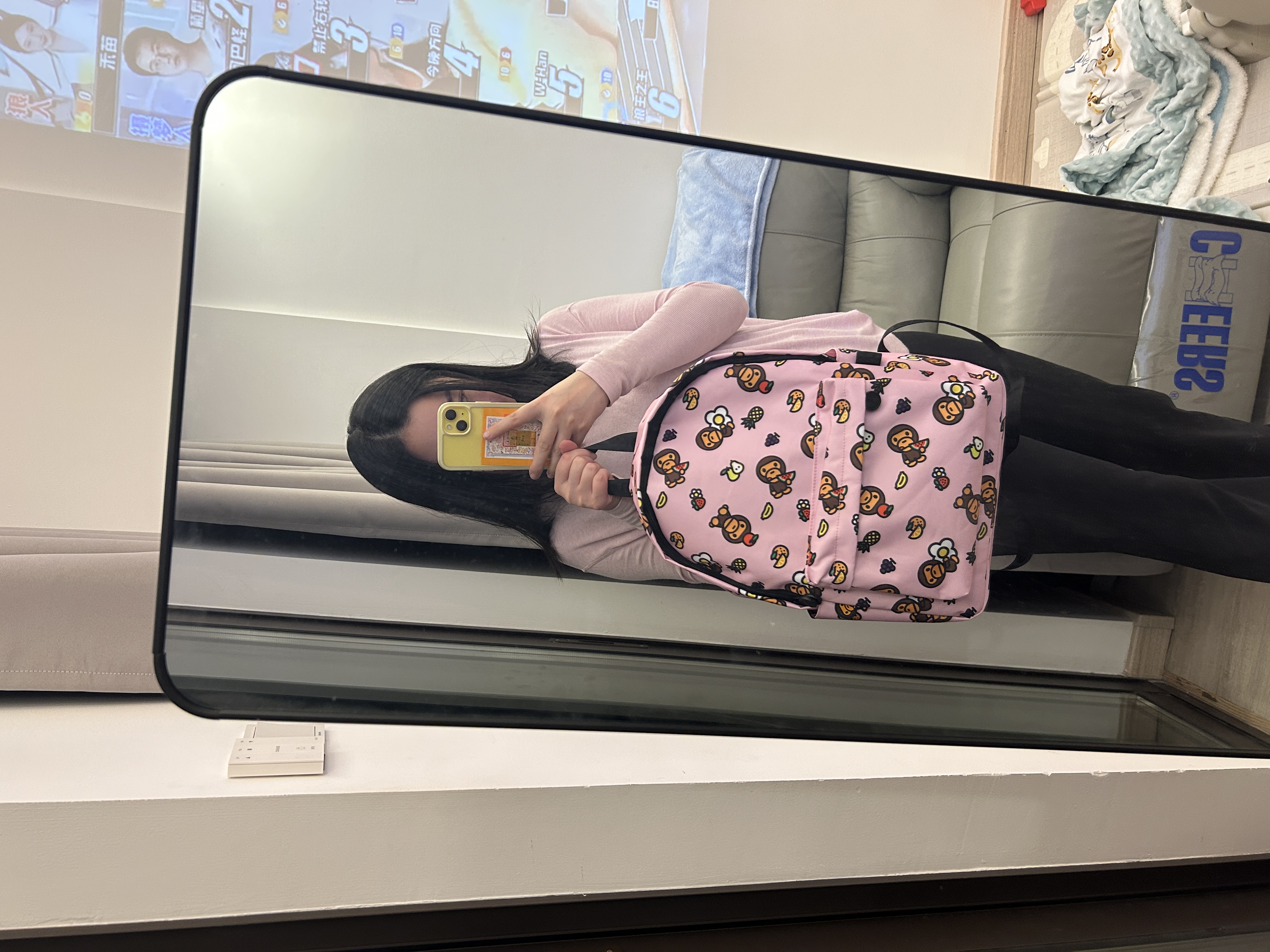 ✨ 颜值&材质亮点 • 粉水果印花:温柔马卡龙粉底色+可爱Baby Milo猴子+菠萝/葡萄/西瓜等水果图案,甜妹氛围感直接拉满🍍 • 硬挺材质:包身立体有型,不软塌、不变形,手提/双肩背都能保持利落轮廓,质感在线又耐造! 📏 上身实测(身高162cm / 体重53kg) • 双肩背:包高36cm,刚好落在腰线位置,比例和谐不笨重,日常通勤/上学背完全不压身高,舒适又显活力 • 手提:小巧精致...
