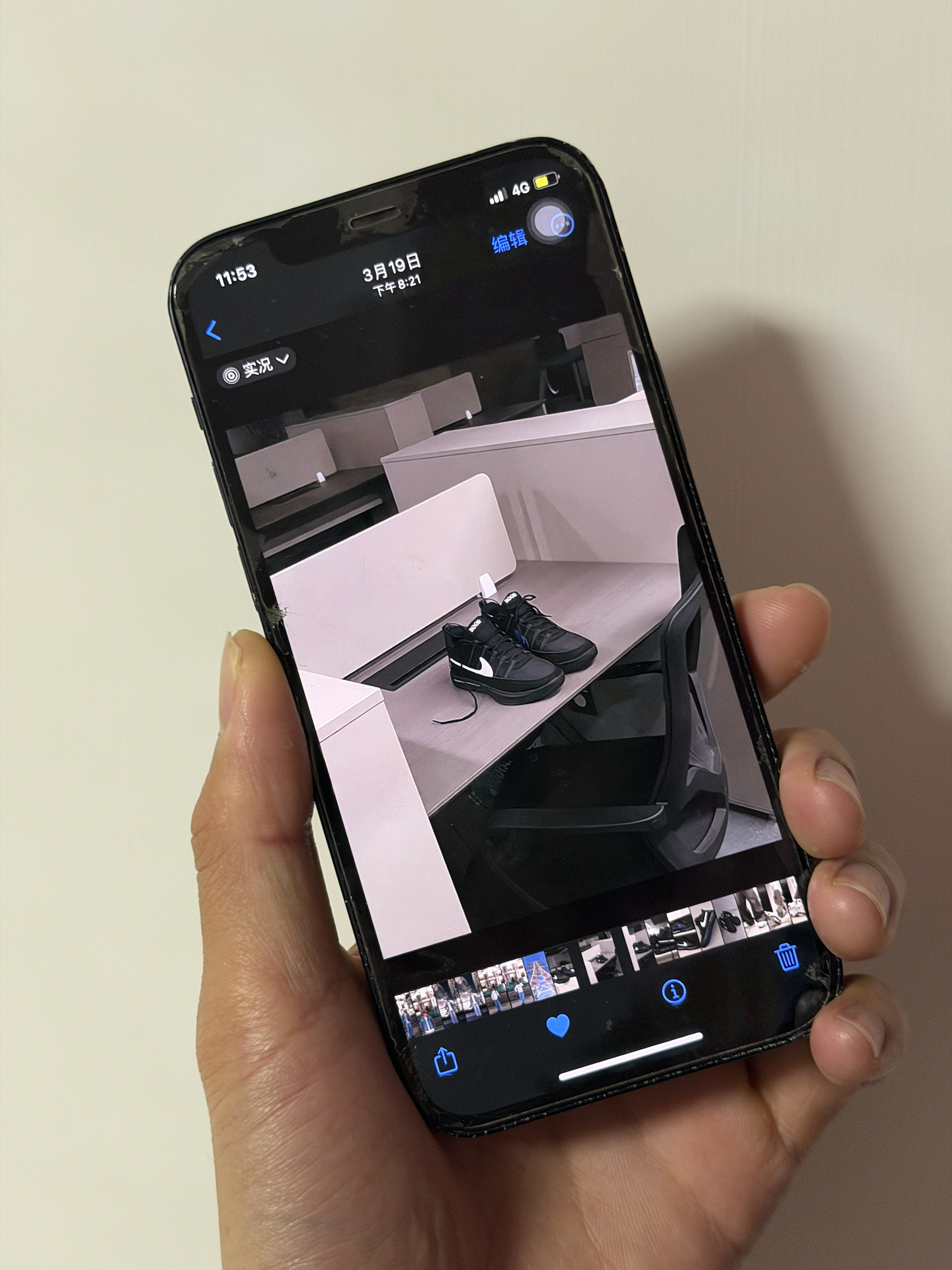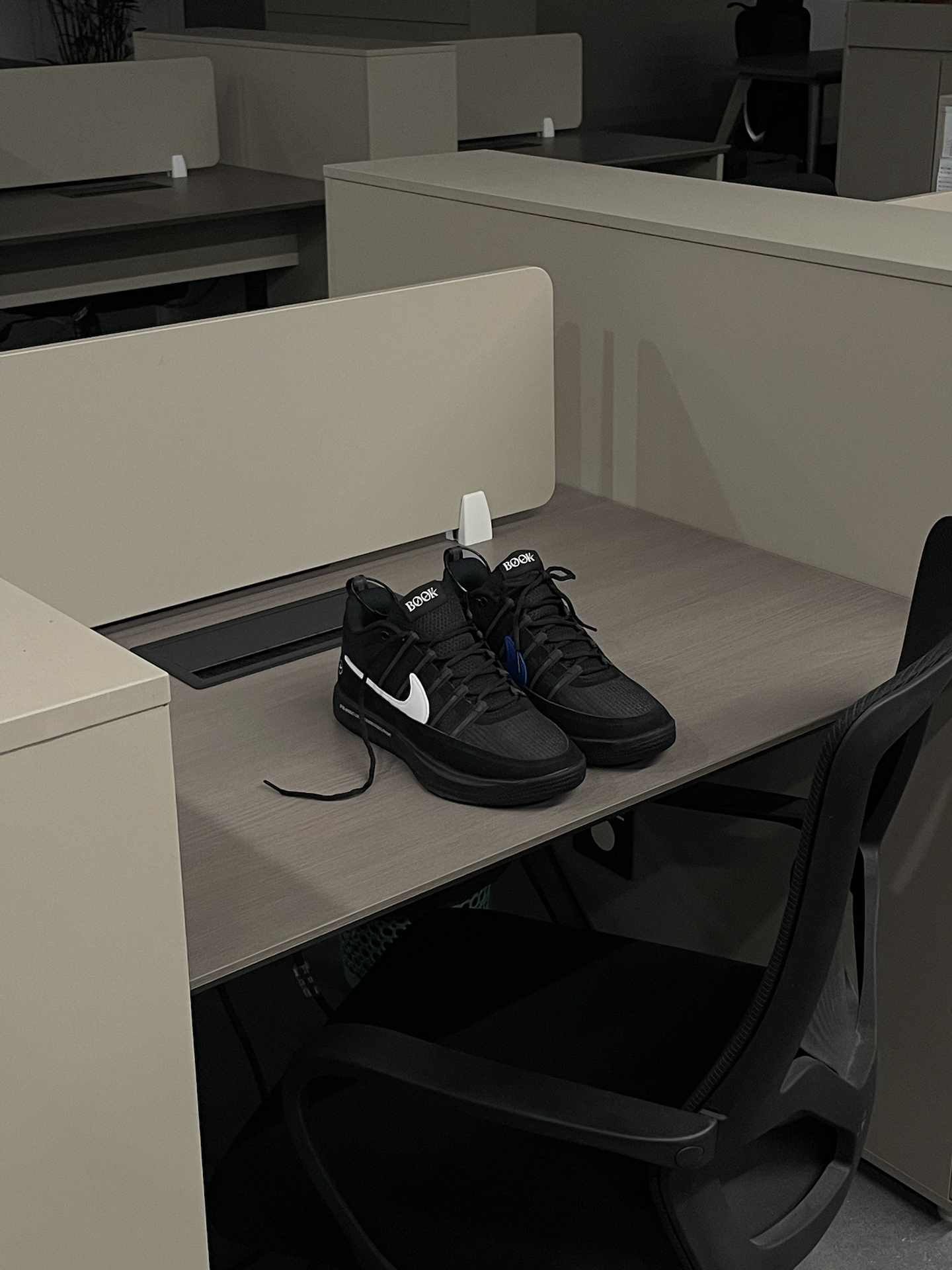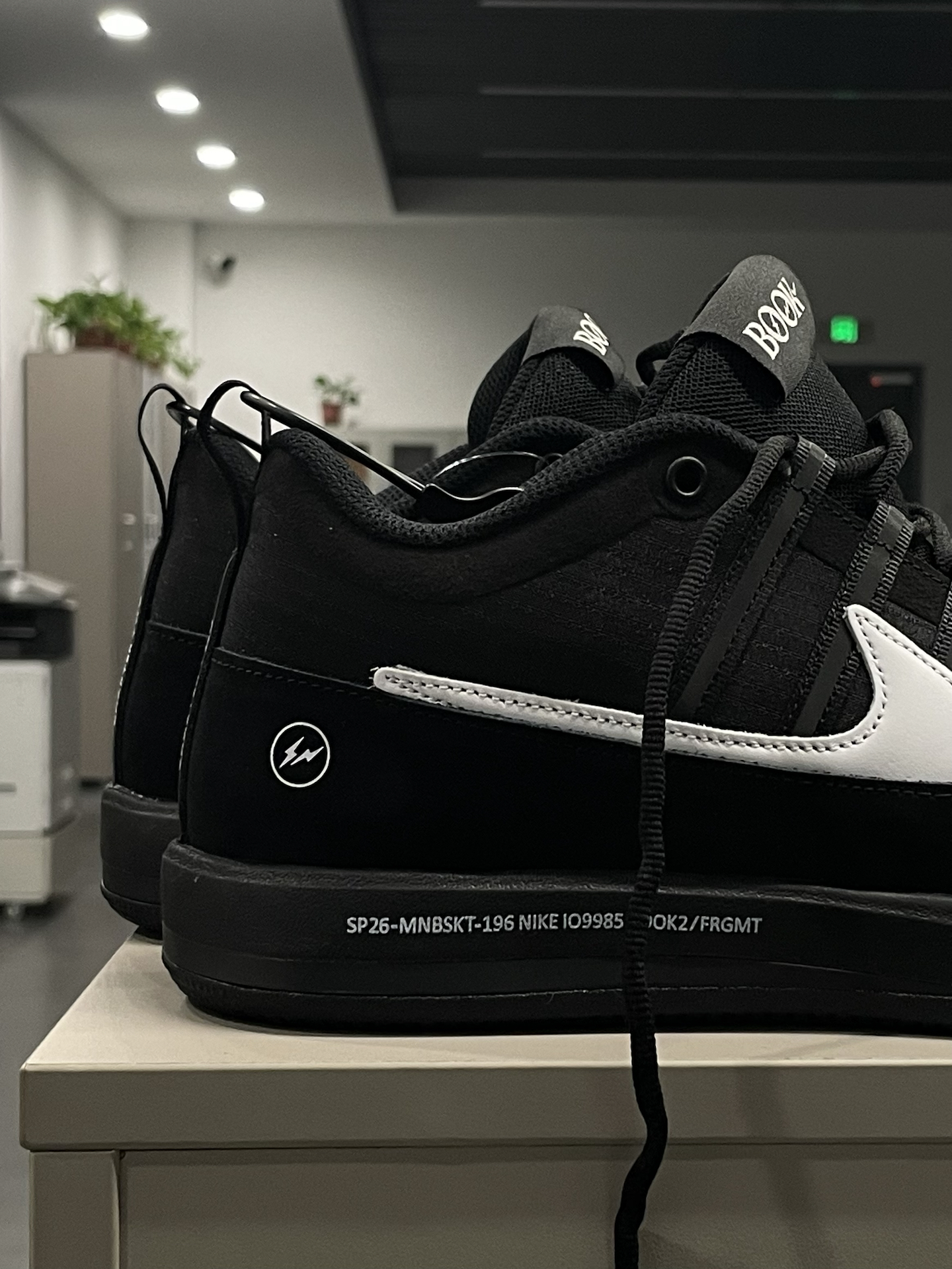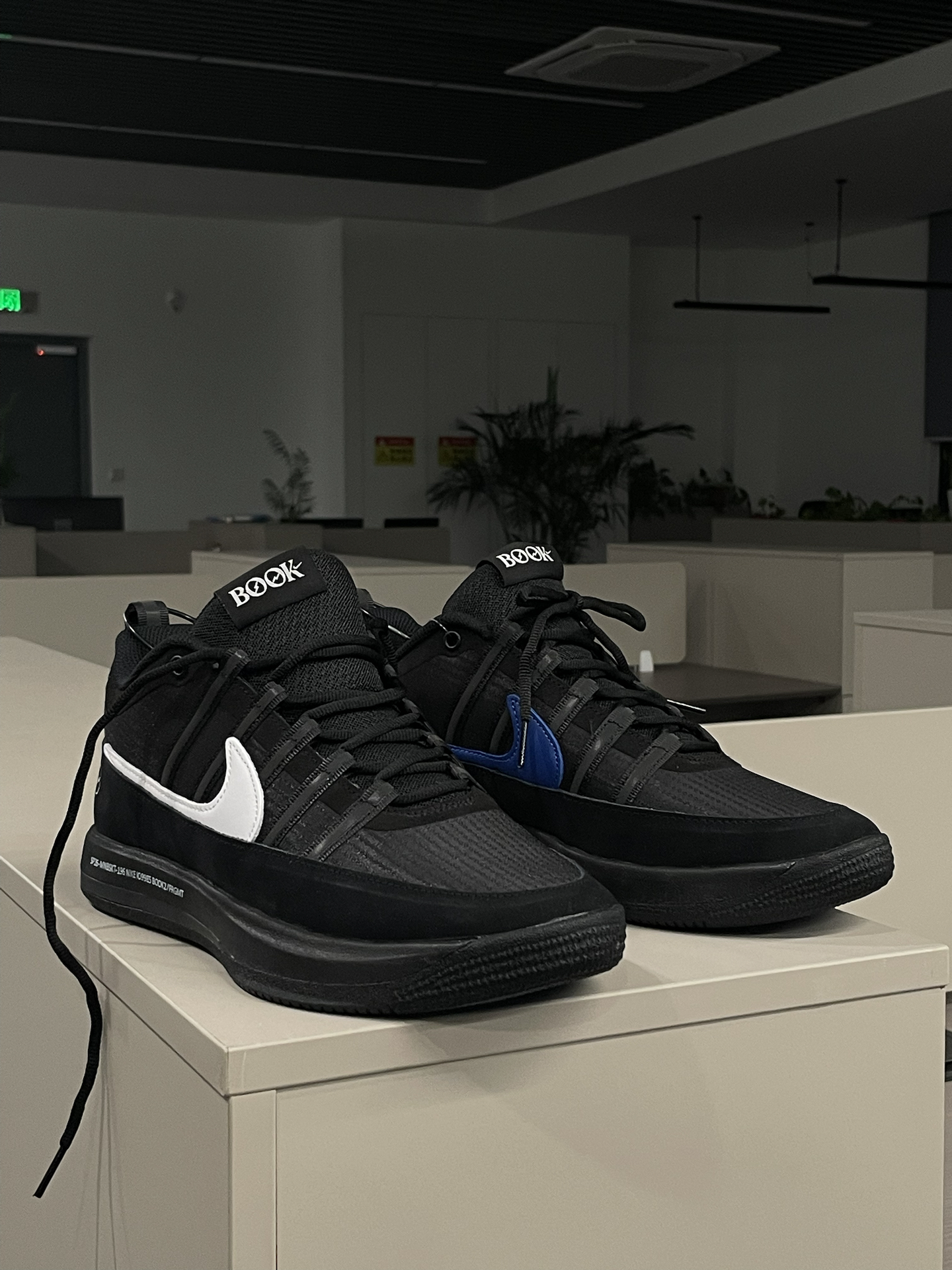 今天来到朋友的办公室拍摄了一组book2 极简的鞋身设计和简约风办公室还蛮搭配的 整体我将曝光调暗凸显黑色系 让白色钩子更突出! 我还蛮喜欢这双联名的,特别是内侧的蓝色钩子蛮帅! 📷:iphone12