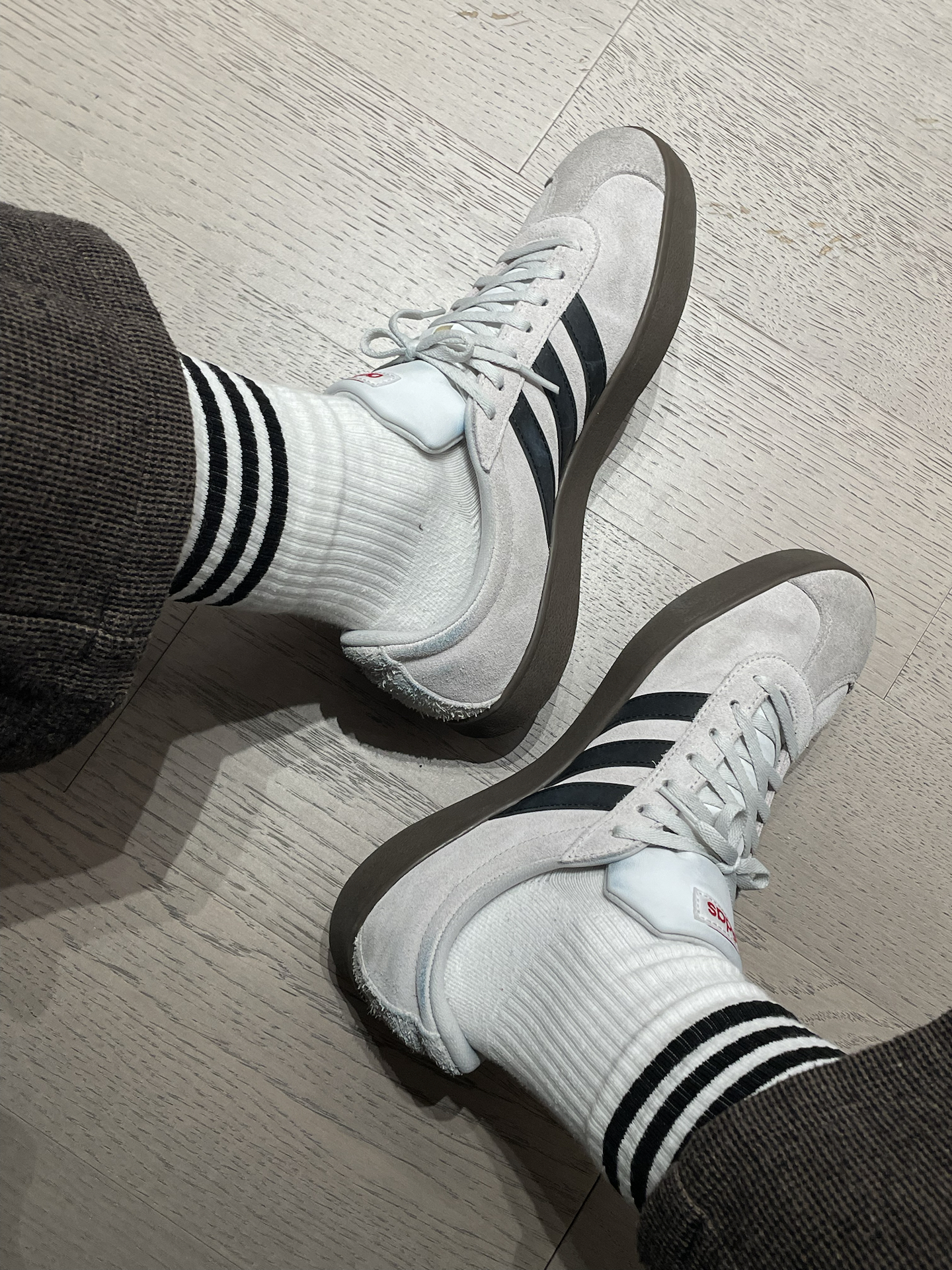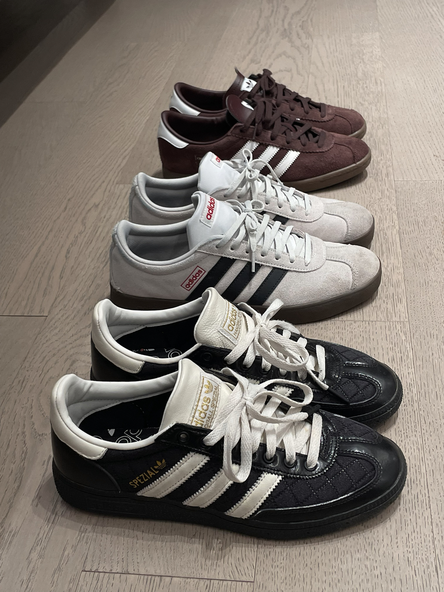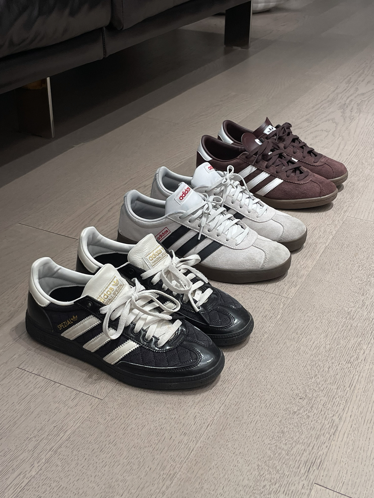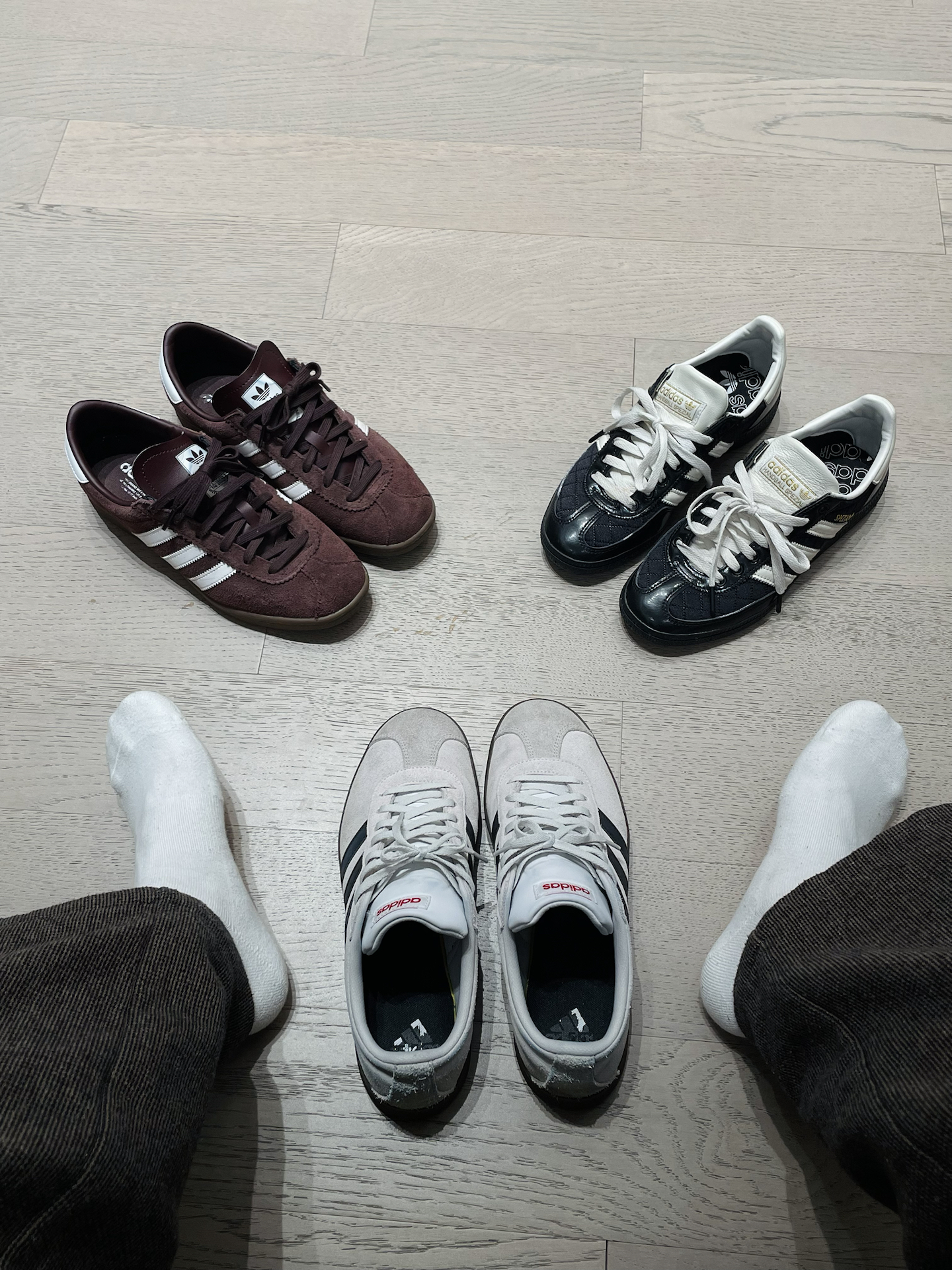 这种T头samba真的是太好看 最近一下子购入三双 黑白棕都很百搭~ 白色款式干净活力 黑色气质优雅 棕色复古运动 上学上班or出街都可以穿!