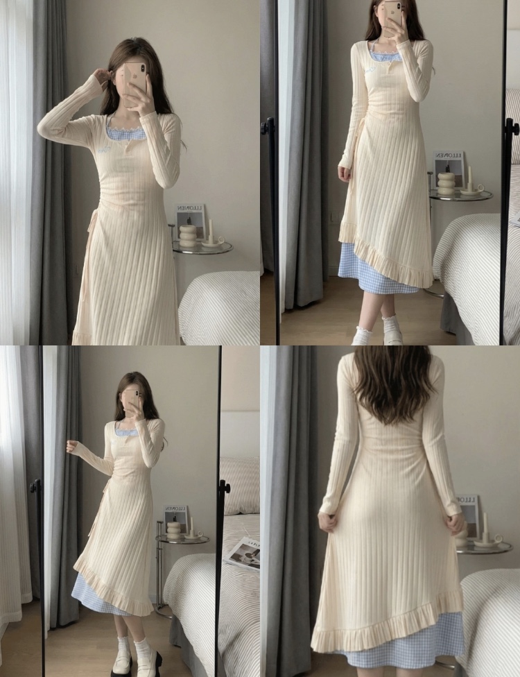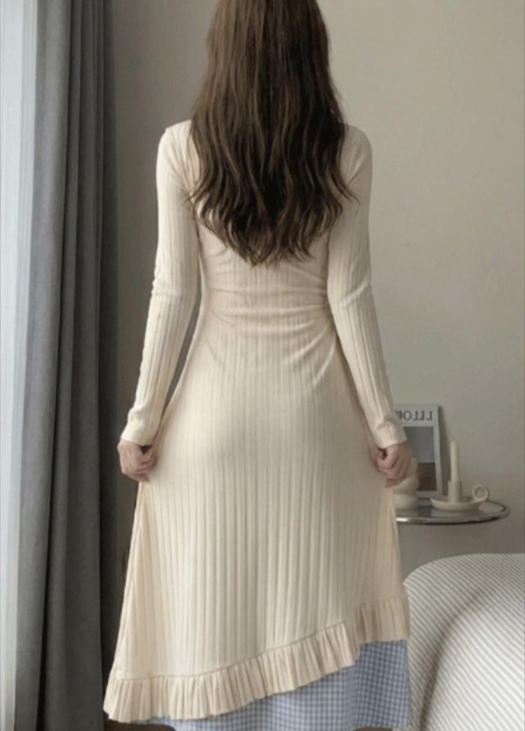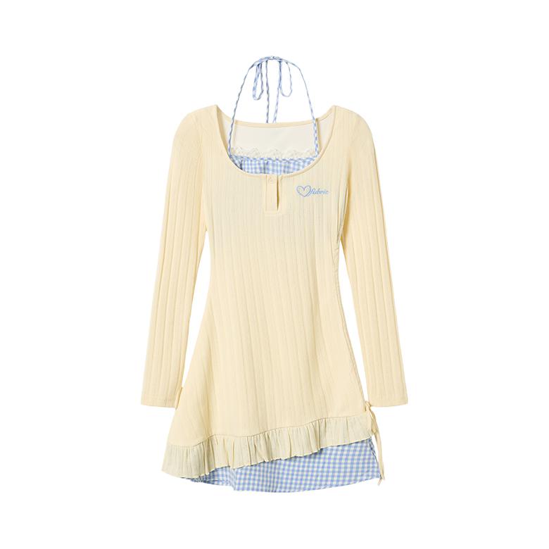 蓝格纹拼接 + 荷叶边开叉,走路带风还藏肉!面料软 fufu很舒服~ 日常出街、约会都适配!温柔甜妹感,显白又气质,谁能拒绝😭