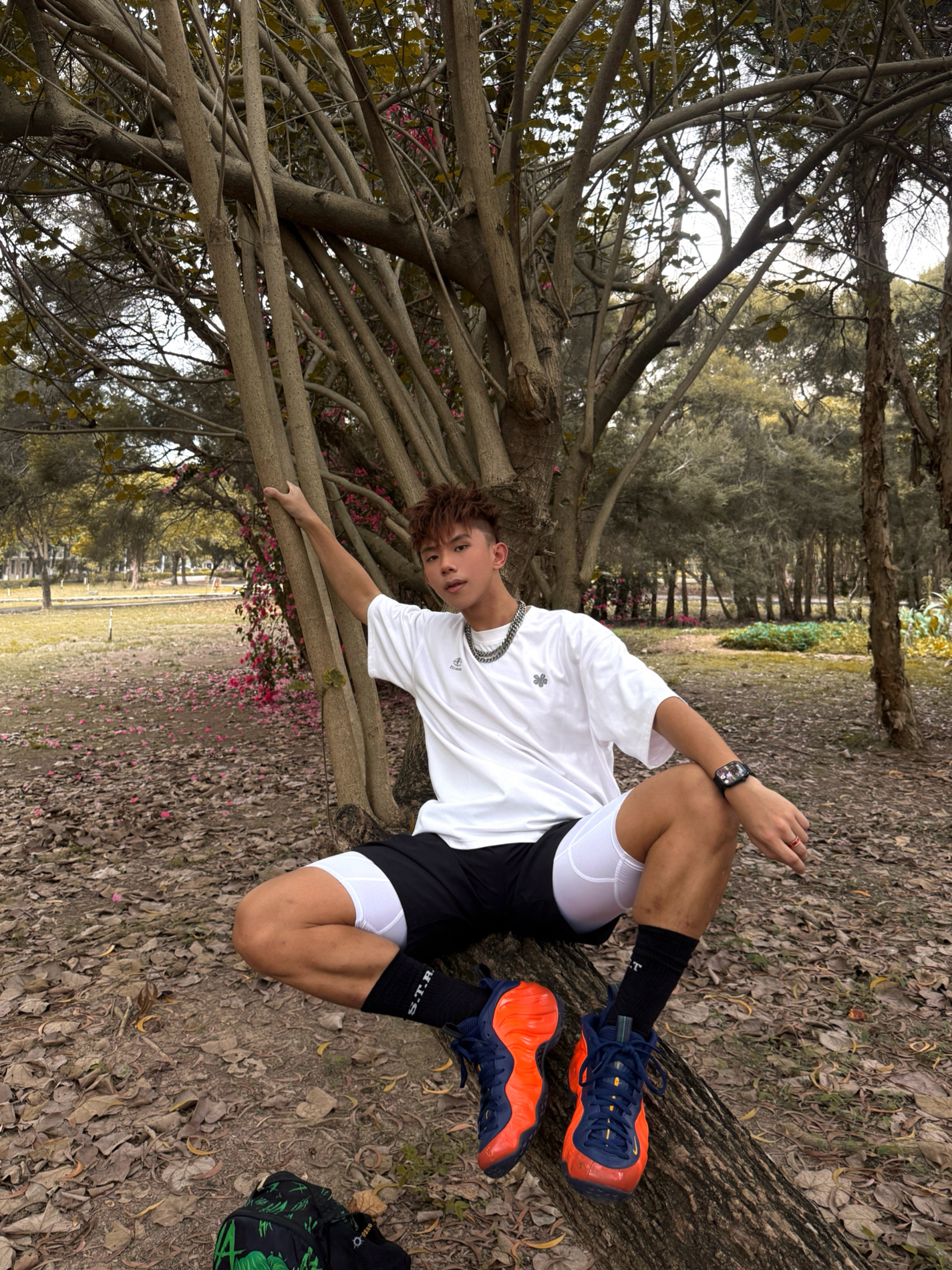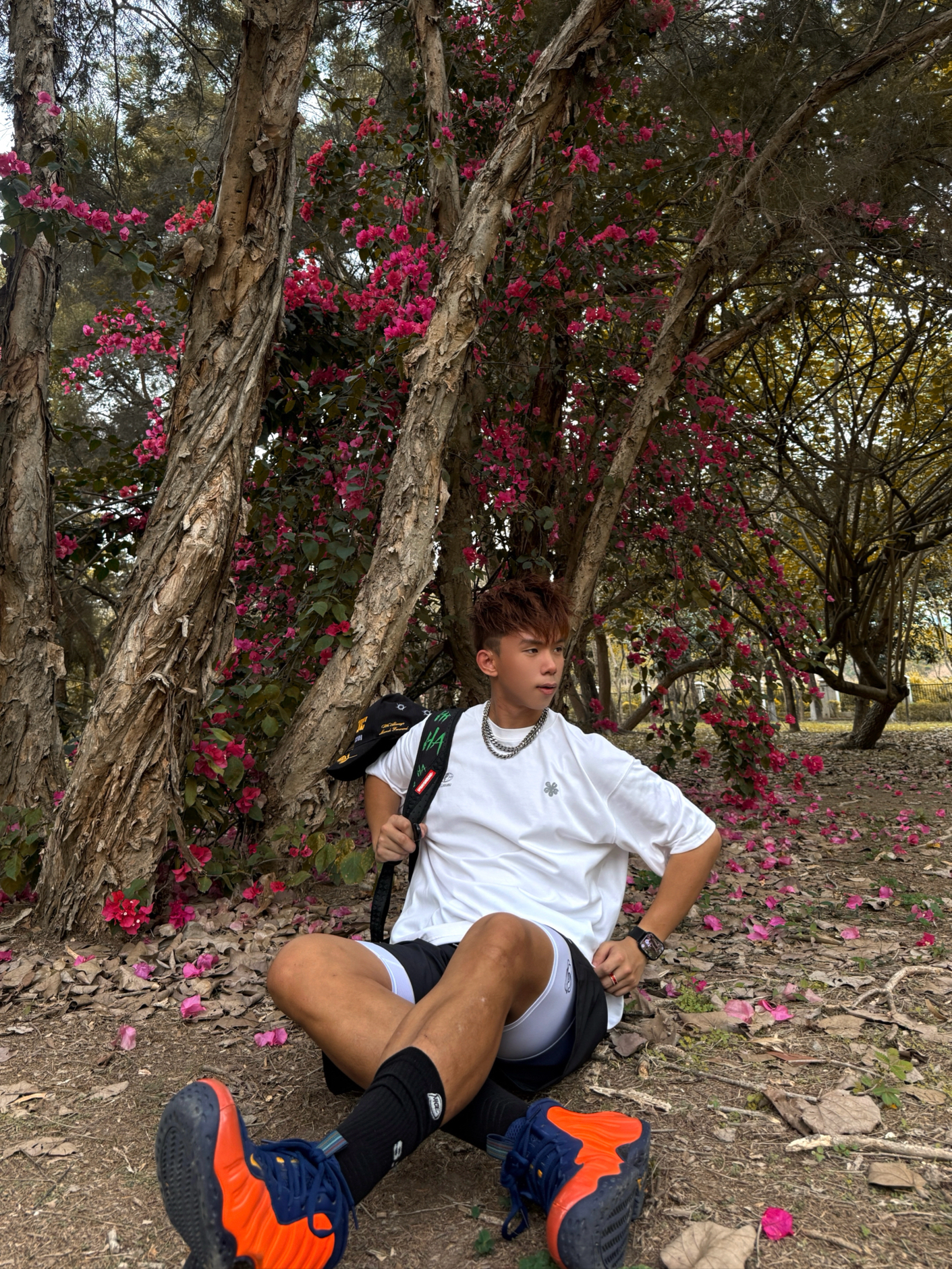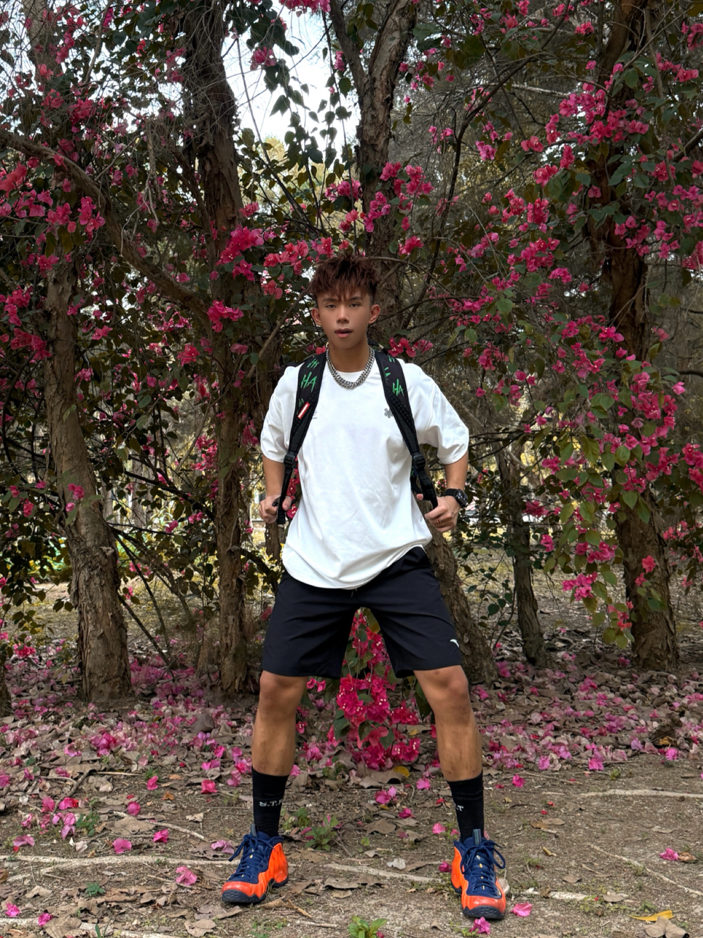 三角梅开得正盛的春日公园 上身简约春日OOTD 不用刻意凹造型 随便站在花下都能出片🌸 穿搭上走极简反差风😎 👕上半身白色基础t干净利落 🩳下半身搭安踏速干黑色短裤 轻薄透气 春天逛公园偶尔运动都舒服 出汗不会粘腿上💦 微宽松直筒版型 不挑腿型 而且修饰腿线 侧边安踏小logo低调有质感 就喜欢这种清爽又有力量感的短裤 👟再上脚亮橙喷 春日里的吸睛狠货 和短裤的沉稳黑形成色彩呼应 春天就该...