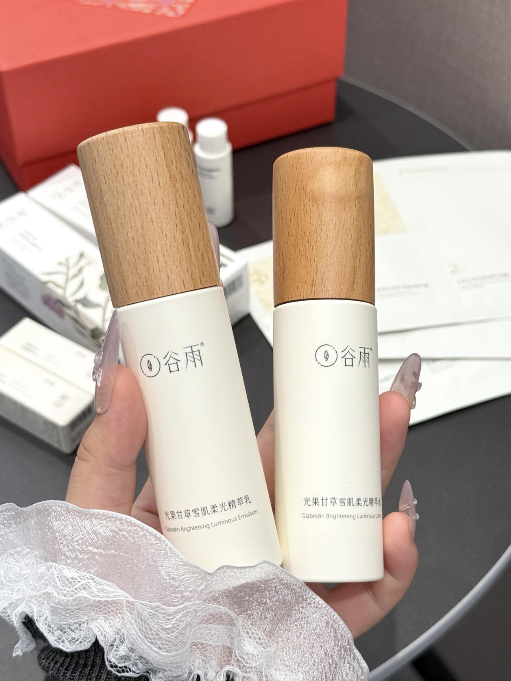 本篇笔记关联了【小样】谷雨 雪肌柔光滢嫩精萃水 提亮、谷雨 雪肌柔光精萃乳液 减黄提亮 保湿、谷雨 光果甘草雪肌柔光精萃护肤套装【水+乳】 保湿补水改善暗沉减黄提亮 水120ml+乳100ml等商品,为用户提供真实的使用体验和购买参考。
