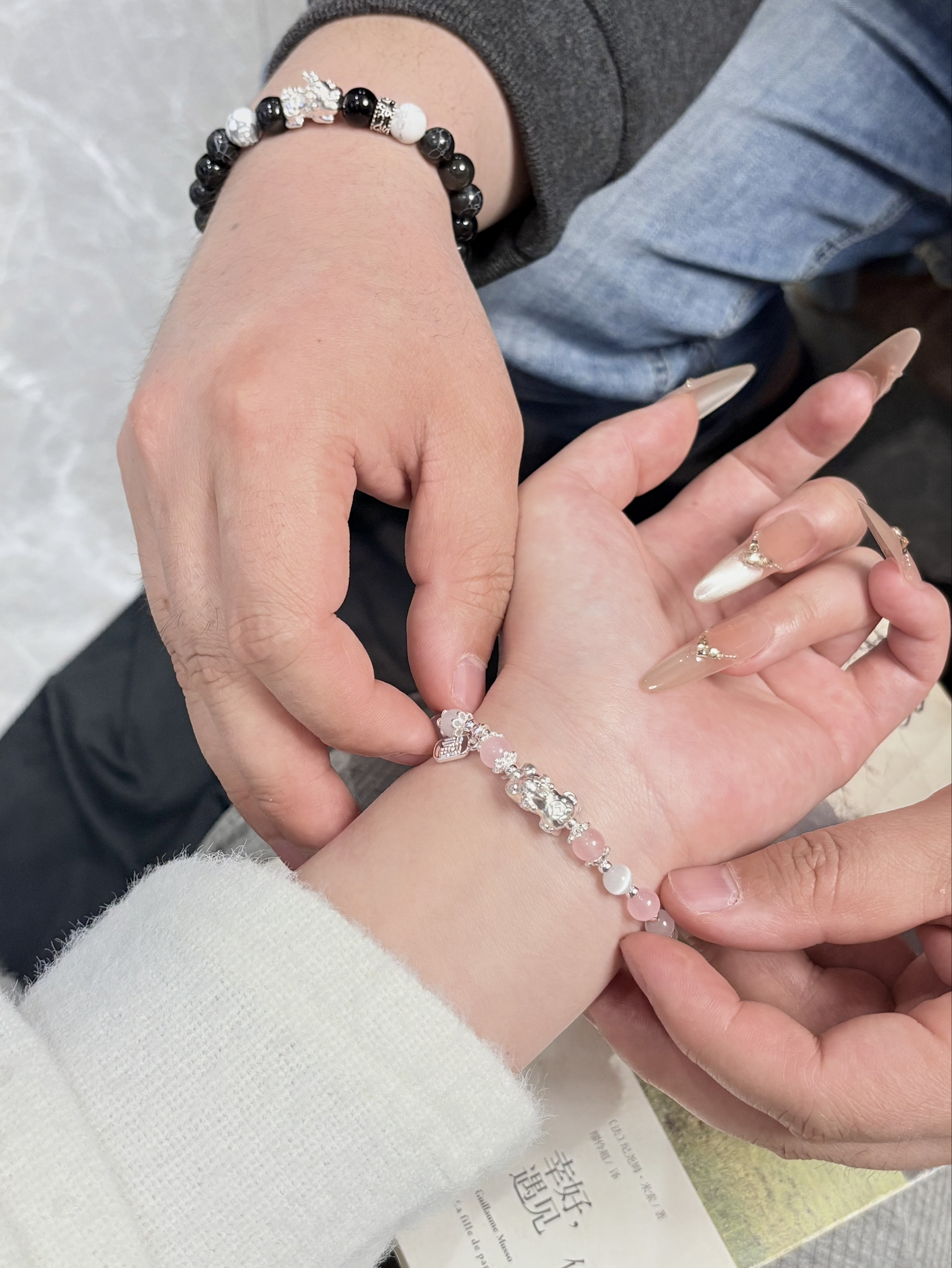 又又又来秀恩爱啦💕 是我俩日常出门都在戴的情侣手链哦 这四对手链的风格都是新中式的感觉 戴在手腕上也不勒哦 作为礼物我觉得浪漫又实用耶 平时还可以用来搭配衣服蛮有腔调哒~