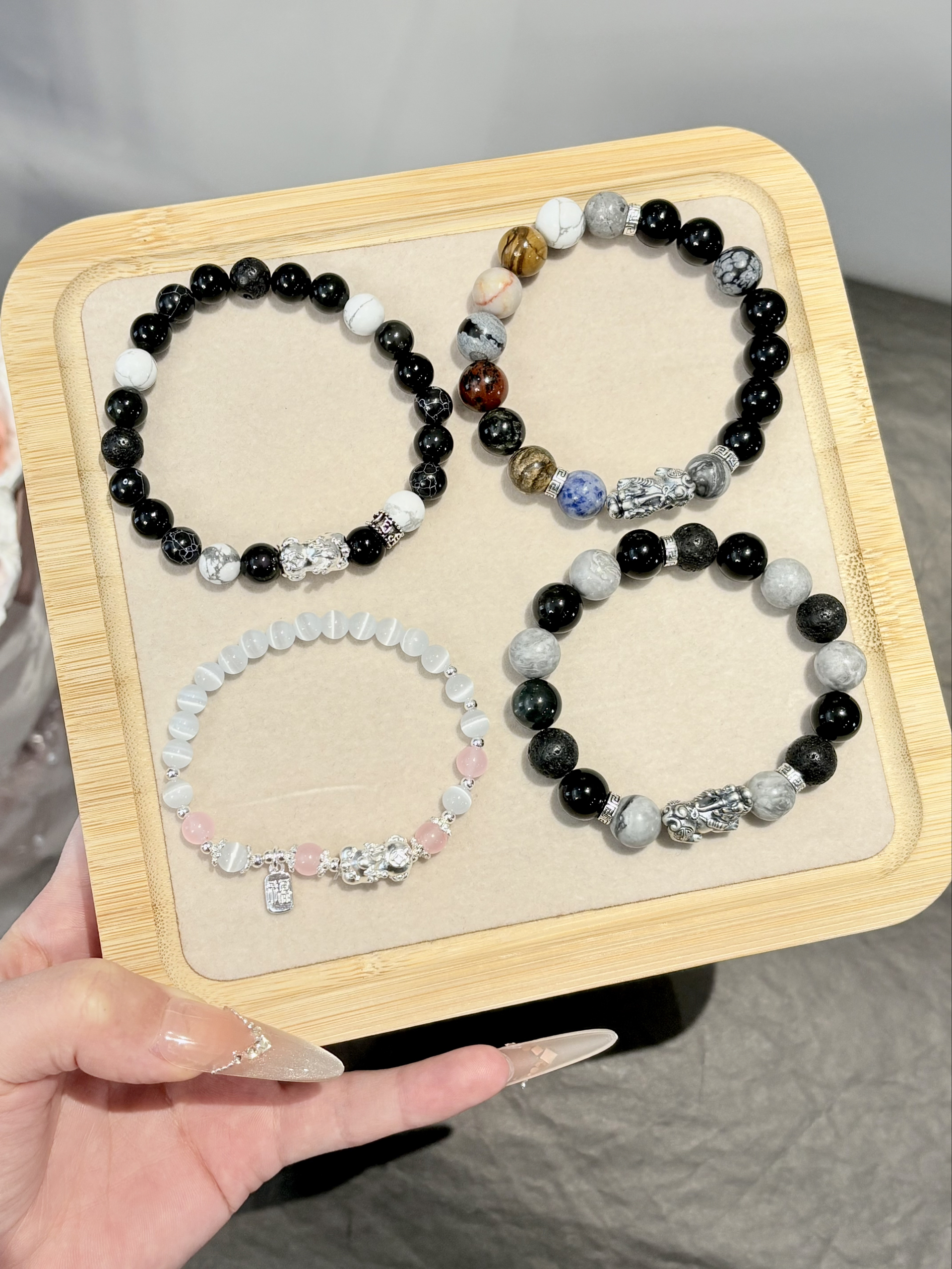 本篇笔记关联了YINCHIE/银千惠 新中式生肖貔貅平安纳福盘玩手串 SL5191 黑色、珍尚银 吞金兽貔貅足银玉石串珠情侣手链 PDSL120 黑色款、STYLEJING/静风格 醒狮黑曜石手串 C2502015 黑曜石+狮来运转手串-情侣款等商品,为用户提供真实的使用体验和购买参考。