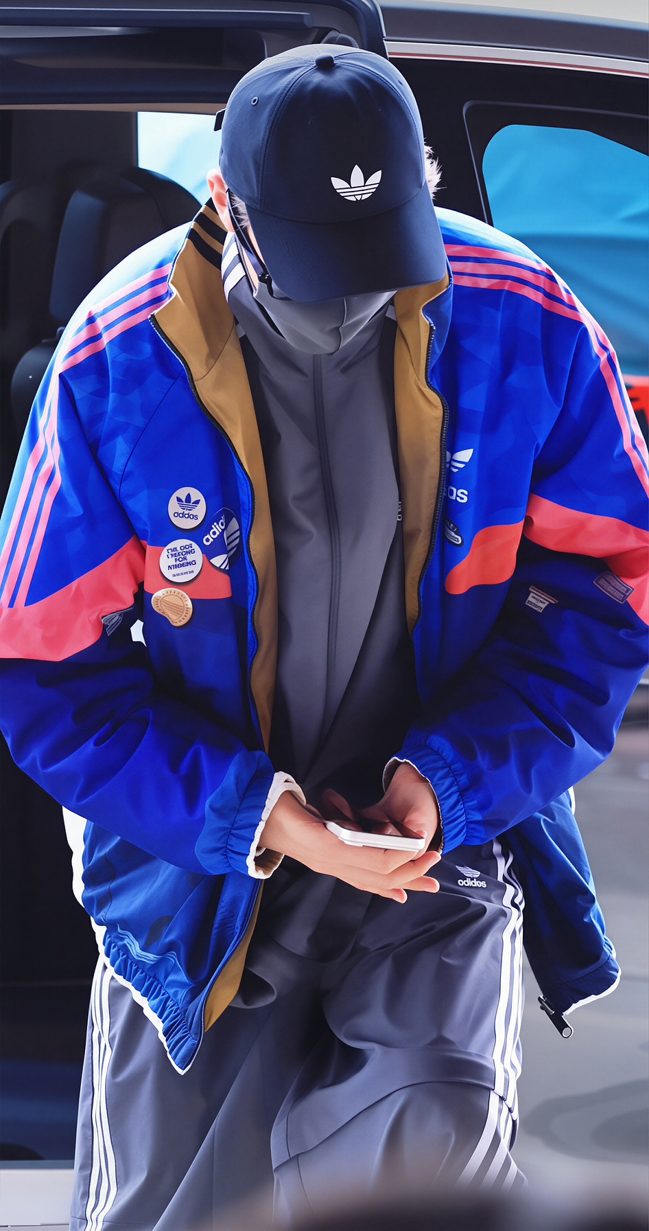 王鹤棣这套Adidas运动风太会搭啦!蓝红撞色复古外套吸睛又有活力,深灰内搭+条纹裤利落显腿长,棒球帽+机能风鞋子,整套休闲又潮,机场出街都超适配,妥妥少年感拉满!