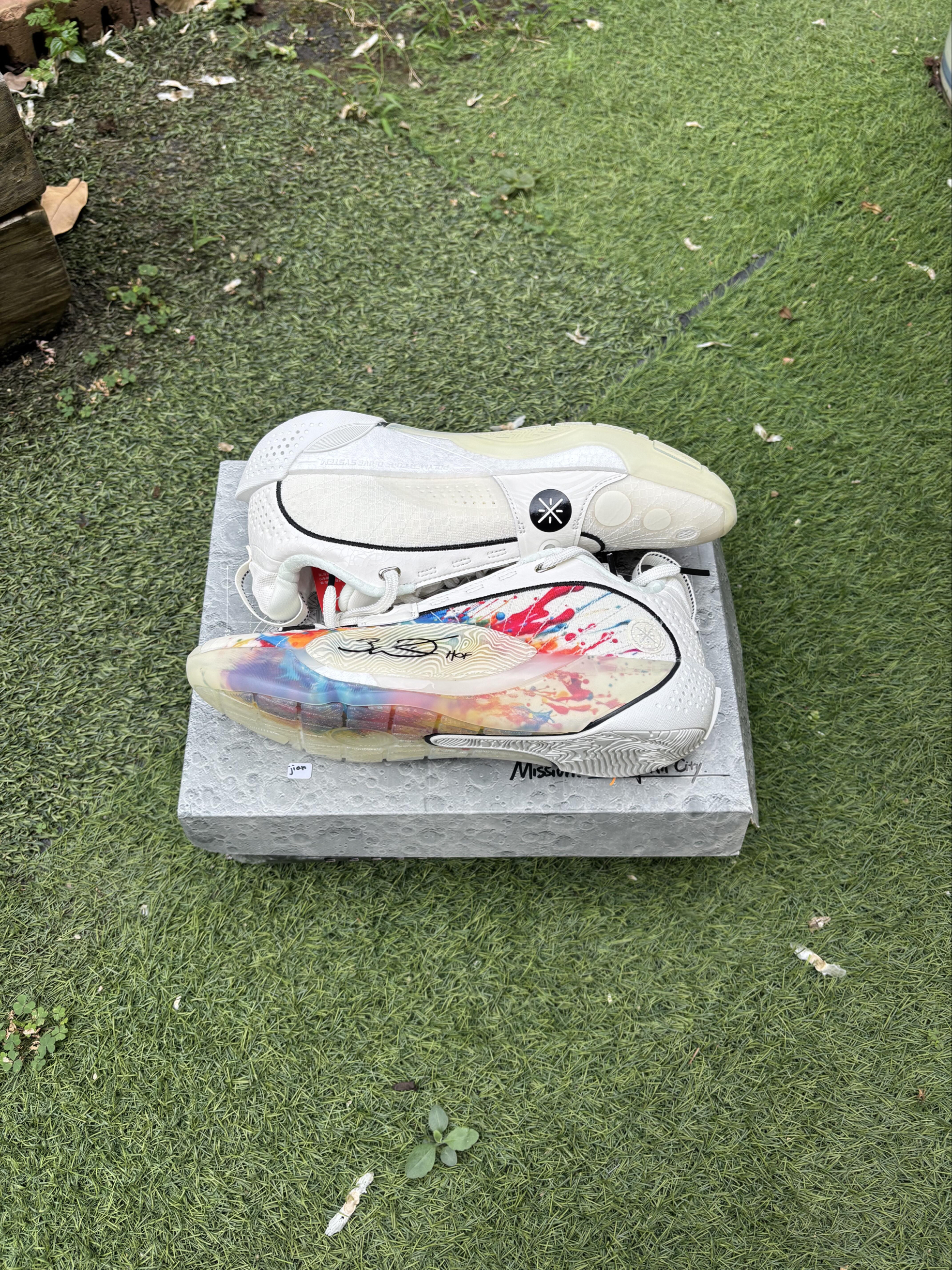奶白鞋身泼满彩虹色泼墨,像把春日烟火穿在脚上,上课走在校园里回头率爆表,打球时更是全场焦点📸。鞋面用了透气网布+热熔加固,夏天打3v3也不闷脚,包裹感拉满,急停变向时脚在鞋里稳得一批。 中底䨻科技+全掌碳板,起跳落地时缓震感像踩在云朵上,回弹力直接拉满,抢篮板、突破上篮都更有劲儿💪。外底纹路抓地力超强,塑胶地、水泥地都不打滑,再也不怕急停打滑社死。 鞋盒还是月球表面质感,细节控狂喜!不管是日常...