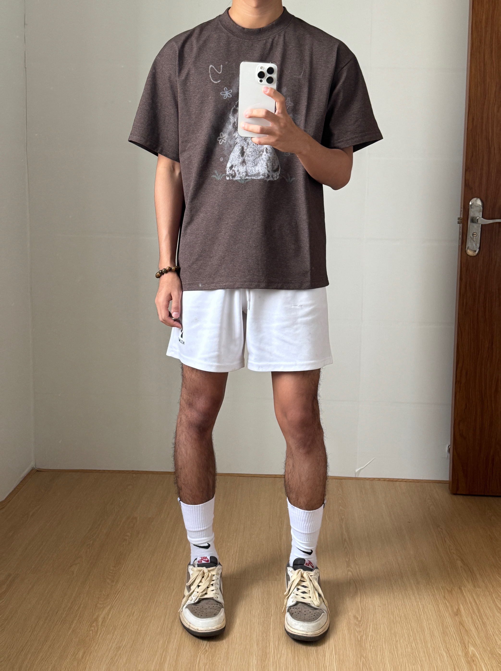 深棕印花T+白短裤,是不用费力的舒服感🍂踩上旧球鞋,把日子过成慢悠悠的散步模式不刻意,也自在,简单的配色,藏着不简单的松弛感深棕与白的碰撞,干净又耐看是出门不用想太多的舒服穿搭,白短裤中和了复古感,少年感直接焊在身上 旧鞋配白袜,是属于日常的随性腔调!