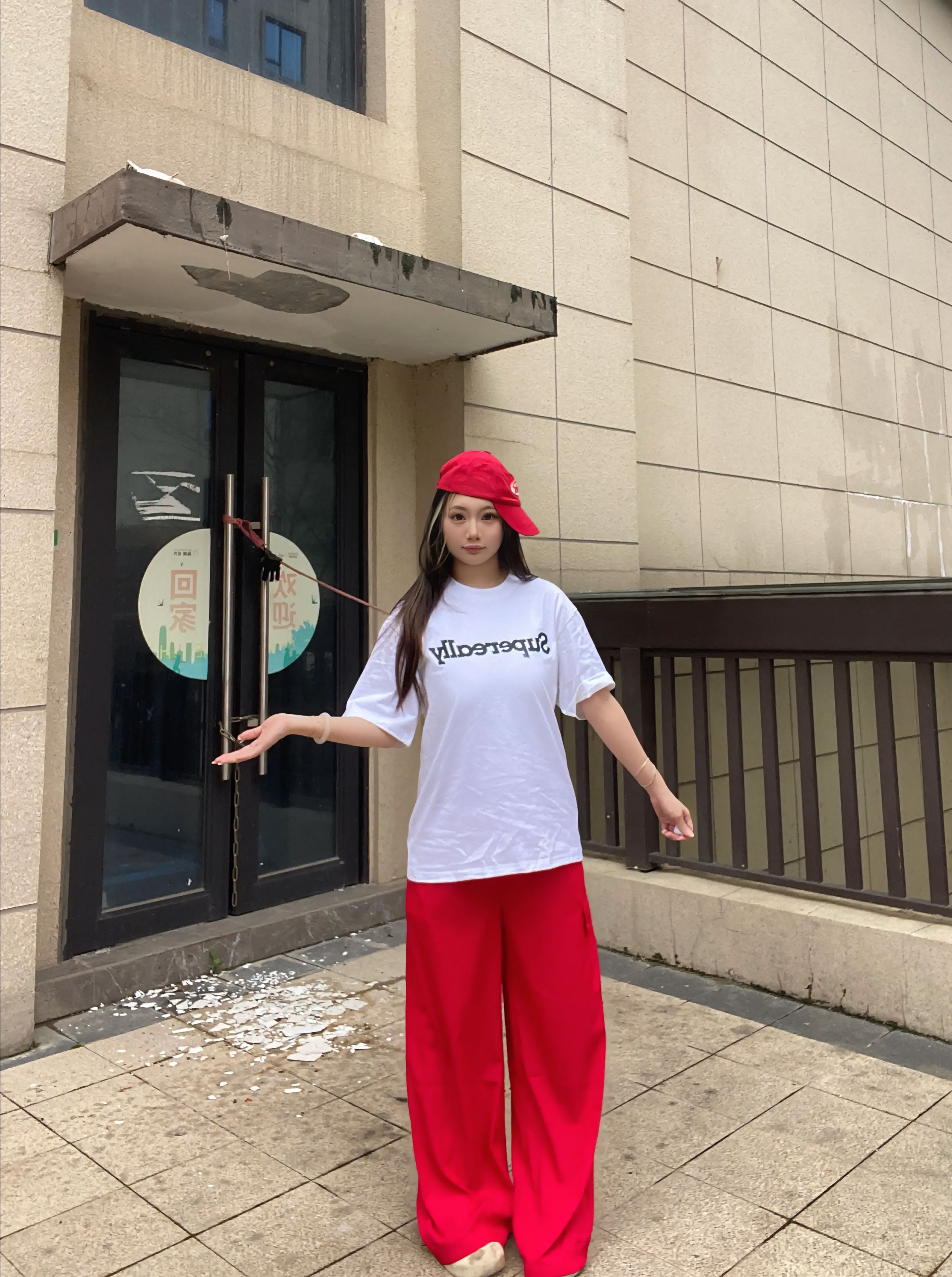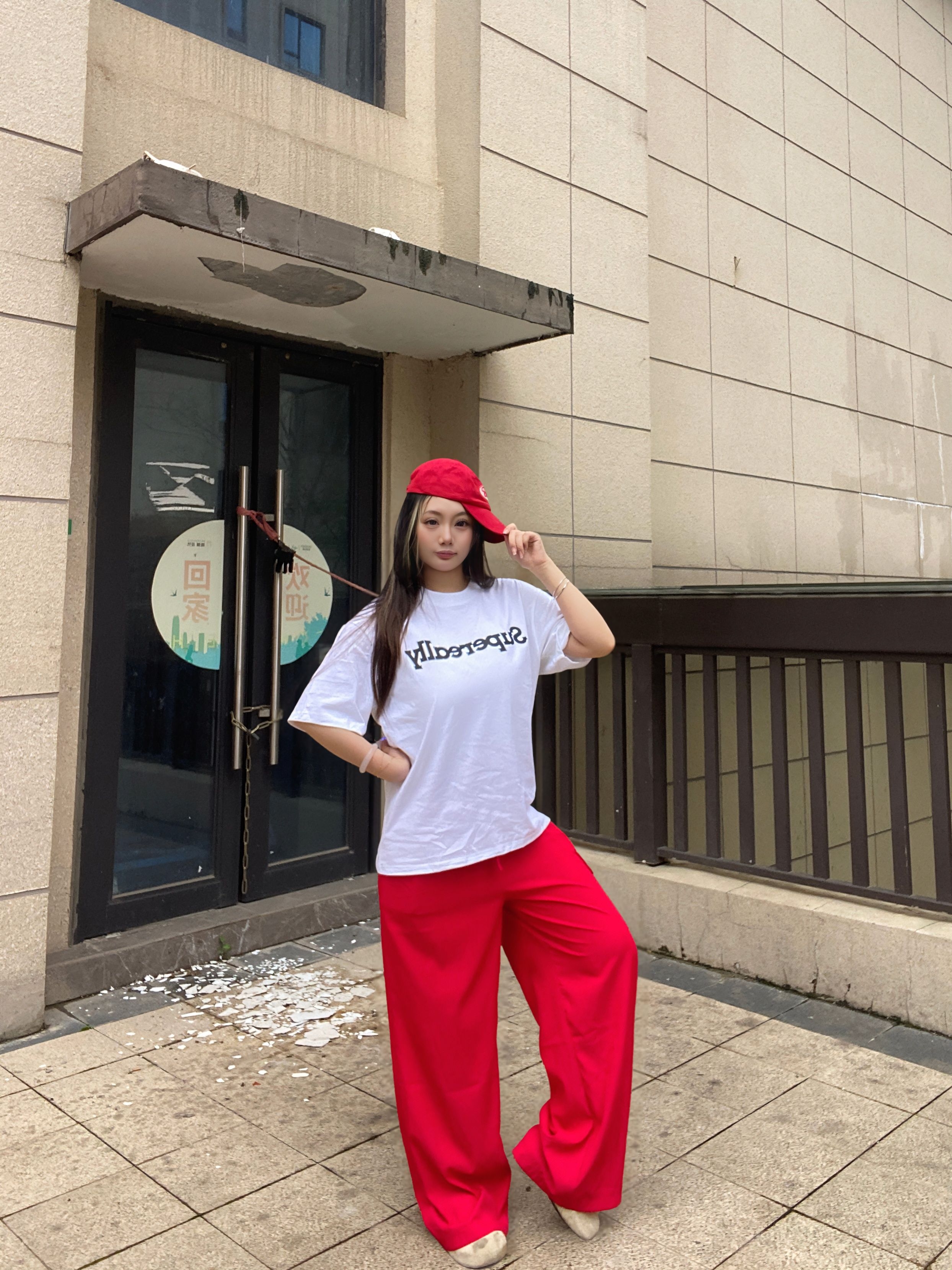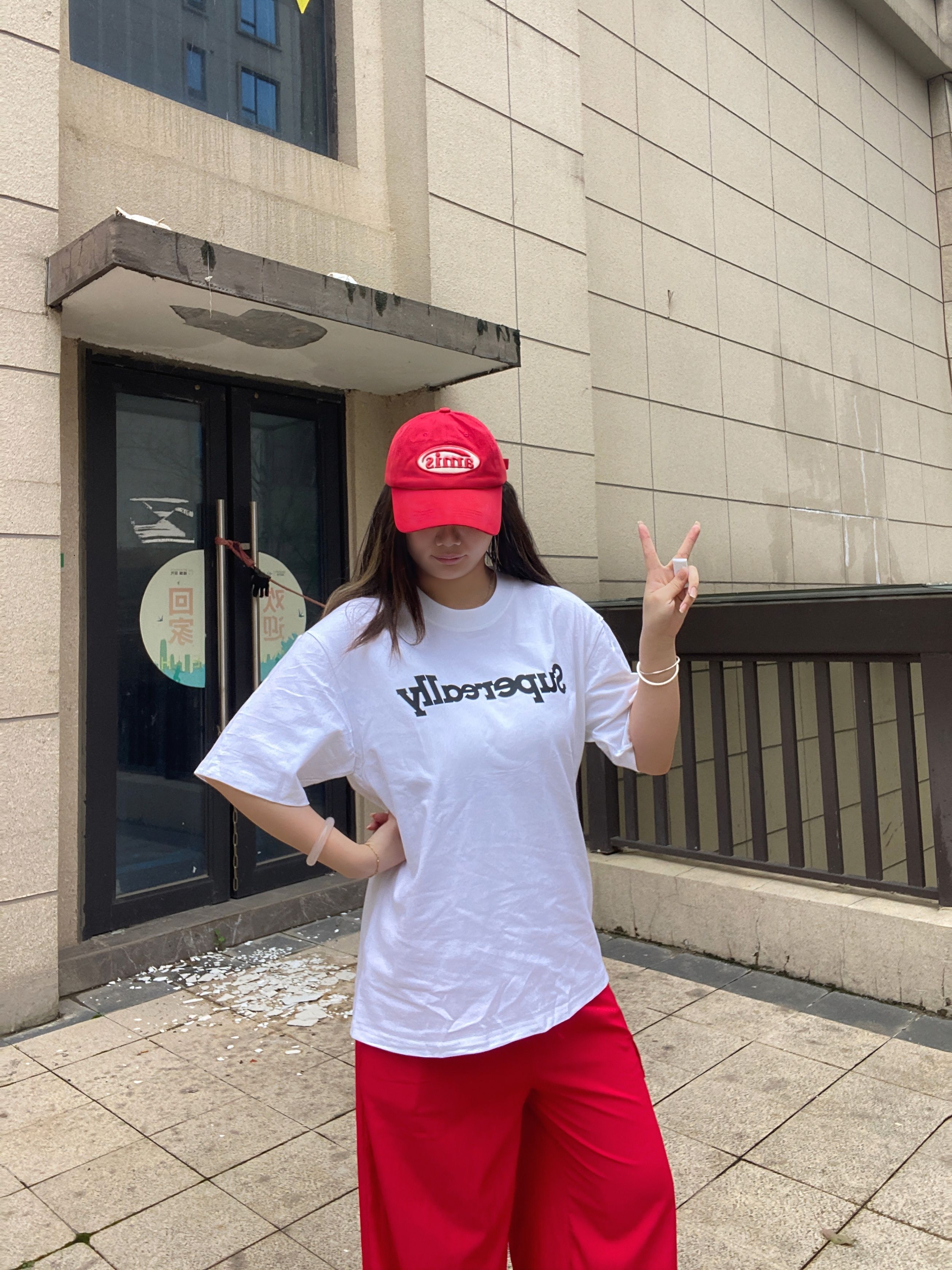 红白配色太有活力啦!宽松白T慵懒随性,搭配红裤直接点亮全身,休闲又显气场,日常出街或拍照都很出片,轻松拿捏随性时髦感~ε٩(๑> ₃ <)۶з