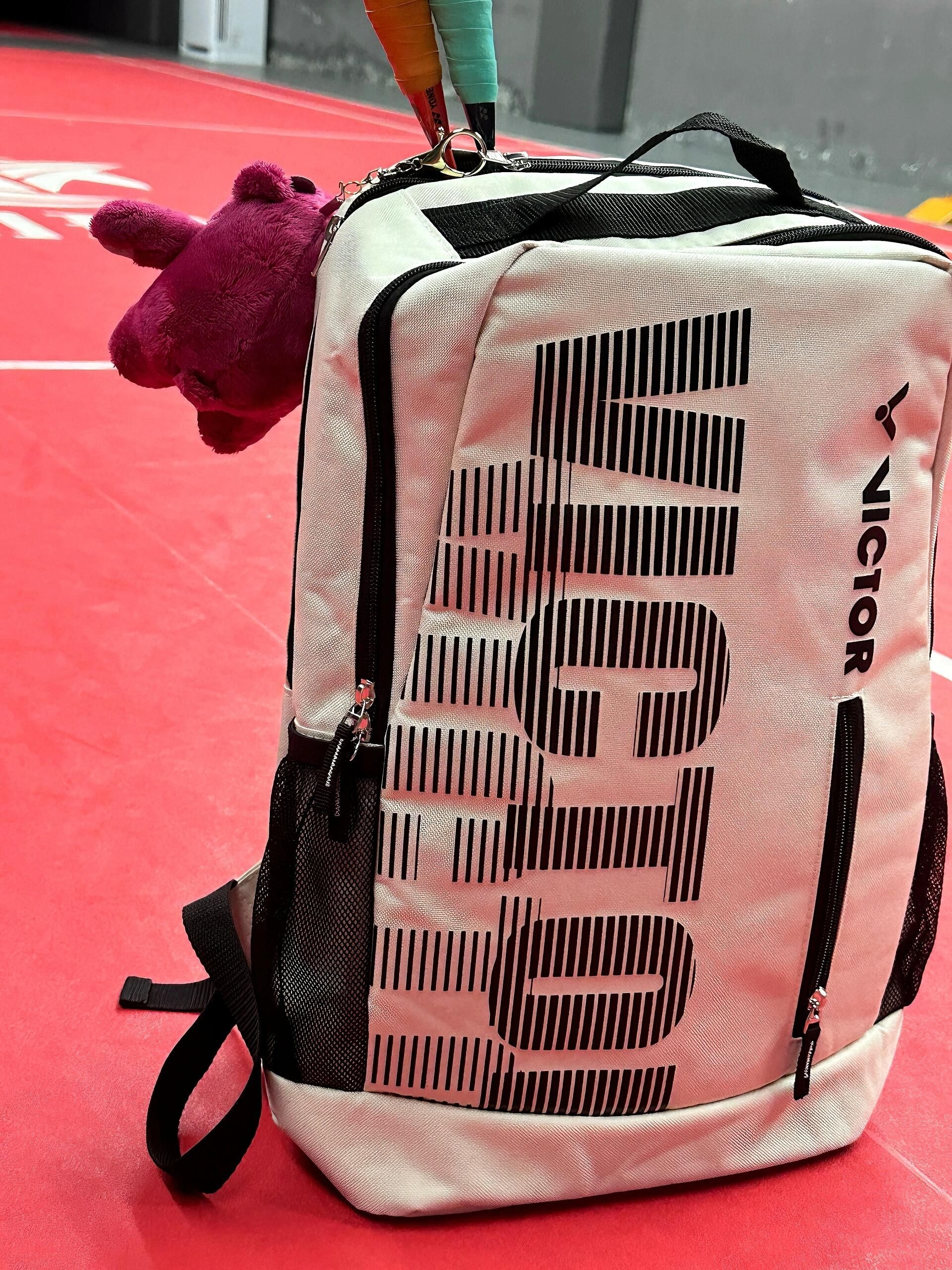 车多房多不如维克多✌️ 我的球包 回头率真滴不要太高啊哈哈 越看越喜欢我的球包 温暖的米白色 超级好搭配 拍照也很出片 简约的设计,给了大家很多DIY的空间 搭配挂件🧸 容量大,能装电脑!可以当书包电脑包! 也是通勤羽毛球包💼