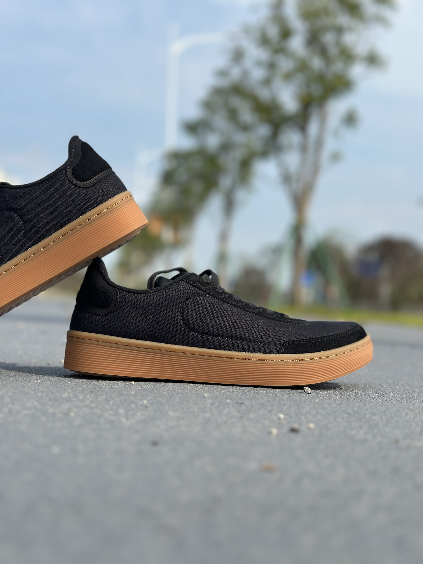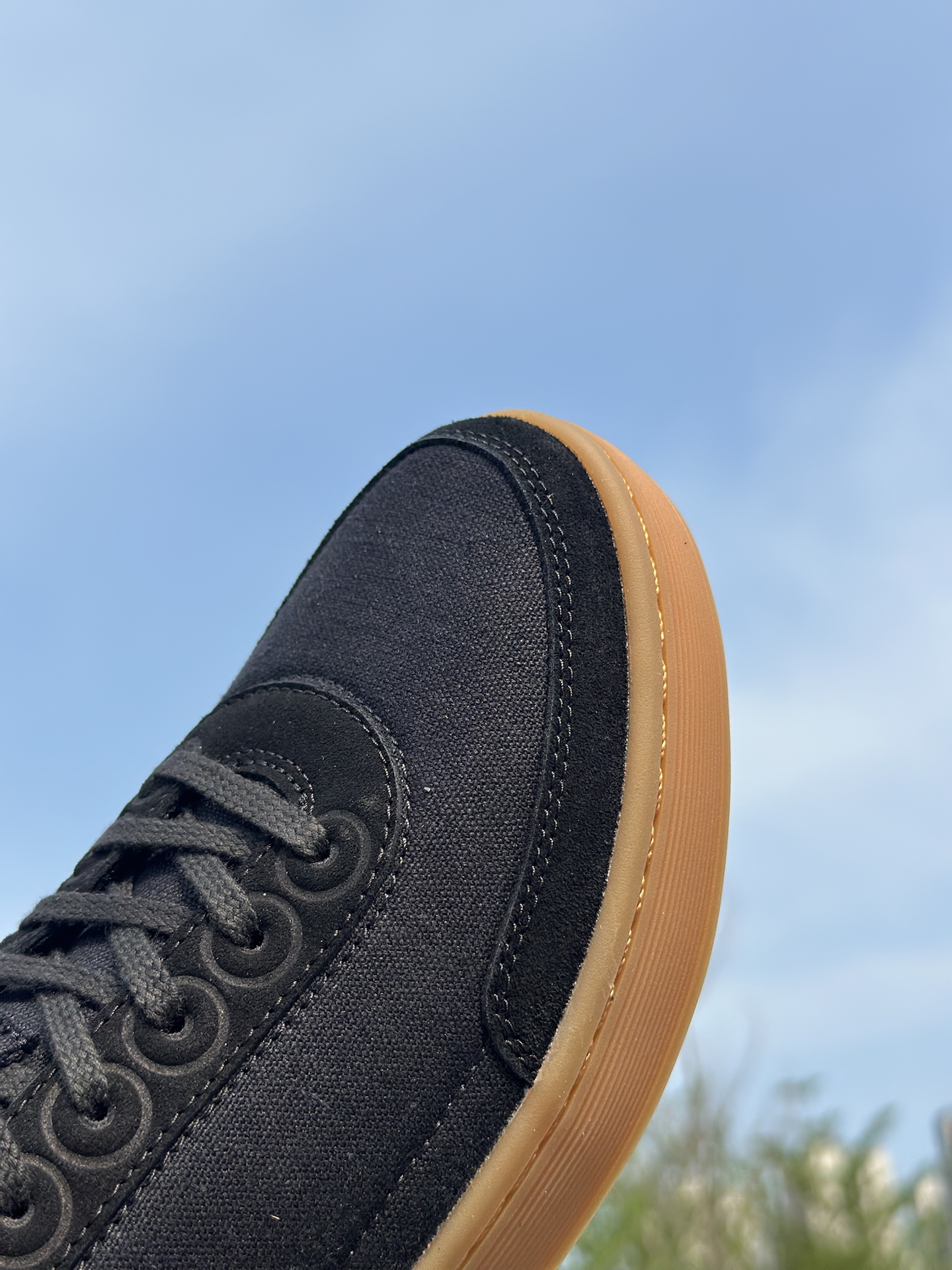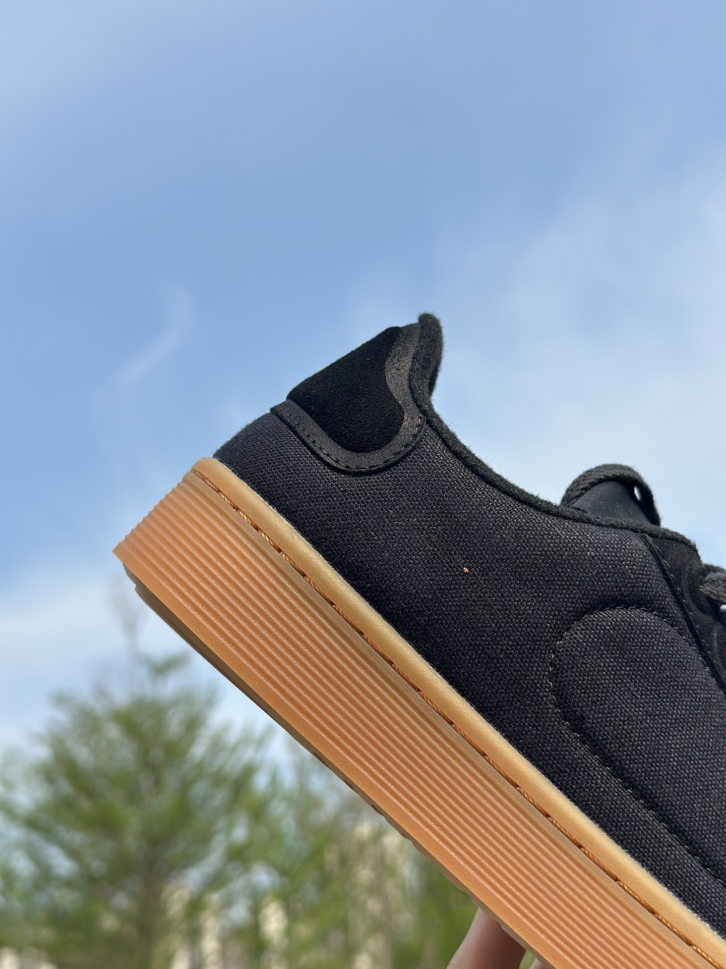 这双黑生胶帆布鞋,基础日常款。 帆布材质比较普通,胜在轻便透气,夏天穿不闷脚。配色是经典的黑配生胶底,设计亮点很抓眼球。 脚感还可以鞋底偏薄,作为日常通勤、随便穿穿的鞋子还可以🉑