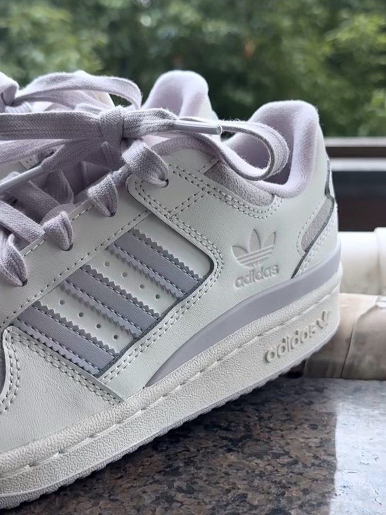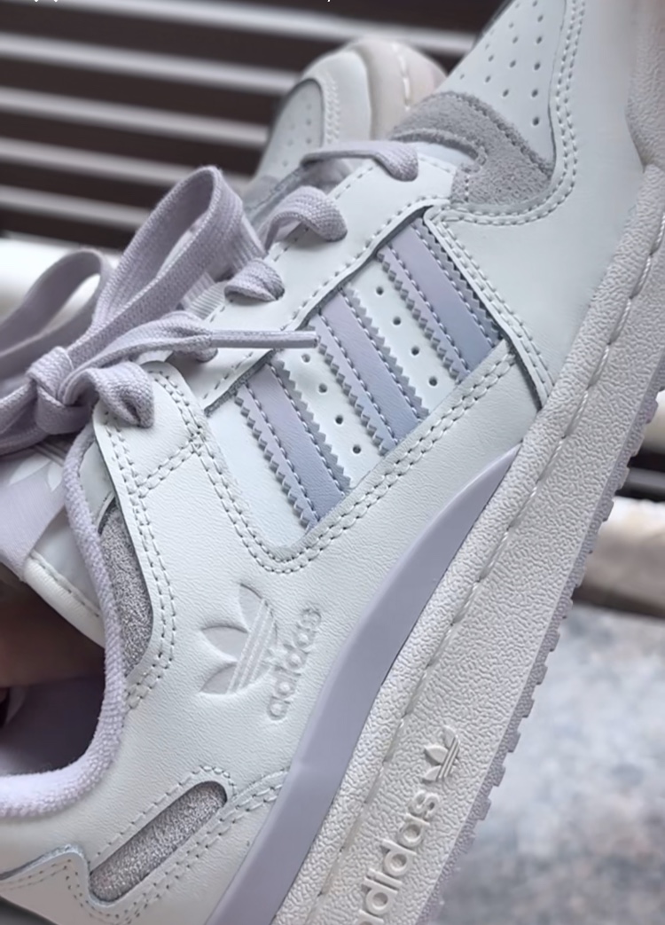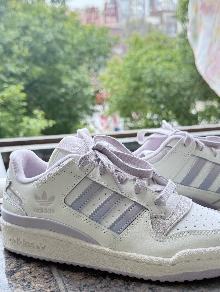 谁懂啊!这双adidas Forum 真的长在我的审美点上了✨ 奶白+淡紫灰的拼色,温柔又高级,完全不挑穿搭! 麂皮拼接+经典三叶草logo,复古感直接拉满,细节精致到骨子里~ 上脚软乎乎的,厚底还能悄悄增高,走路久了也不累脚! 不管是配牛仔裤、百褶裙还是运动裤,都能轻松hold住甜妹/休闲/学院风,日常出街、通勤上学都超合适! 低饱和度的配色,春天穿干净又清爽,夏天搭小裙子也超温柔~ 这...