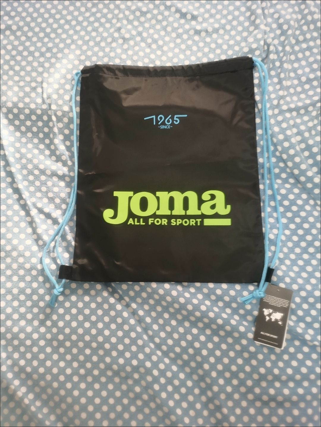 🖤Joma抽绳束口袋,黑色尼龙材质,轻便耐用,适合运动或日常收纳。正面“1965”和“ALL FOR SPORT”字样,运动感满满⚡。蓝色抽绳设计,开合方便,容量适中,能装运动装备、衣物或小物品。Joma是西班牙知名运动品牌,专注足球和户外运动,这款束口袋超适合运动爱好者随身携带,实用又便携!