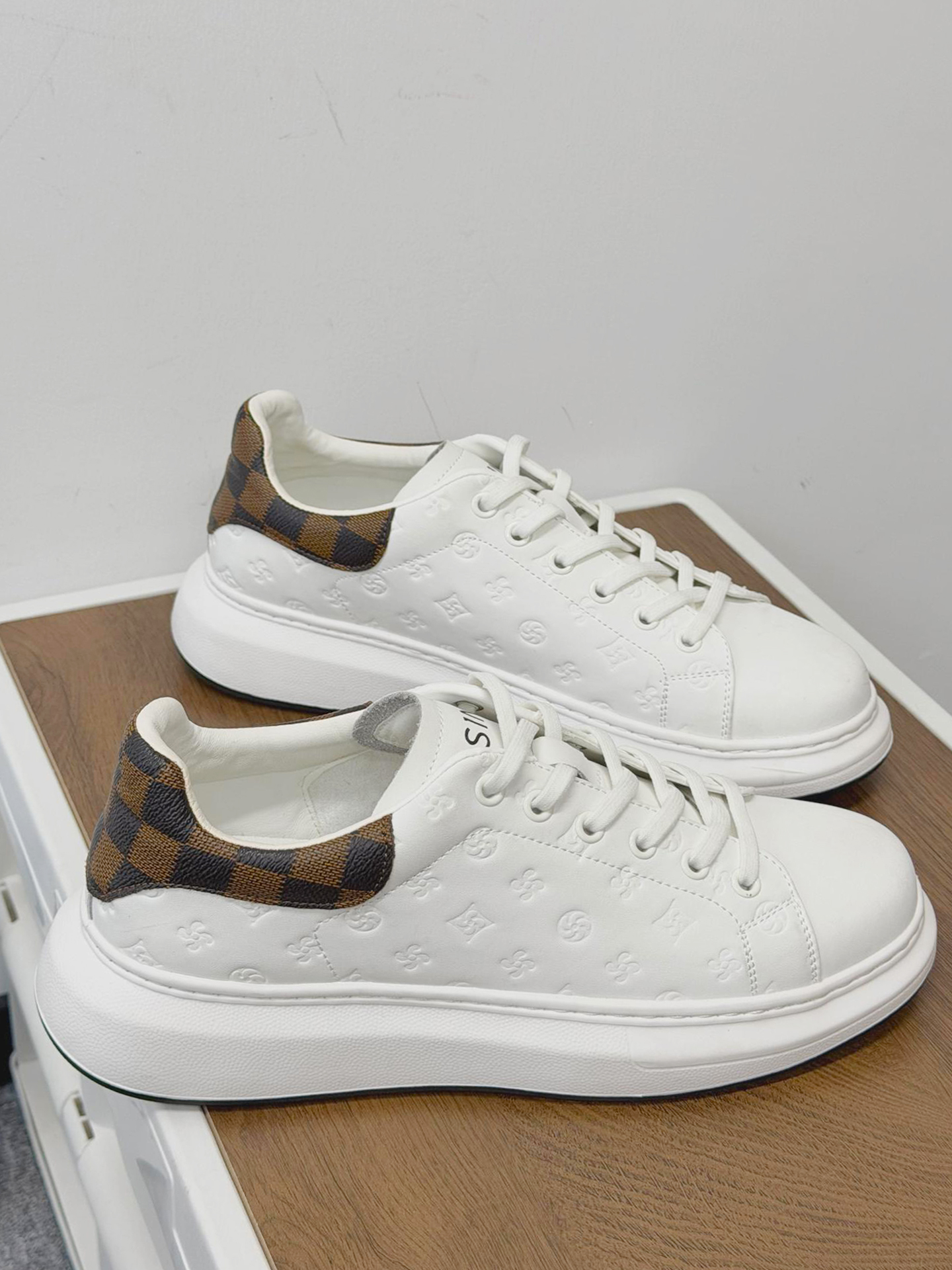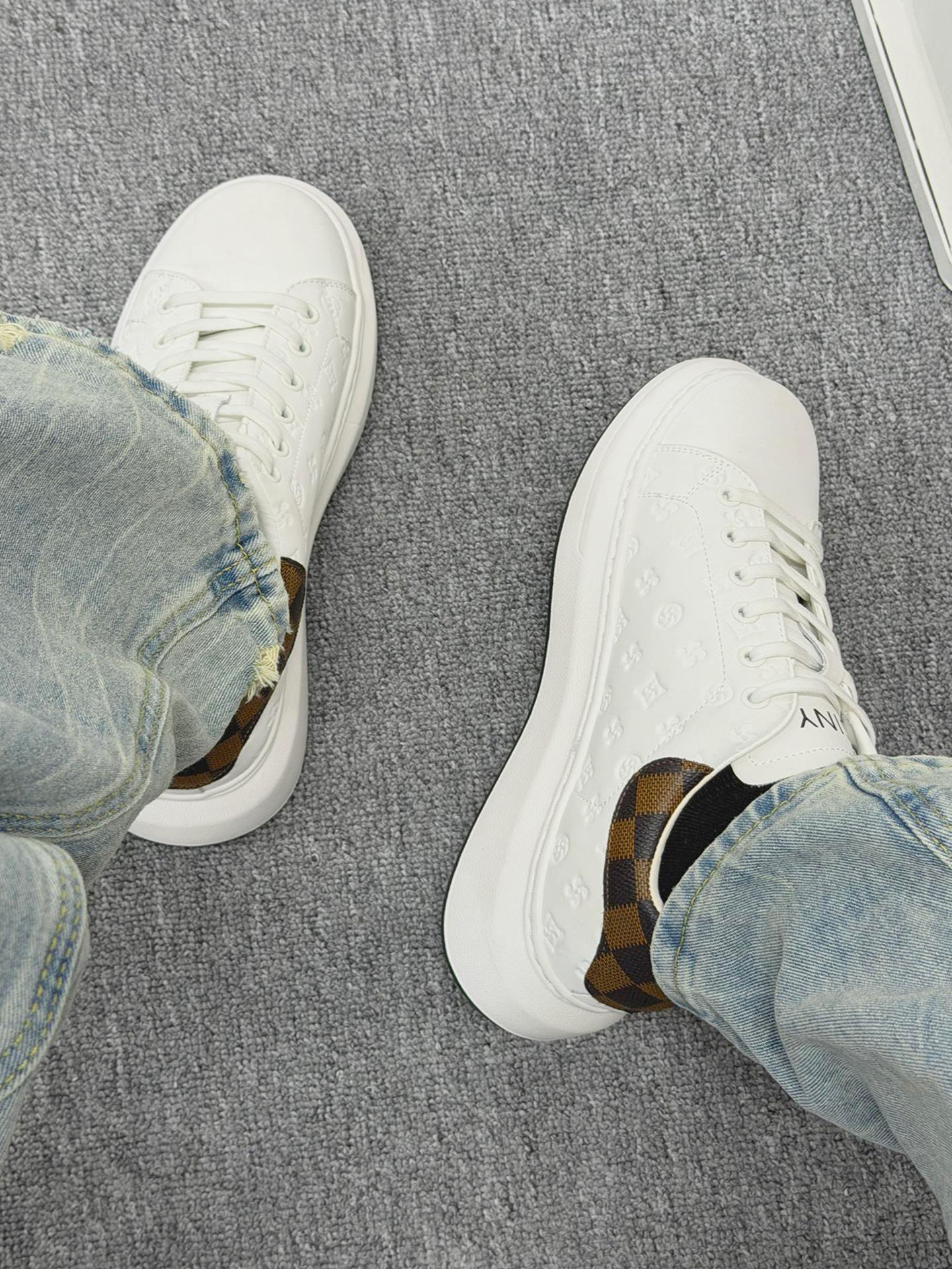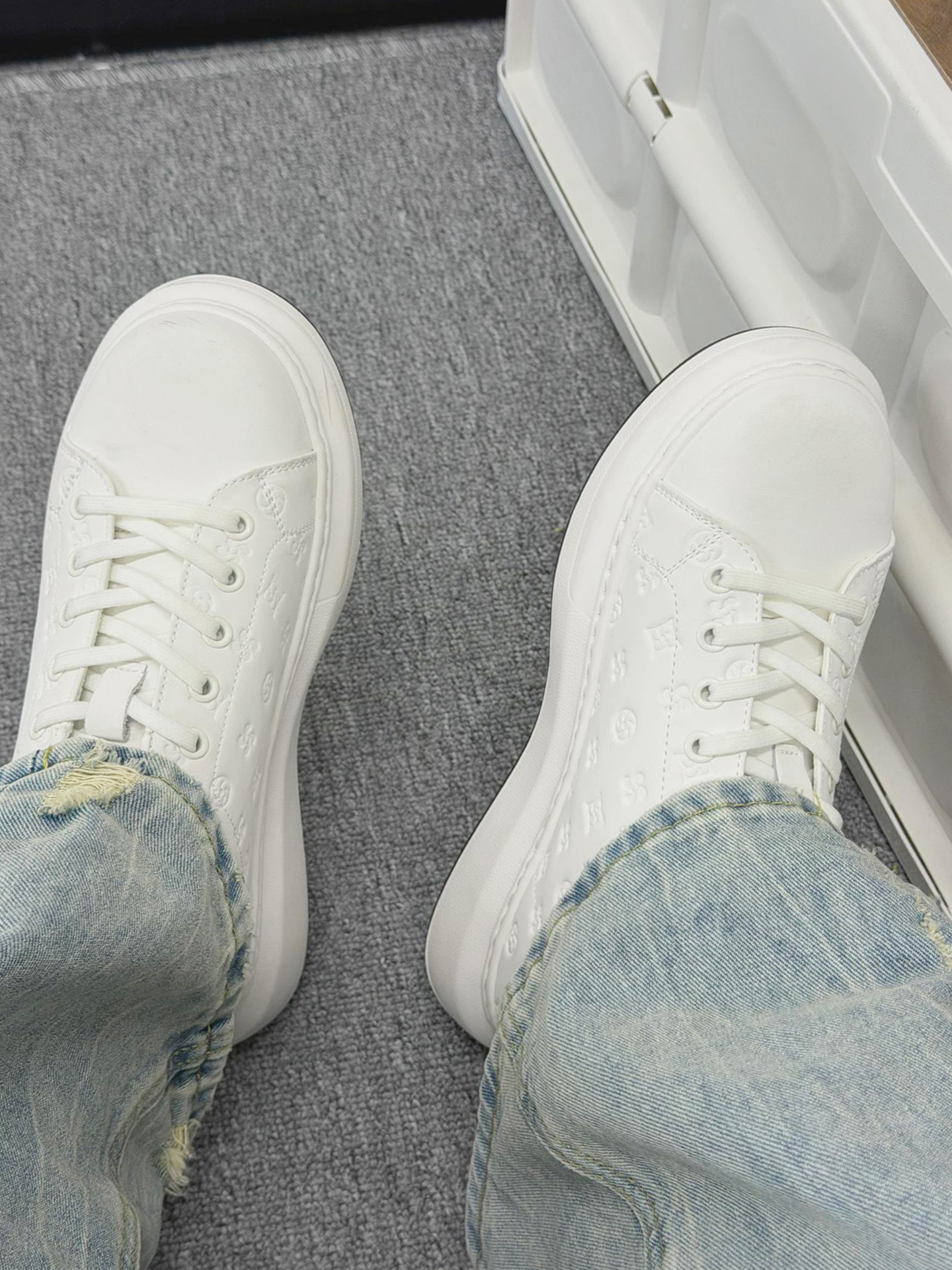 说真的,白色压纹鞋面配棋盘格后跟精致复古🤎,白色鞋面易留痕迹打理麻烦⚠️,厚底增高且支撑感强走路稳当💪,这几天穿它配破洞牛仔裤出街很协调👖,适合日常出街与轻休闲穿搭✅