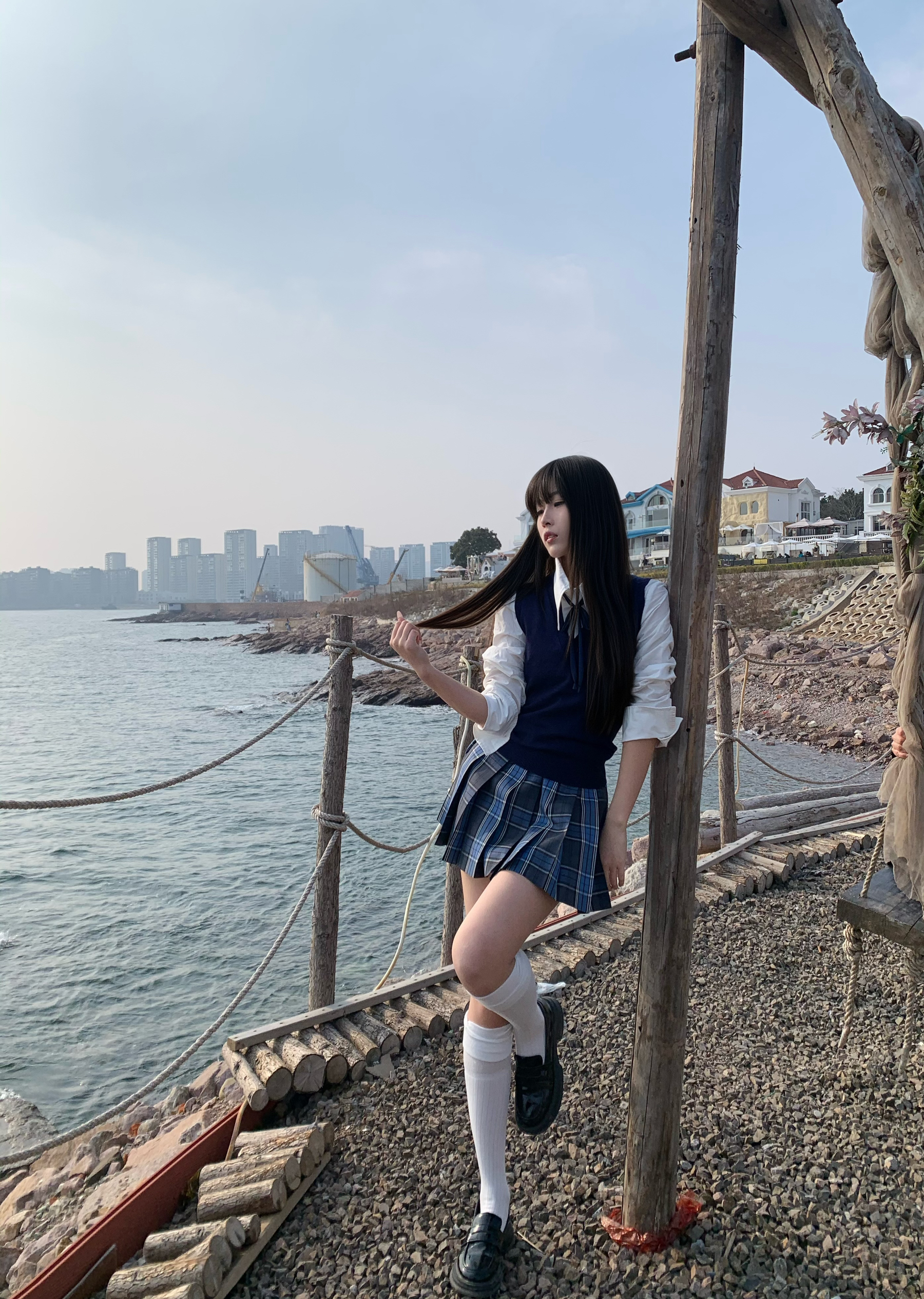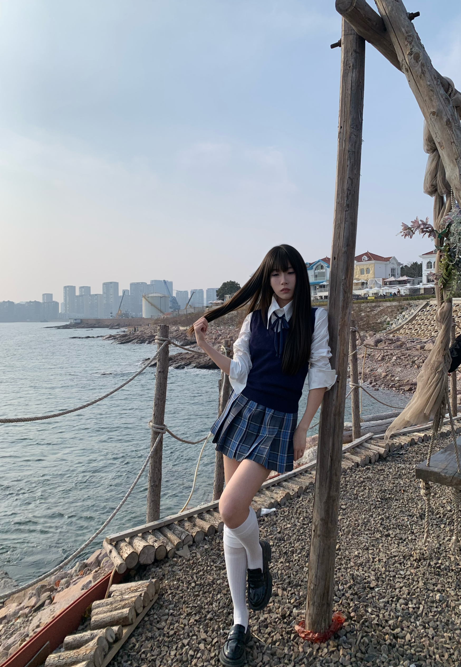 被问爆的海边JK穿搭来啦!藏青格裙+白衬衫+针织背心,经典又耐看💙 收腰款衬衫很显身材,百褶裙版型挺括,走路带风超有少年感~ 性价比拉满,学生党也能轻松入手!