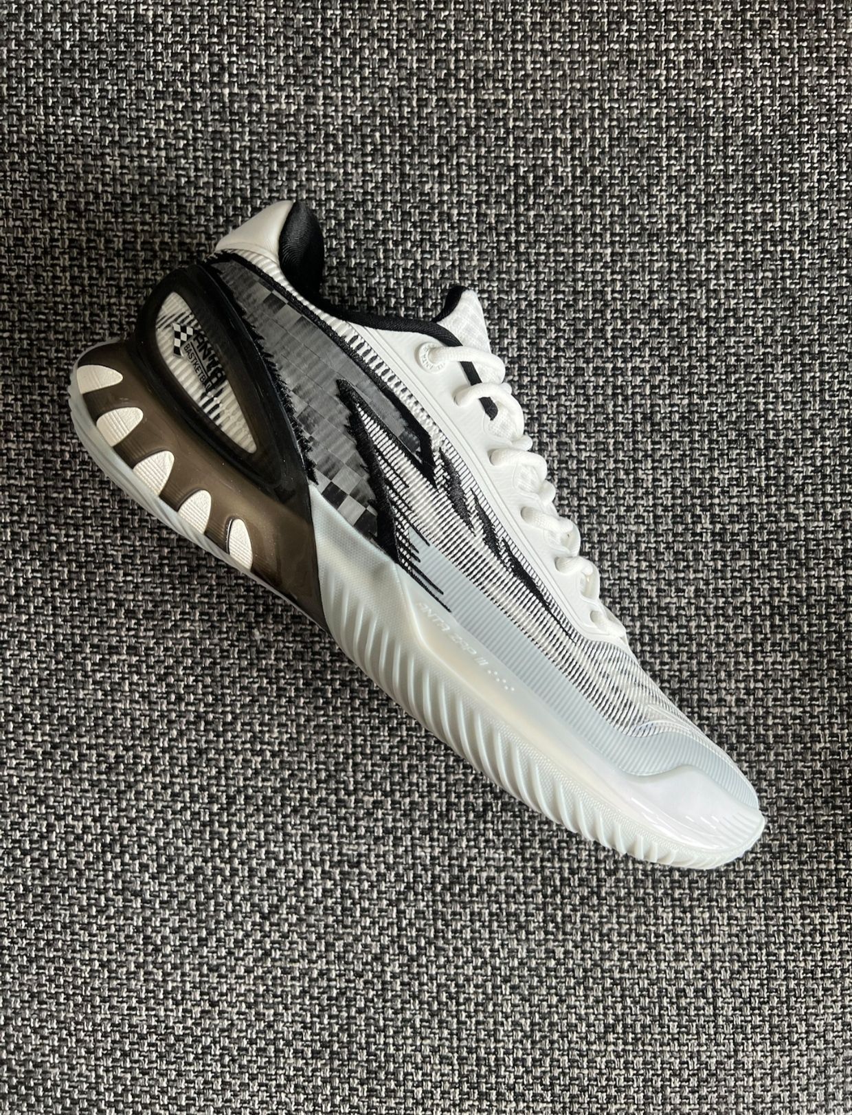 最近打球,去球场训练,都会带两双球鞋,去球馆! 水花8代,这双球鞋,配色简单百搭。 鞋面采用绞综梭织鞋面,透气表现好,包裹和鞋脚一体做得很棒的。全掌氮80科技中底,上脚感受,缓震方面不错。 中底内置TPU抗扭片,刚性适中。 瞬息3代同款的LTR液态橡胶外底,纹路清晰,抓地力稳,防滑效果不错。 适合学生党,校园体育生,篮球爱好者。 参加篮球比赛,日常打球。