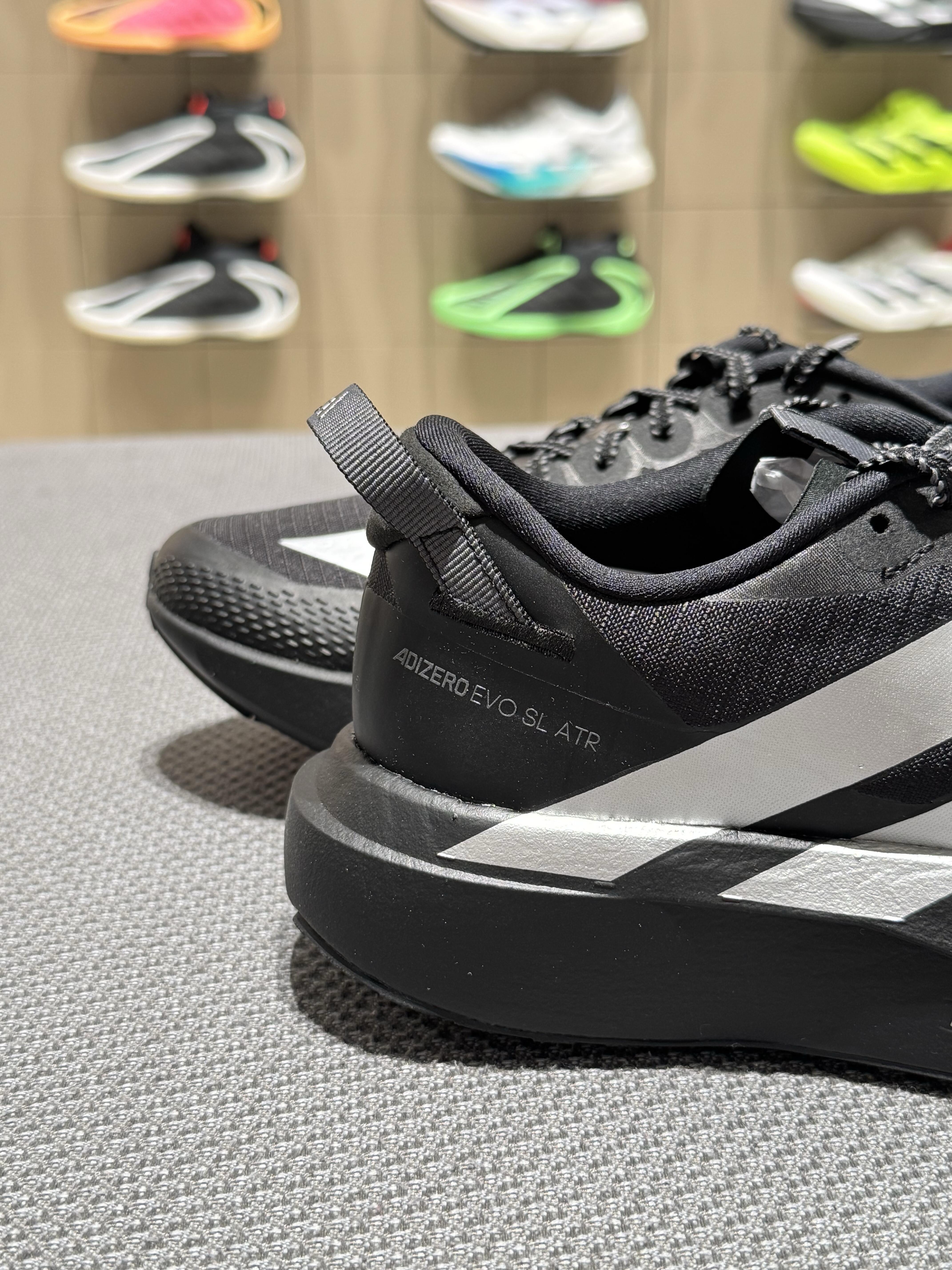 ADIZERO EVO SL ATR|细节控直接爱住 防水鞋面超抗打,日常溅水完全不慌,雨天出门也稳稳安心 鞋舌+后跟双提环设计,穿脱巨丝滑,懒人一秒上脚超省心 经典银标三条杠自带反光质感,低调高级,光线下氛围感拉满 颜值、细节、实用性全在线,通勤运动都好穿,闭眼入不亏!