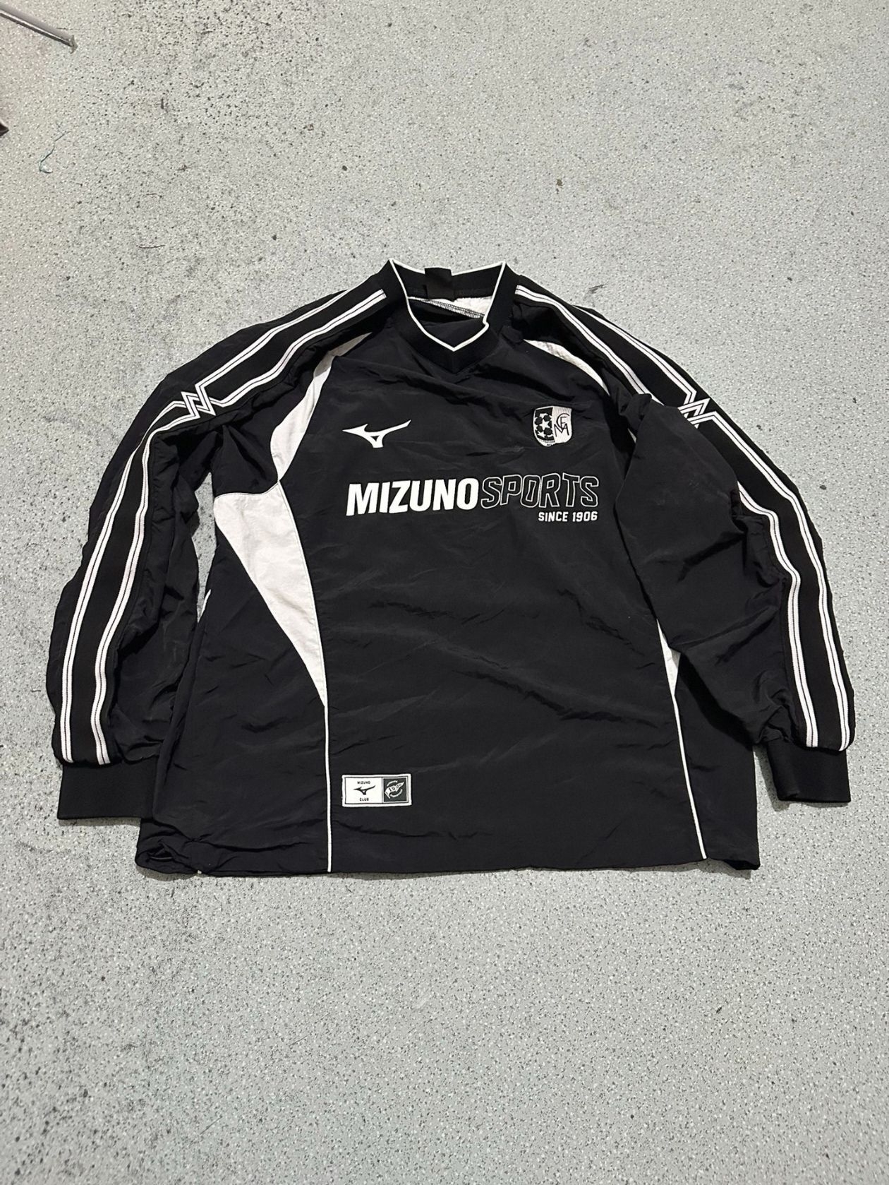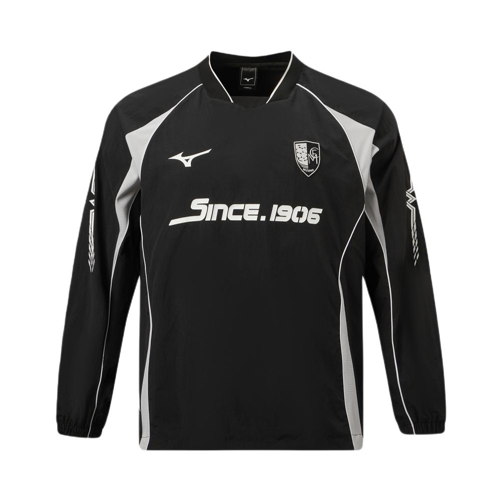 ⚽美津浓K2CE63E8复古足球衫,黑色主色+灰色拼接,简约又有运动感!速干透气梭织面料,户外运动或日常穿搭都很OK✨。胸前“Since 1906”字样+品牌标志,复古足球氛围拉满。长袖设计,春秋穿超合适,袖口和下摆松紧,舒适又贴合。搭配运动裤或牛仔裤,轻松get街头运动风,实用又时髦!🧢