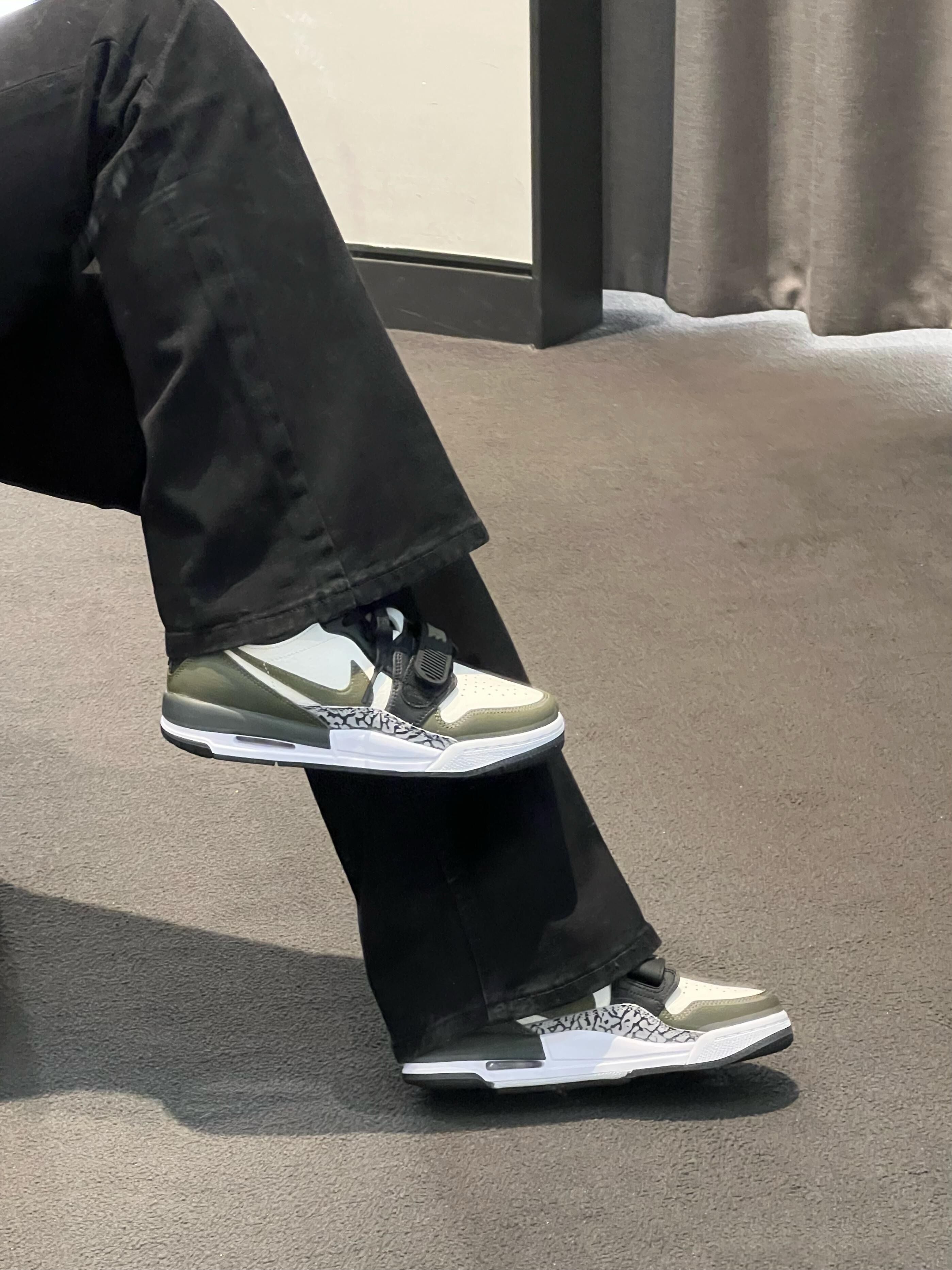 这双橄榄绿AJ Legacy 312真的是秋冬穿搭宝藏! 白绿撞色+经典爆裂纹,复古又高级,低调中带着质感,上脚瞬间拉满美式松弛感🍃 • 经典设计:融合AJ1、AJ3和Air Force 1元素,魔术贴+爆裂纹细节,辨识度拉满 • 配色高级:橄榄绿+奶白+黑色,耐脏又显白,不挑肤色不挑穿搭 • 百搭属性:配黑色阔腿裤、牛仔裤都超和谐,日常出街、通勤上学都能穿 • 脚感舒适:后跟可视Air气...