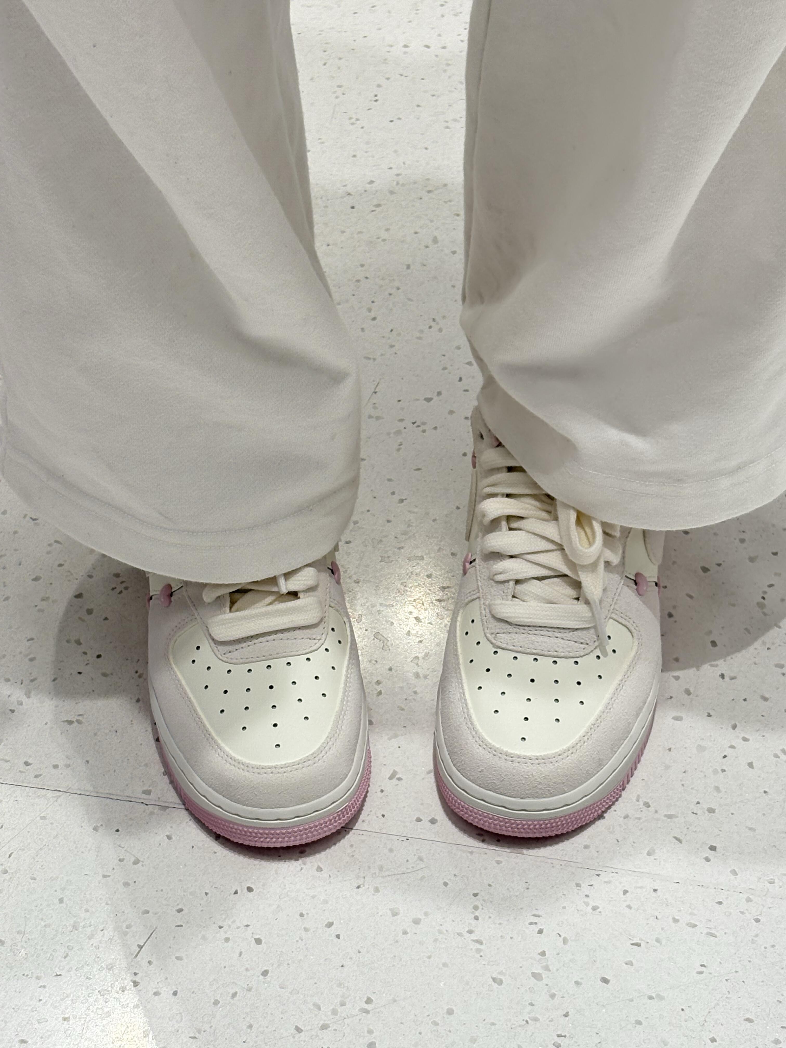 情人节限定空军一号|甜到心巴上💕 Nike Air Force 1 Low Valentine's Day 真的美到犯规! 干净纯粹的颜值+万年经典版型+无敌百搭属性 直接成为情人节最有仪式感的时尚单品~ 以浪漫氛围为灵感,奶油白×温柔爱心粉绝美碰撞 甜而不腻,少女感直接拉满,为经典鞋款注入满满春日活力 既保留AF1标志性复古韵味,又融入精致爱心细节 温柔又高级,甜度与质感双双在线 上脚显白...