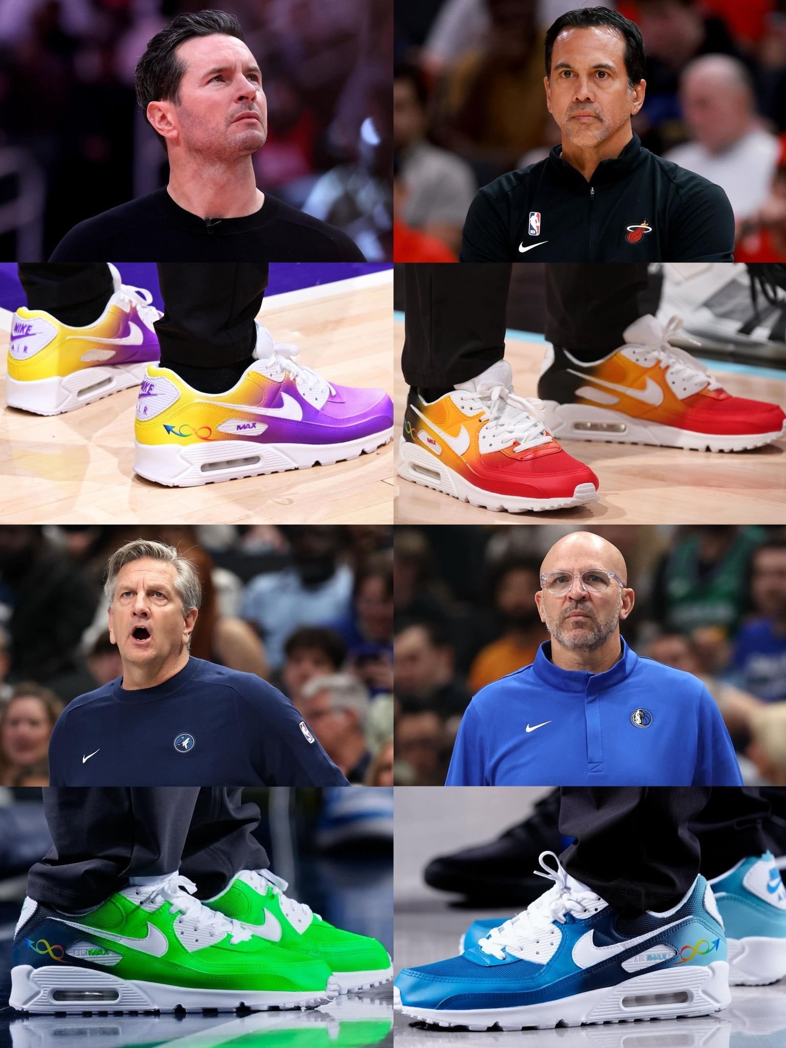 左边是红白配色的Air Max LeBron 7,是他刚披上骑士战袍时的战靴,硬朗的气垫宣告着王权降临;右边是近年的LeBron 20,浅粉与薄荷绿的清新配色,少了几分锐气,多了几分从容。