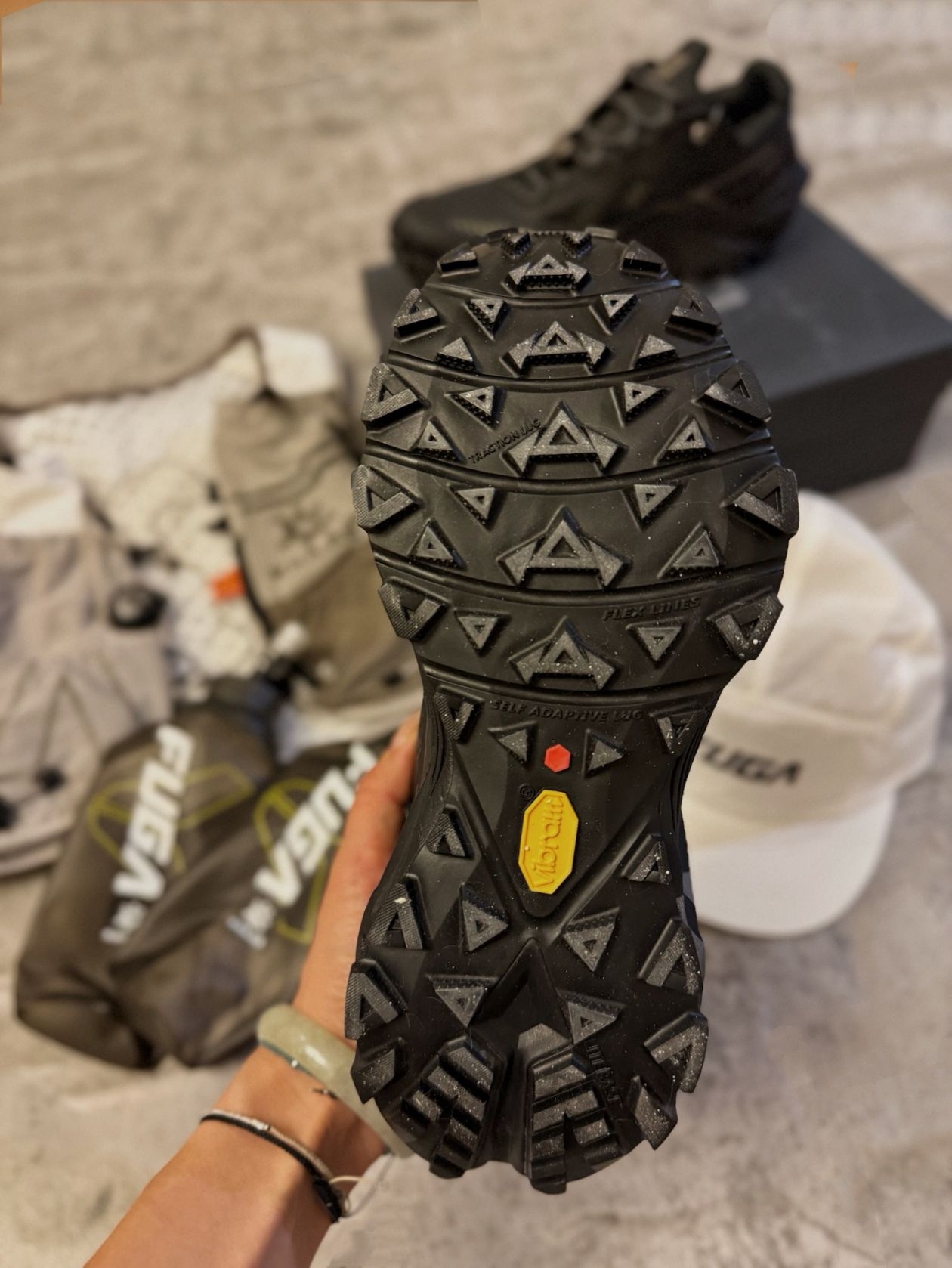 入了第一双全黑的FUGA EX330还没进山,倒是先陪我踩过了柏油路、挤过了公司电梯 黑色不只是为了藏住灰尘和汗水它是日常跑者穿搭最合理的解决方案 兼顾了跑山的功能性和城市的时髦感 一鞋到位,久跑不累 等不及和大家在山里见面就以这一身all black,奔赴山野🙋♀️