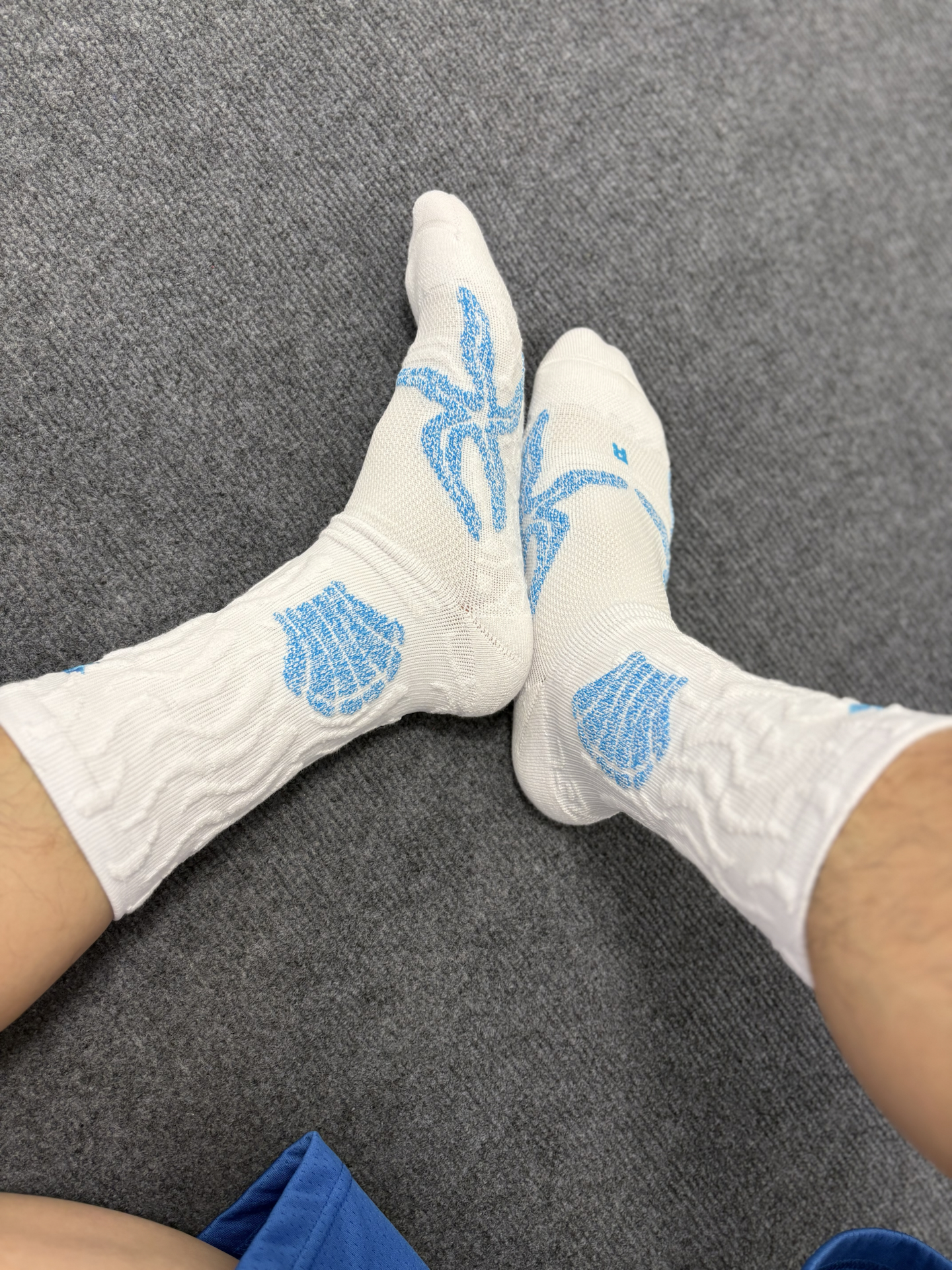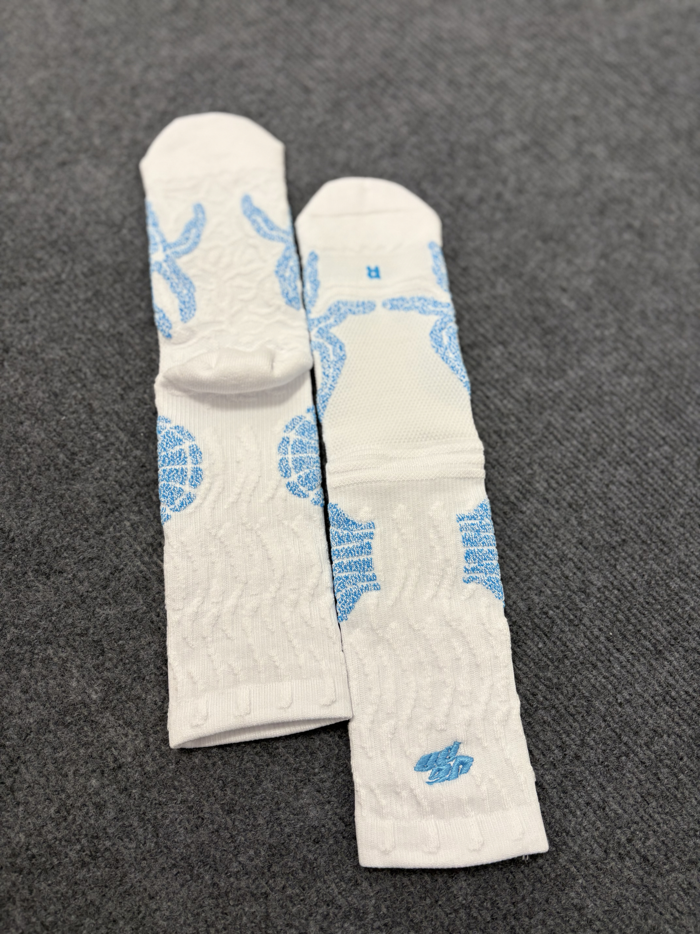 今日球袜分享: @维动VEIDOORN 西海岸Pro专业篮球袜 袜子整体质感很在线 尤其是袜筒设计了凹凸纹路 足底部防滑性也是做的很到位 实战中可以放心做变相 清清爽爽的外观很适合夏天