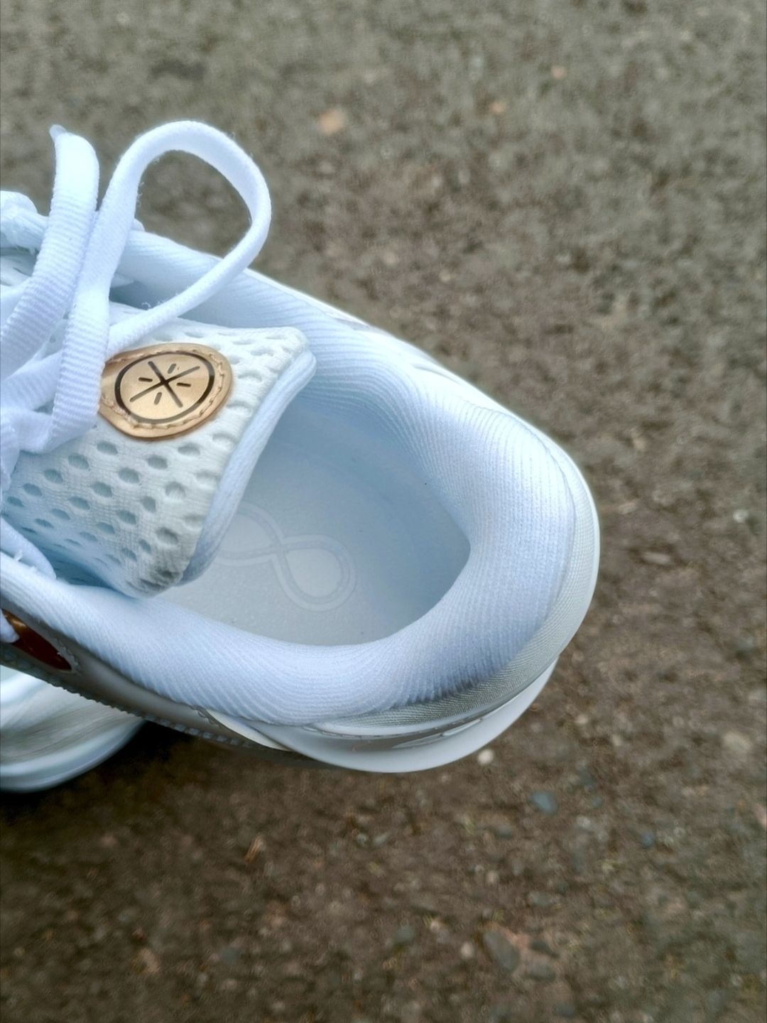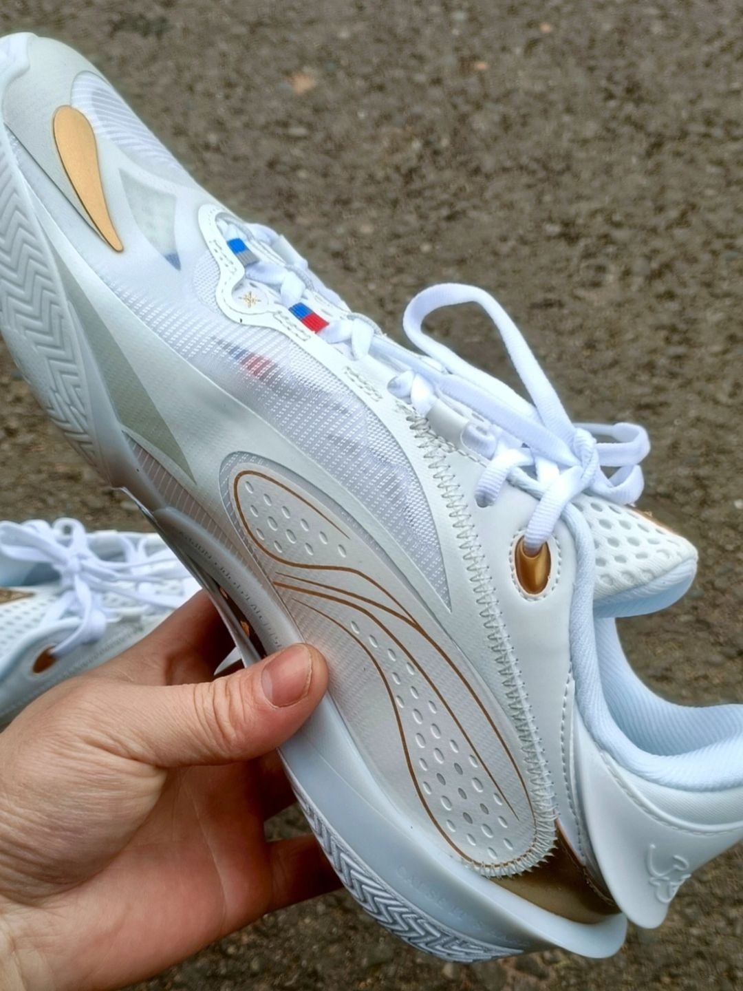 上脚李宁808 5V2的第一刻,全掌超䨻中底的软弹脚感直透脚底,不是一味的软塌,而是带着紧实的回弹韧劲,静态踩压就能感受到饱满的支撑感,加宽3mm的鞋楦让脚掌舒展不挤脚,热熔加固的鞋面贴合脚型,锁定感很稳但不紧绷。