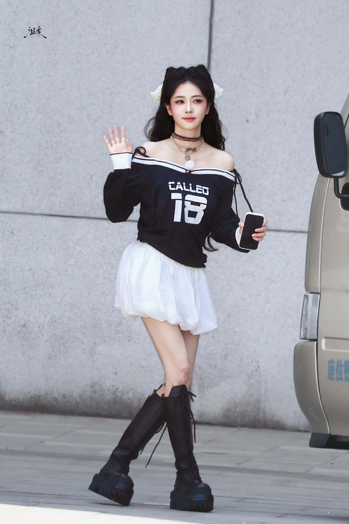 白鹿更新了3月29日录制节目的穿搭,黑白搭配可爱的少女,漏肩T恤下搭蓬蓬裙,简直就是可爱小猫咪公主啊! CR:@Heart_白鹿
