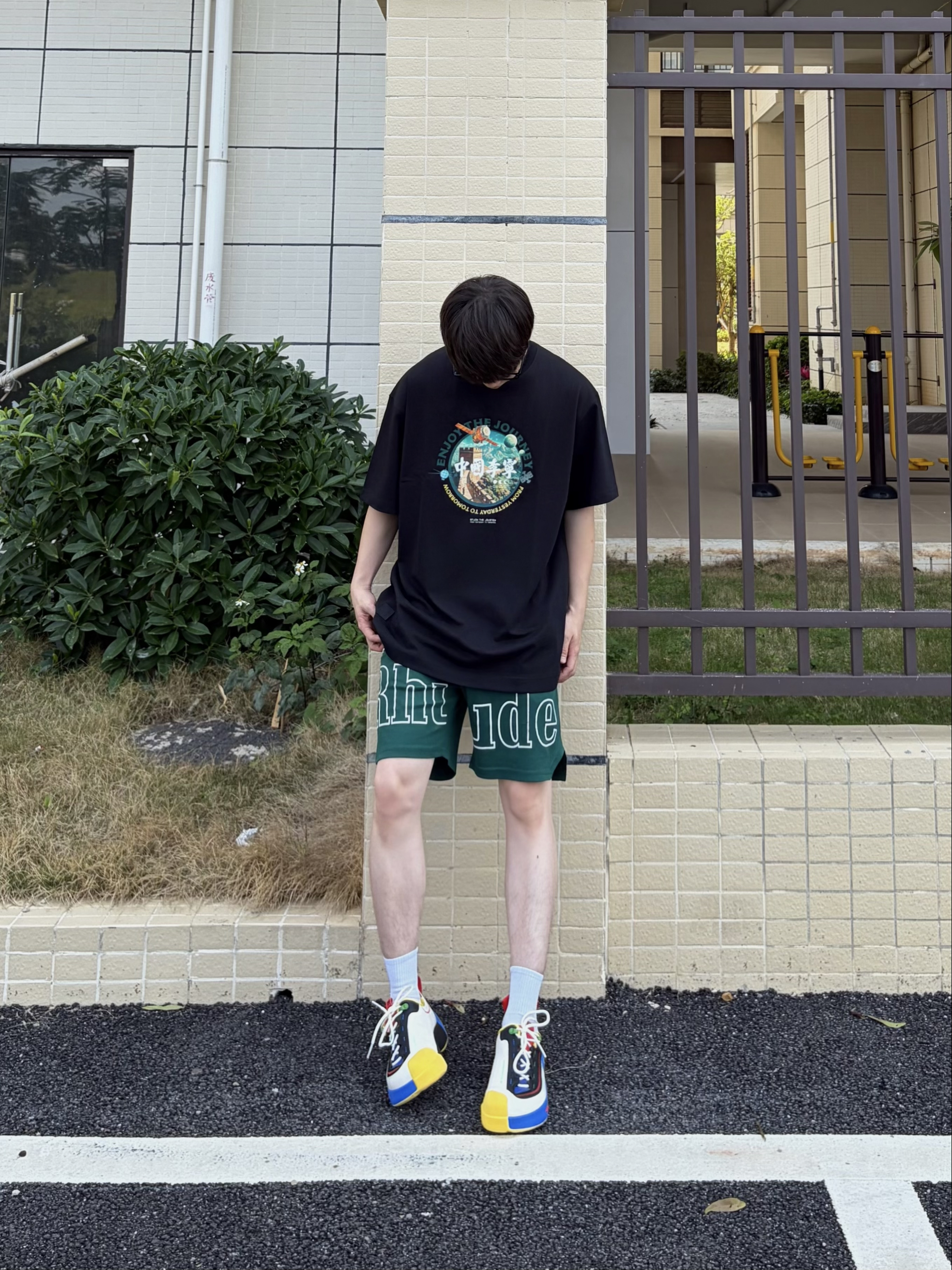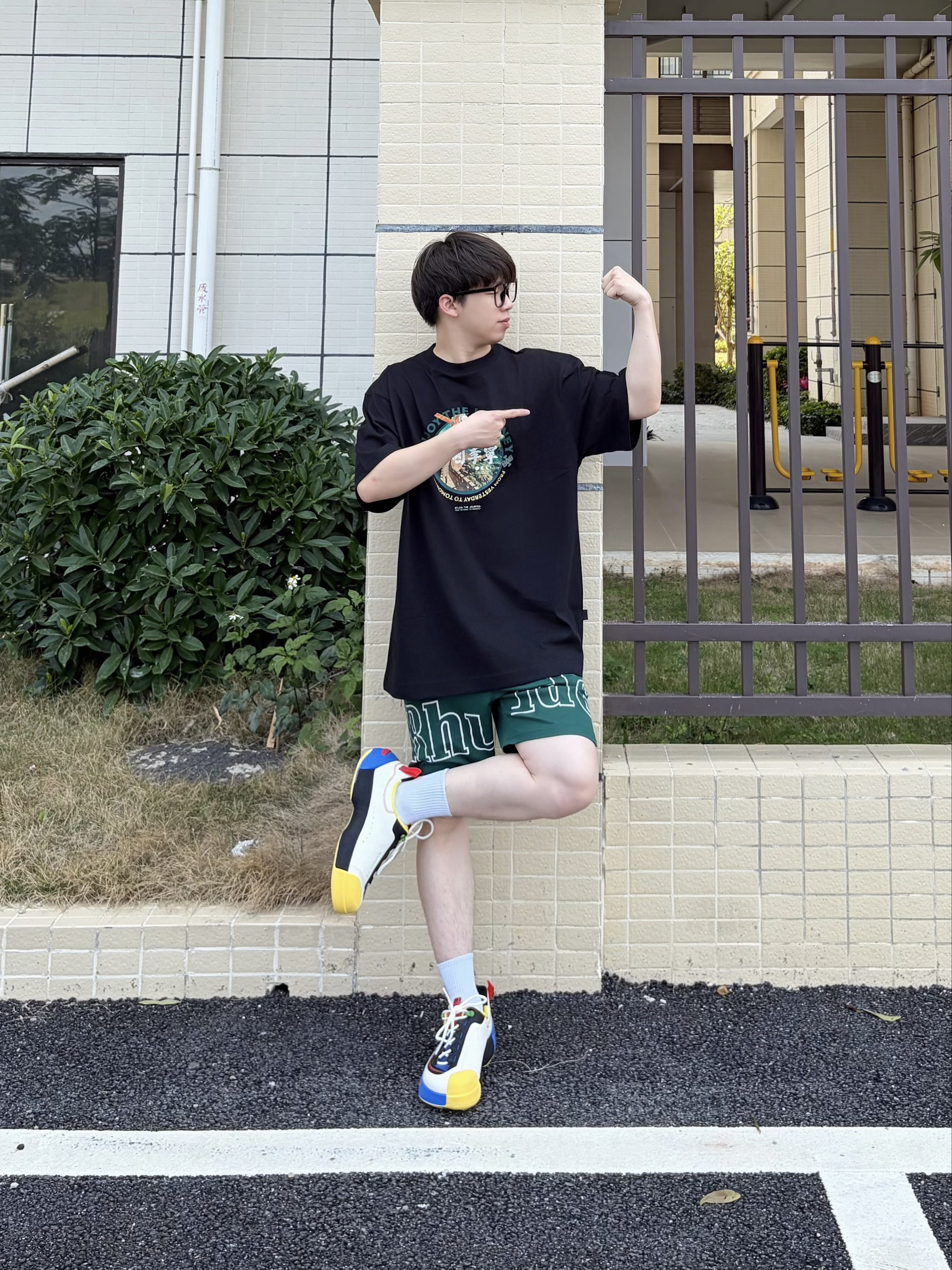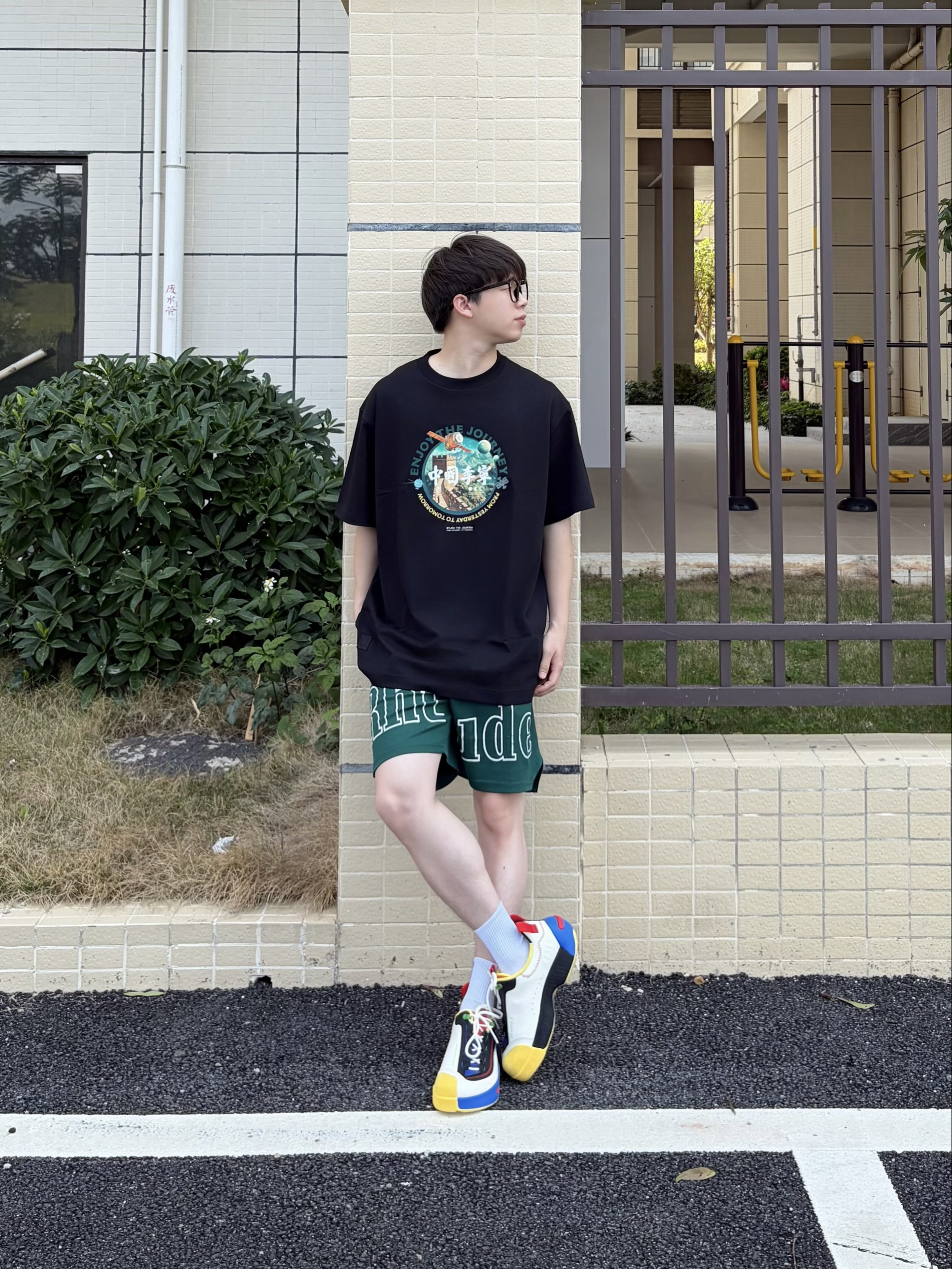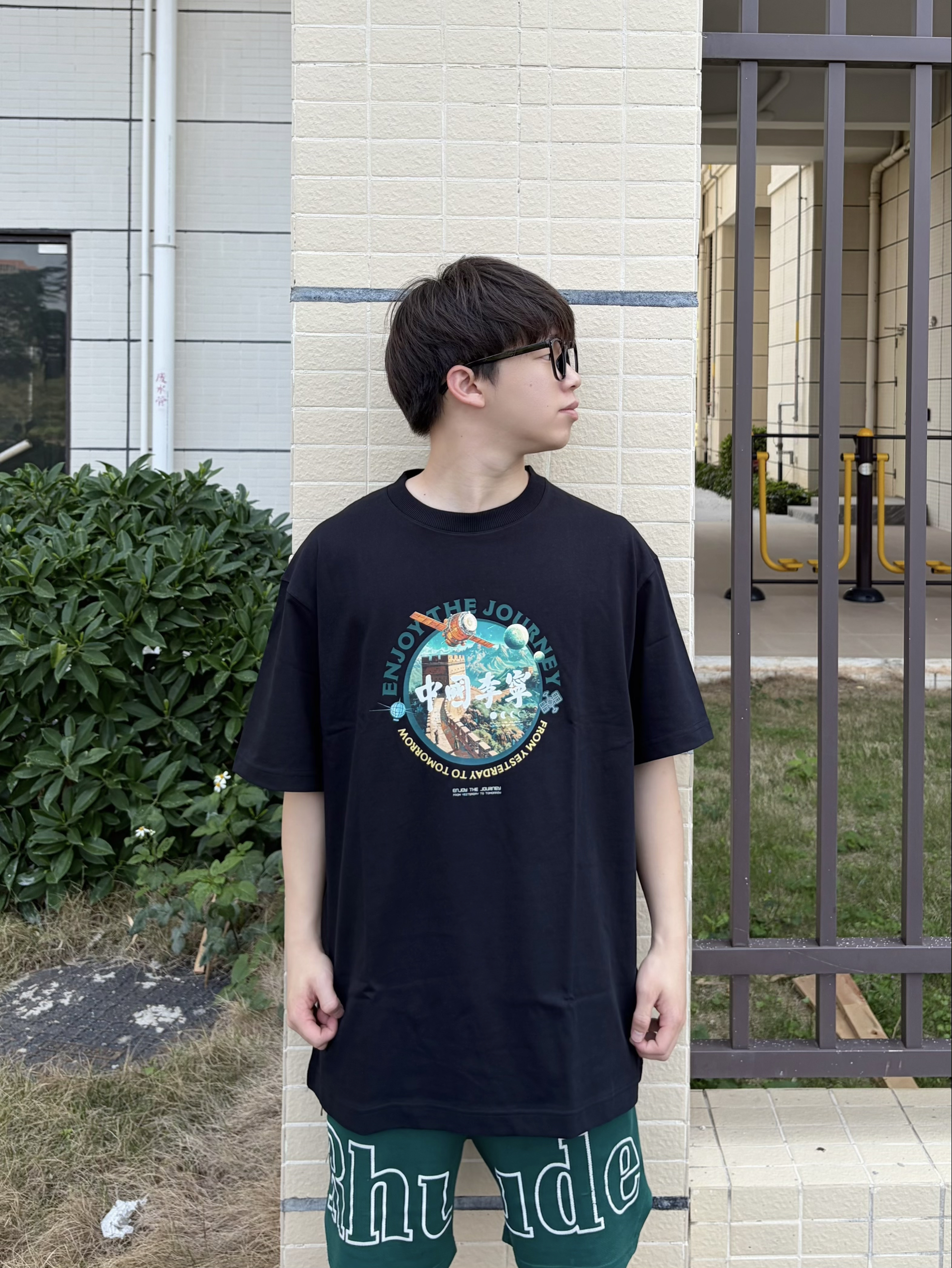 入春的街头 一件 中国李宁 的 宽松纯棉黑T👕是刚需 胸前的长城与航天元素印花 把国潮感拉满💥 oversize版型不挑身材✅ 透气棉料适配春夏秋三季🍃 搭配双 中国李宁 悟道ACE 3 黑白蓝撞色厚底休闲鞋👟 拼色颜值潮酷又美式🕶️ 上脚脚感舒适 软弹又显高🆙 整套穿搭随性又有设计感 日常出街轻松拿捏🚶