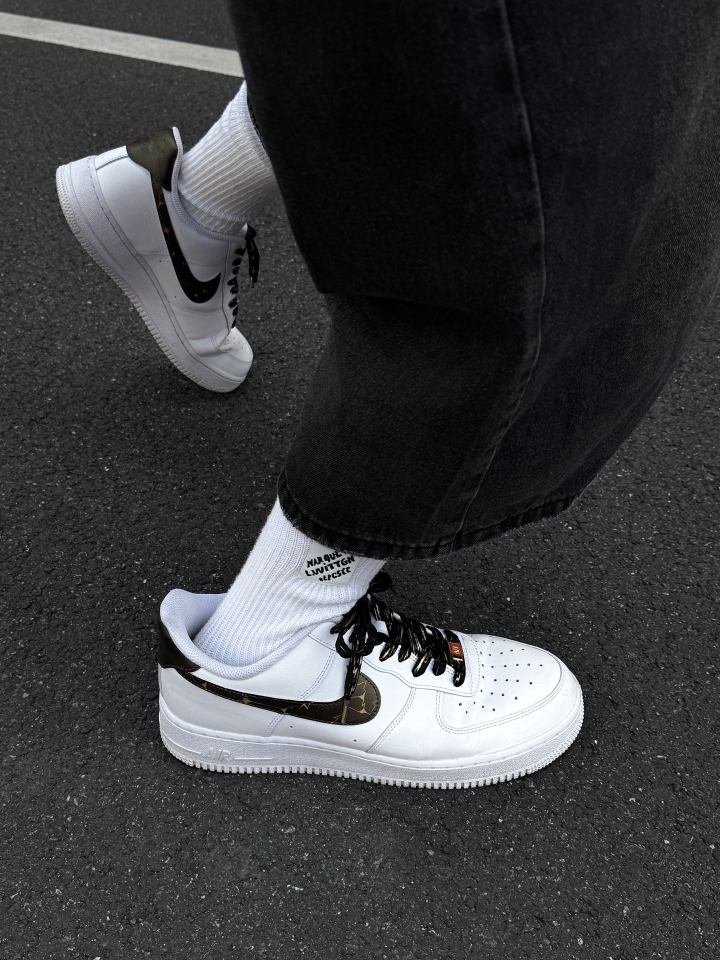 ~ 给大家分享一双 的空军一号定制板鞋👟 鞋型是比较基础百搭的板鞋鞋型 依旧是经典的鞋型➕简约的定制 看的出来是很迎合不想撞款又想带点小设计感的朋友 整双鞋就会更适配街头感的穿搭👔 像我日常常穿的牛仔裤和休闲卫裤都挺ok的 尺码小建议: 徐哥平常穿的40这双40的刚好合适💡