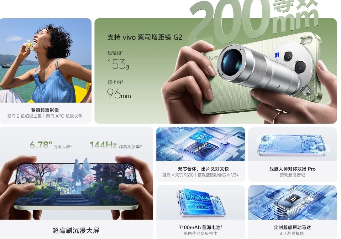 本篇笔记关联了vivo X300s 5G手机 蔡司2亿超级主摄 蔡司APO超级长焦 蓝图影像芯片V3+ 天玑9500处理器 7100mAh蓝海电池 胶片绿等商品,为用户提供真实的使用体验和购买参考。