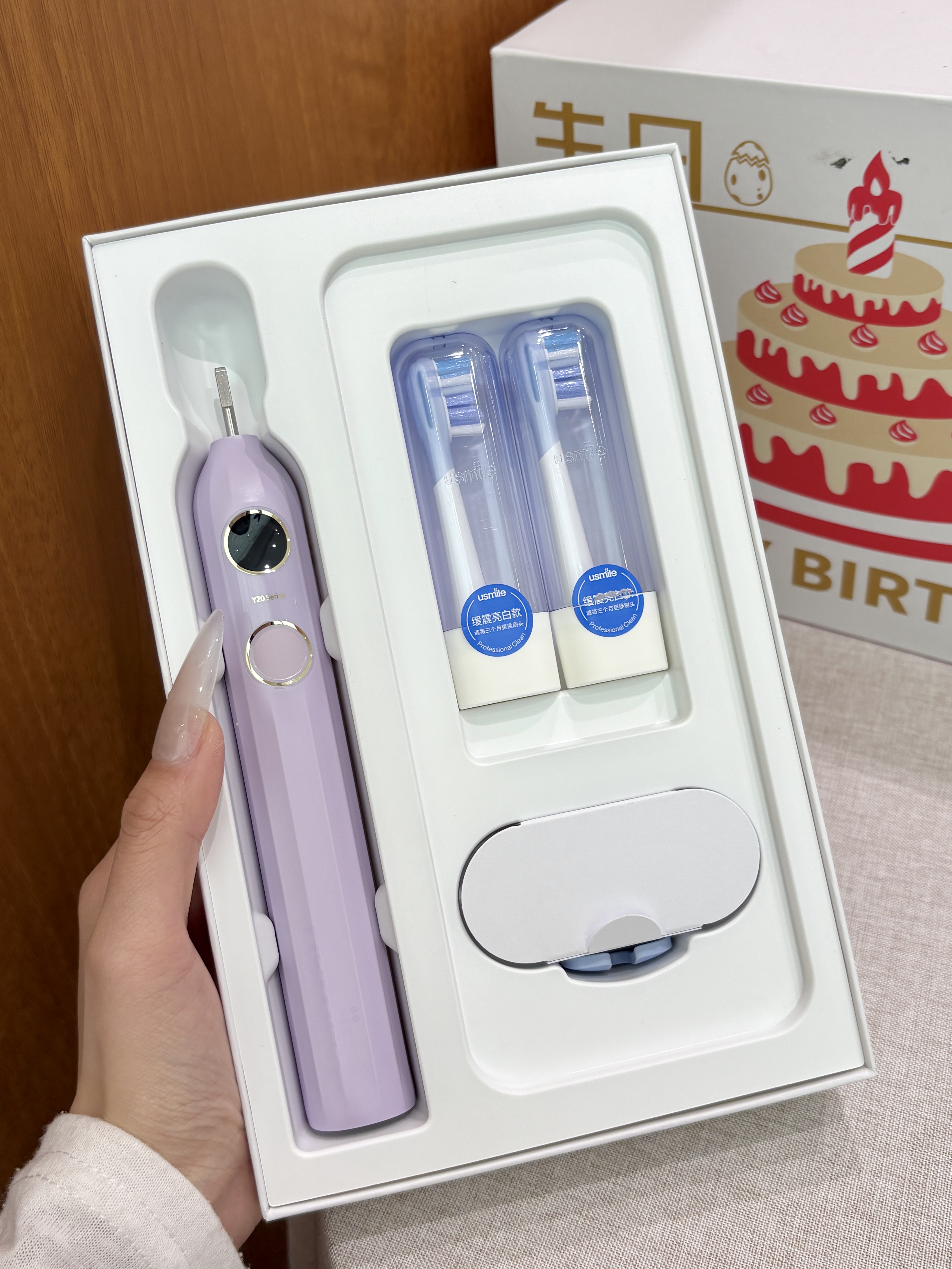 被这把usmile y20浅紫色电动牙刷圈粉了!💜 淡淡的紫色➕简约机身 放在洗漱台感觉都是装饰品呢 3种清洁模式➕显示屏 连手机APP还能自定义哇 他还会记录你刷牙的时间 如果刷牙时间不够还会提醒你哦 礼盒蛮有惊喜感嘟自用送礼都合适耶✌