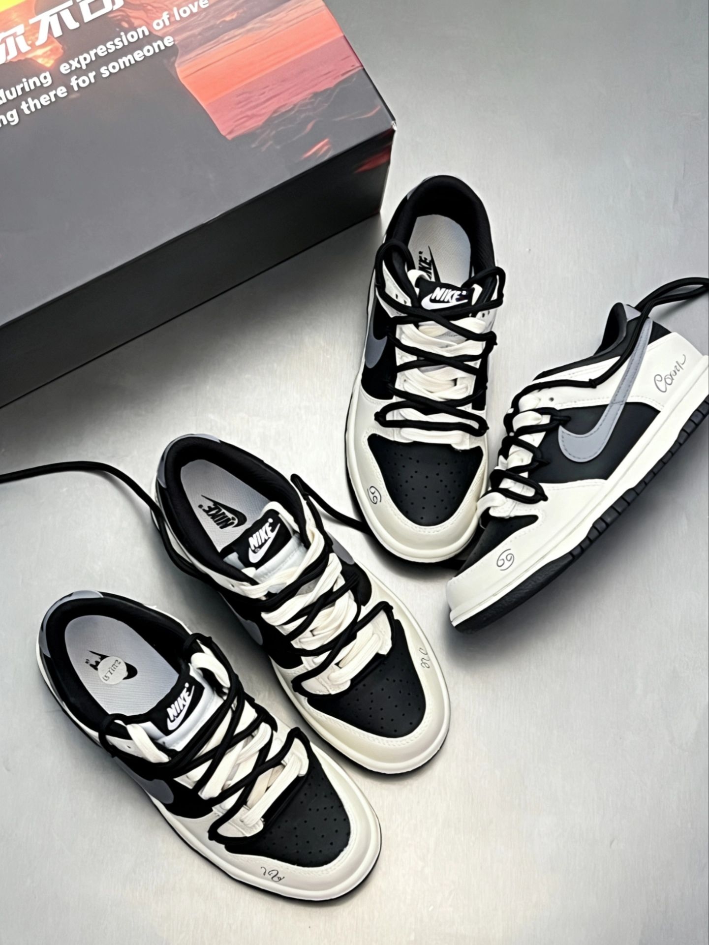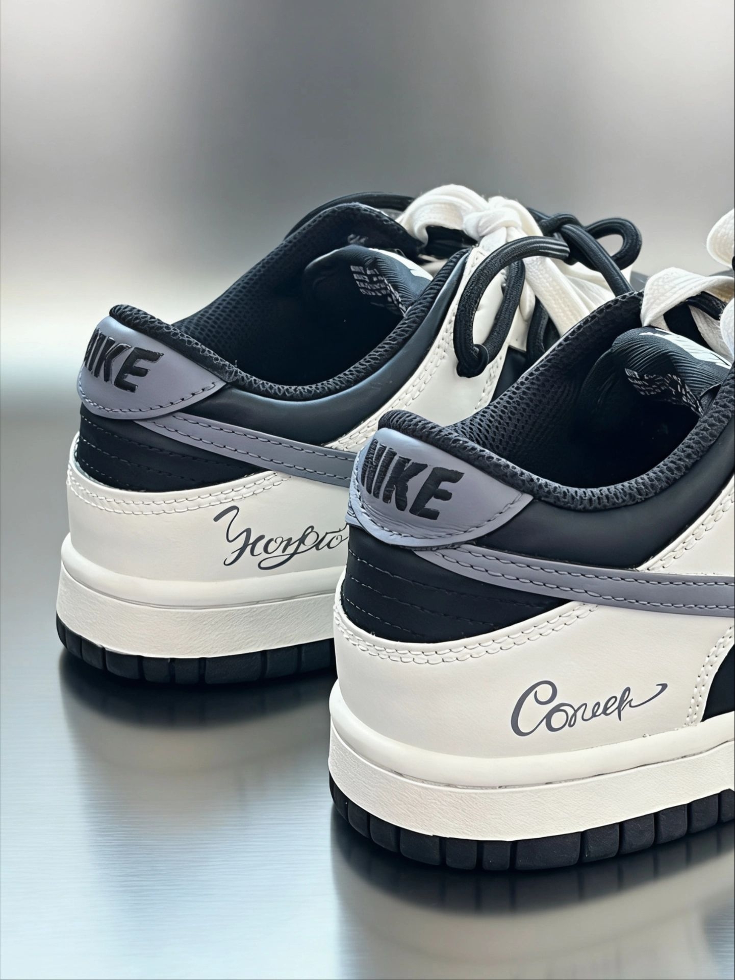 这双Nike板鞋黑白灰配色特别耐看,不挑衣服随便搭。鞋后跟的手写体设计很特别,双鞋带穿法层次感十足,细节拉满。日常上学、出门逛街穿都合适,搭配运动裤、裙子都好看,脚感也舒服#nike黑白灰配色 #2026新年鞋