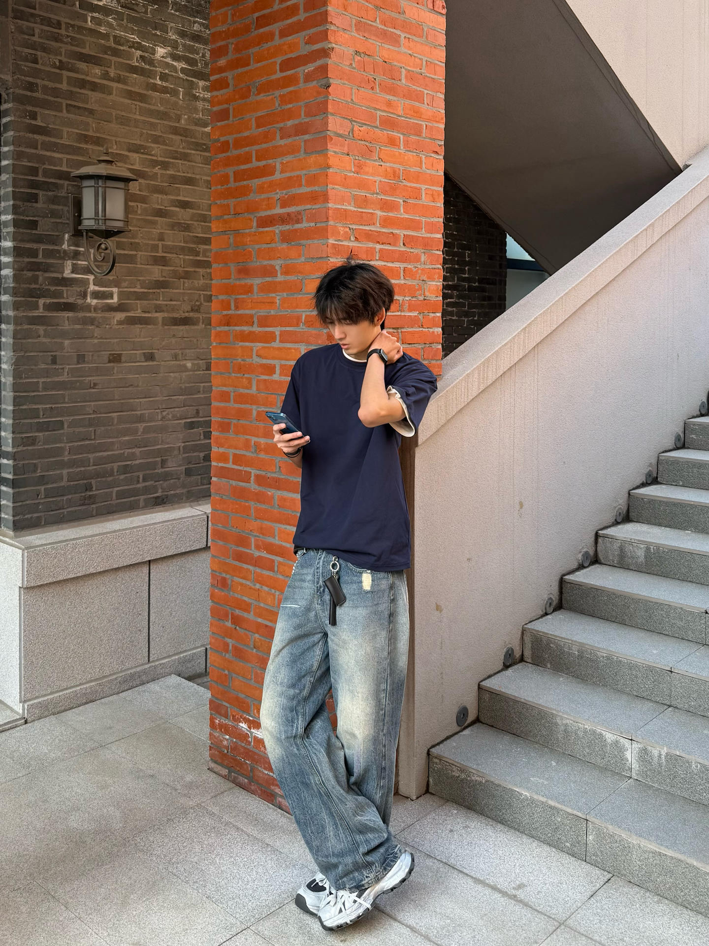 最近彻底开智了 发现日常穿搭 真的越简单越耐看👀 尤其是上班穿 极简风真的永远不出错✅ 今天这身就是Cleanfit 上身一件没有多余印花的藏青T👔 配上条阔腿蓝牛👖 全身上下主色不超过2个 没有花里胡哨的设计 视觉上干净又利落 整身搭配技巧 在于将主色控制在3个以内 用深浅色差做层次 没有多余装饰 越简单越有质感 果然 对日常上班来说 由繁入简才是很多人的选择吧✌️
