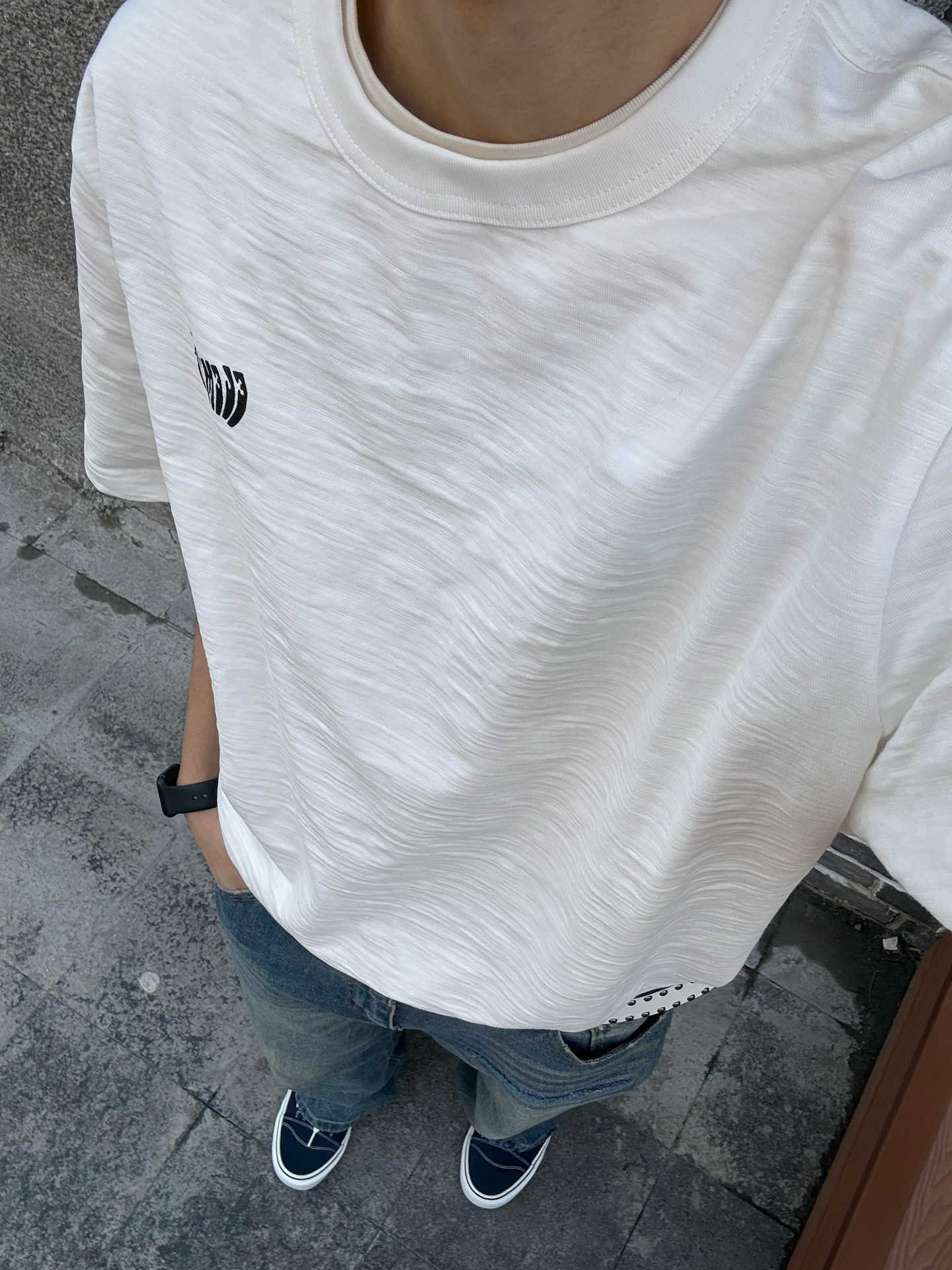 今天天气巨好 太阳暖得人发都发懒了☀️ 索性就搞身少年感穿搭 出门晃悠一圈吧 一件软乎乎的白T 带点小印花✌️ 配上条穿了水洗阔腿牛 踩双帆布鞋就ok了 今天的技巧还蛮快的 10s就搞定⬇️ 白T+牛仔 再用同色系的包顺色 拿个铆钉腰带卡腰线!配色这块不用愁了 随便capy起来不翻车 应该算是懒人福音了✅ 下午在老巷子里绕来绕去 坐台阶下面玩了玩手机📱这种慢悠悠的日子 还挺舒服的 感觉时间都慢了...