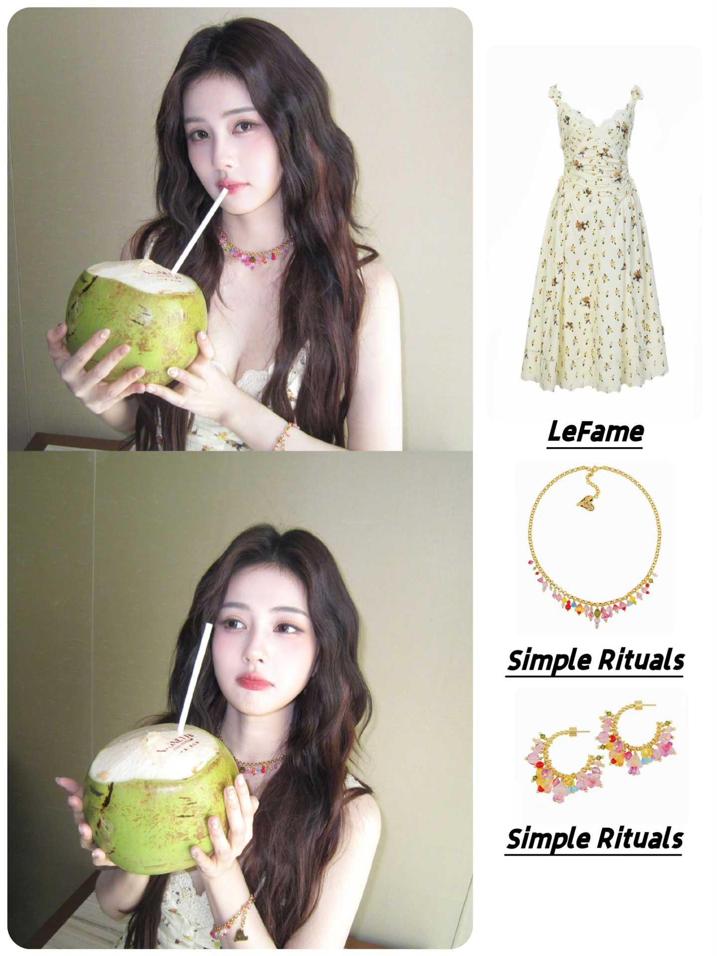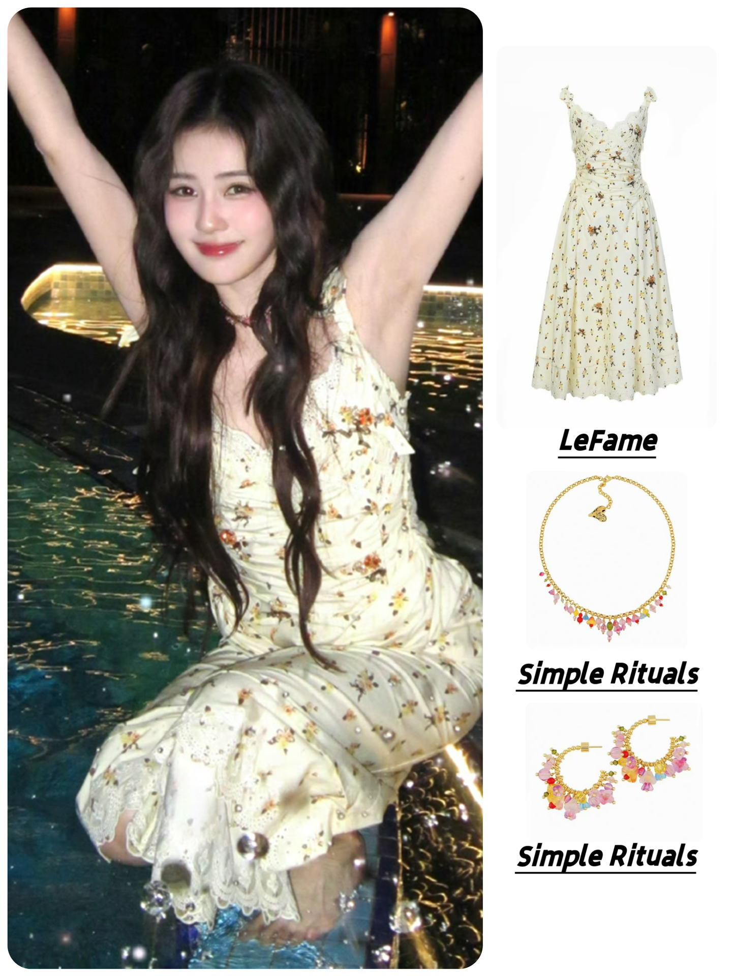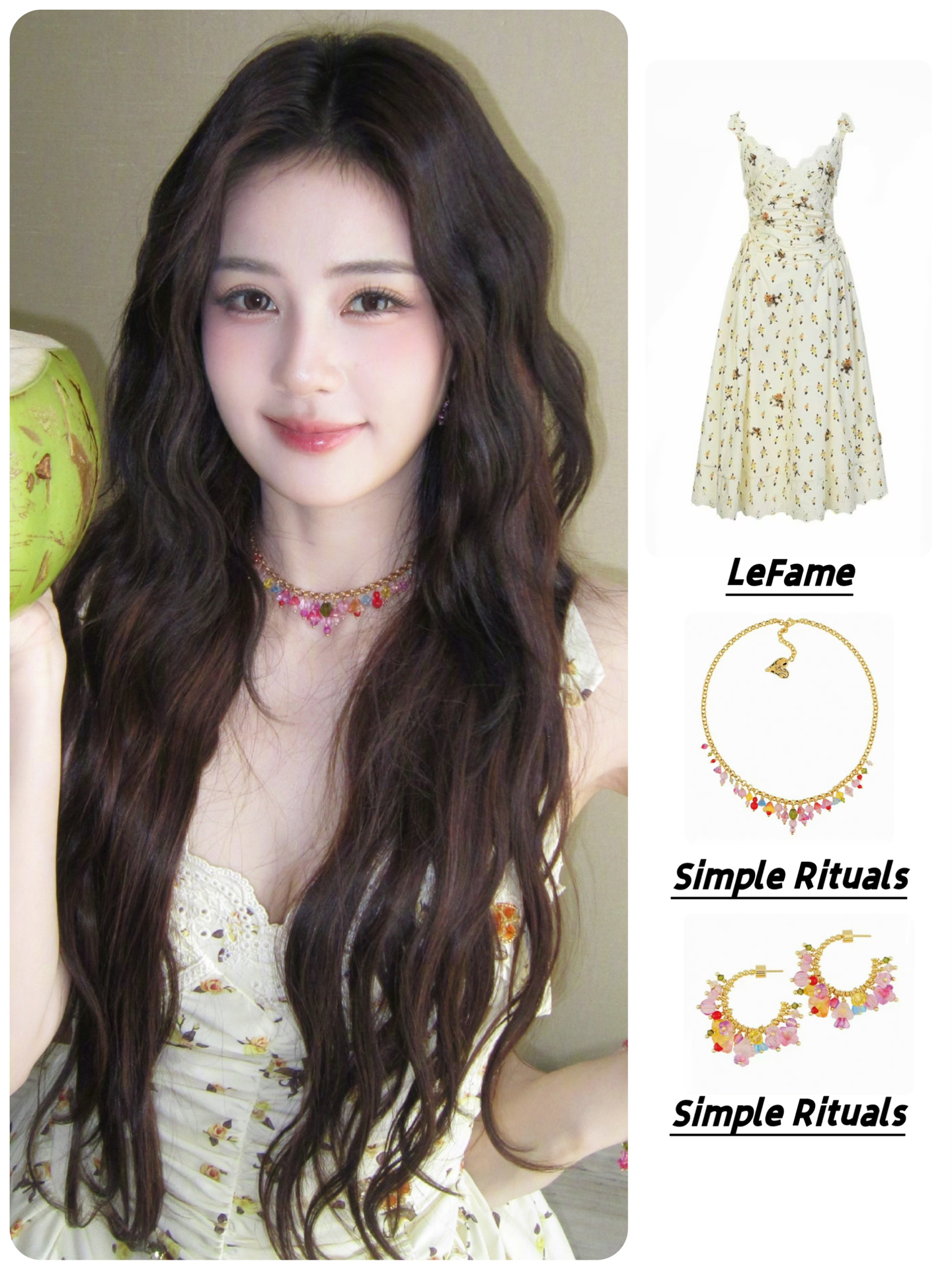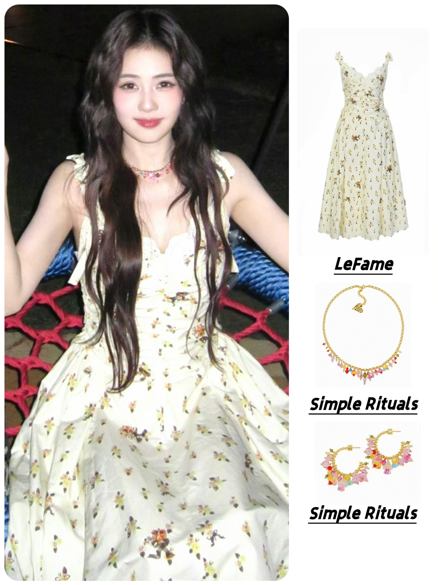👗LeFame田园印花珠饰碎花吊带连衣裙长裙 饰品:SimpleRituals彩色琉璃夏意花语项链手链