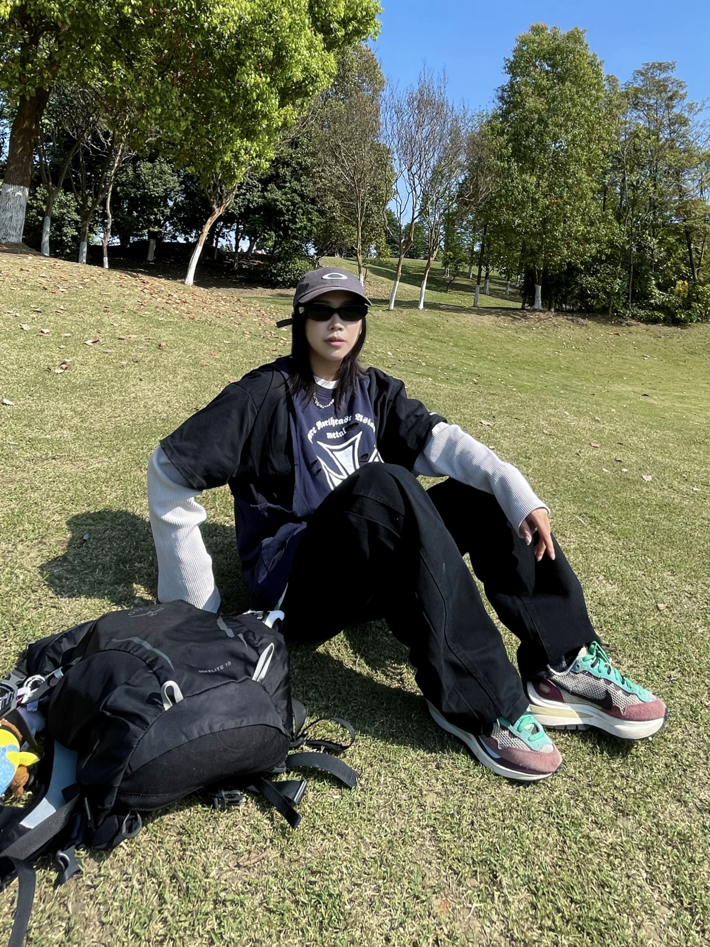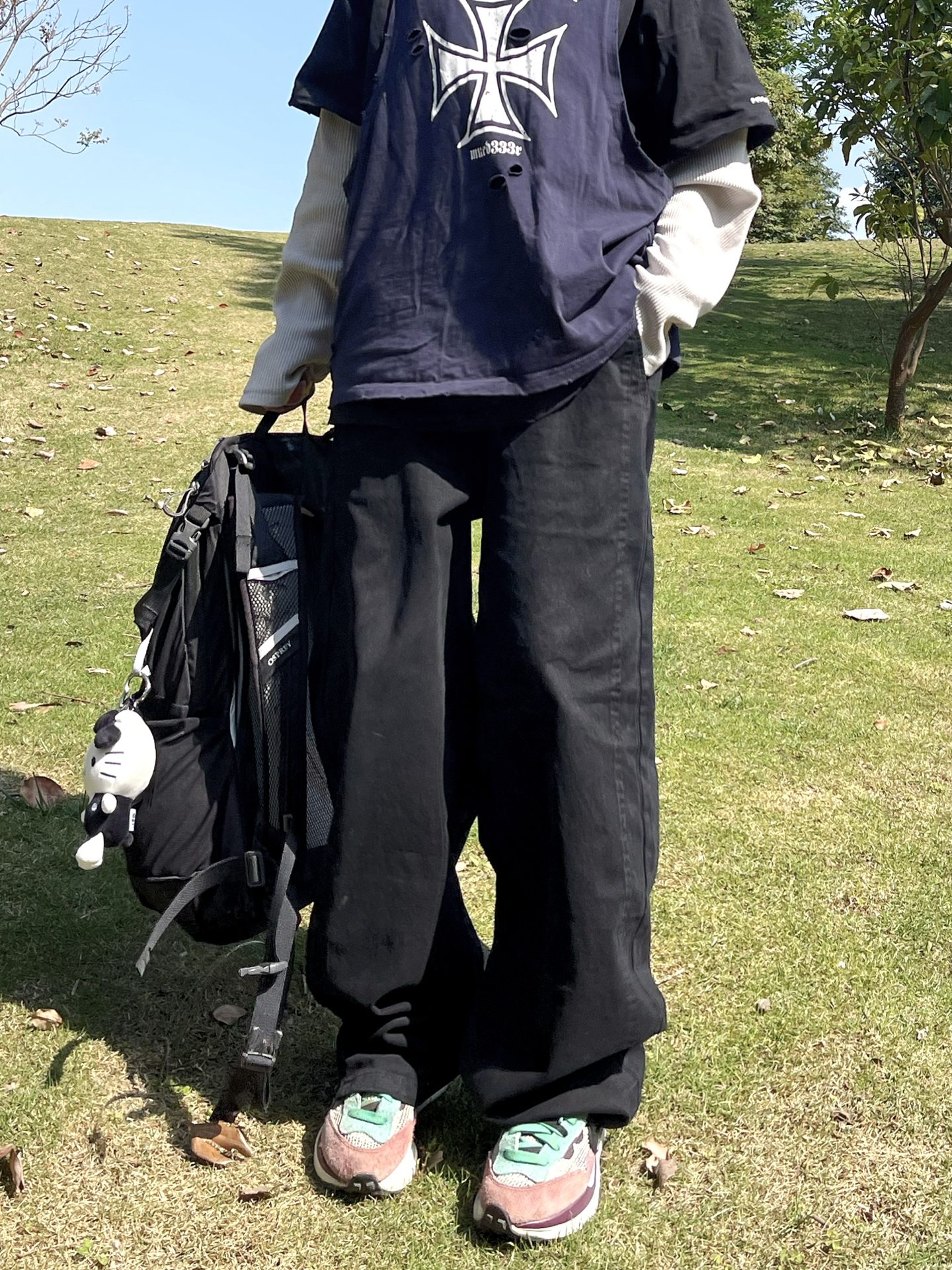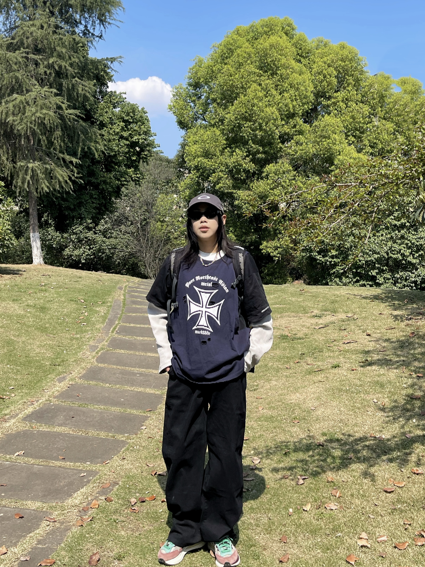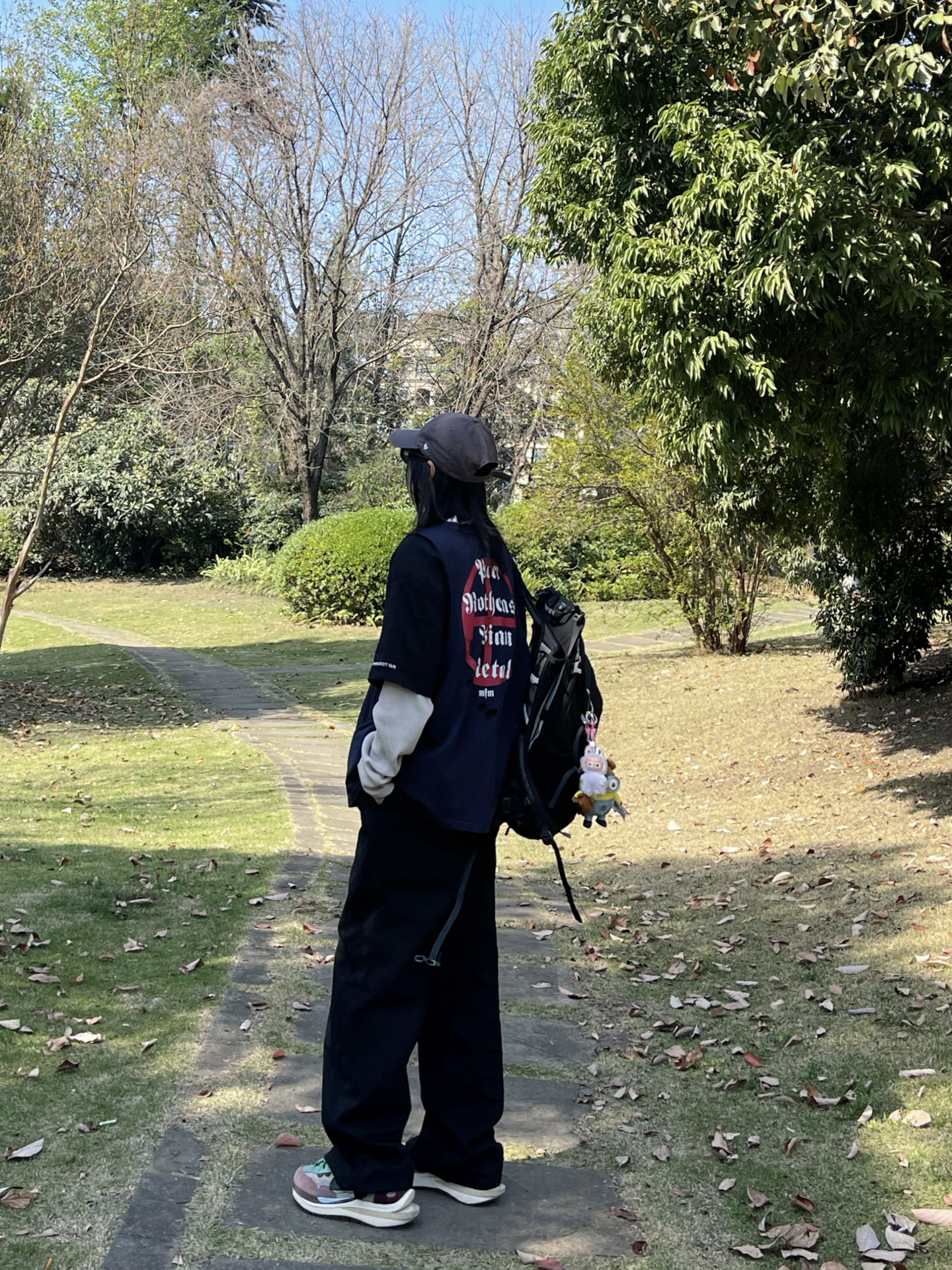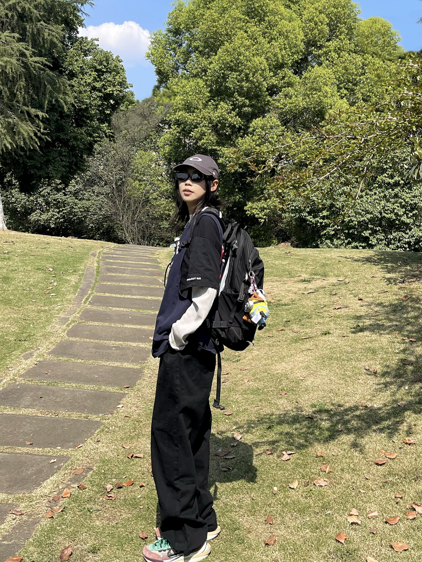天气这么好 适合出门踏青! 藏青印花T叠穿长袖不用费脑穿搭 阔腿牛仔裤太舒服了 对身材包容度超高 舒适慵懒 走路毫无束缚感 配上运动鞋和背包 周末出门玩穿这套舒服度满分💯 日常通勤穿也很不错呢✔️