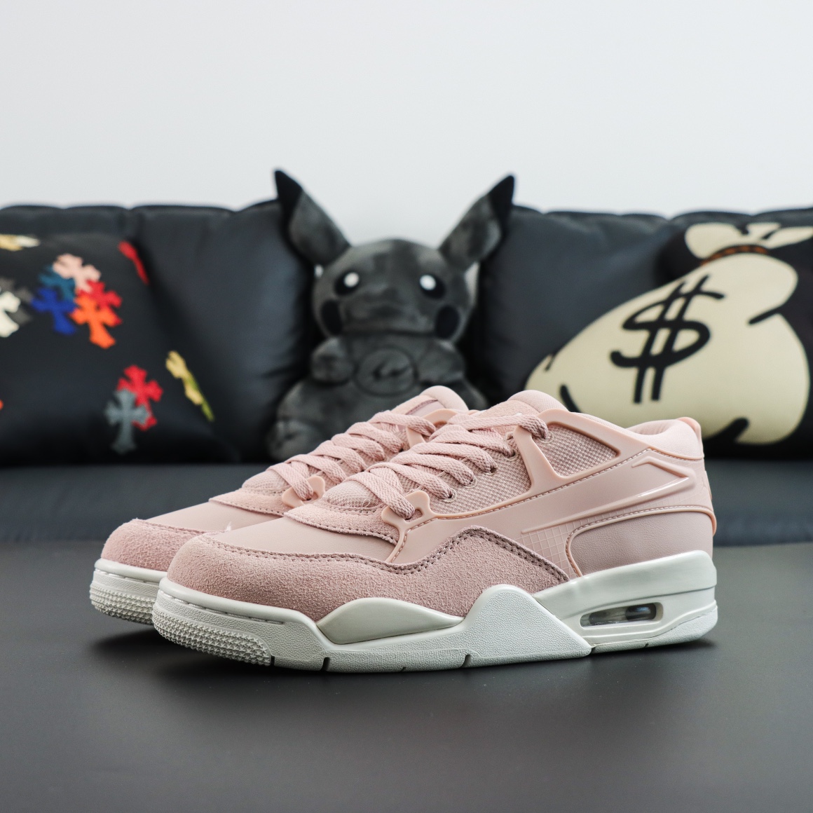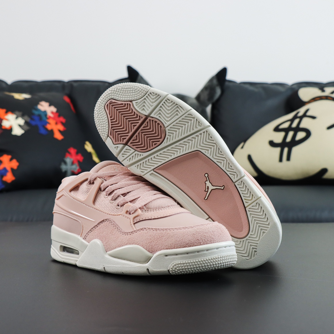 谁懂啊!这双Air Jordan 4RM粉牛津真的长在我审美点上了🥹 温柔裸粉+奶白中底,麂皮+皮革拼接质感拉满,上脚软乎乎的像踩在云朵里☁️ 后跟NIKE AIR标识+可视气垫,复古又精致,日常配牛仔裤、百褶裙都超绝! 甜妹/温柔风姐妹闭眼冲,春天穿它出门,回头率直接爆表💯