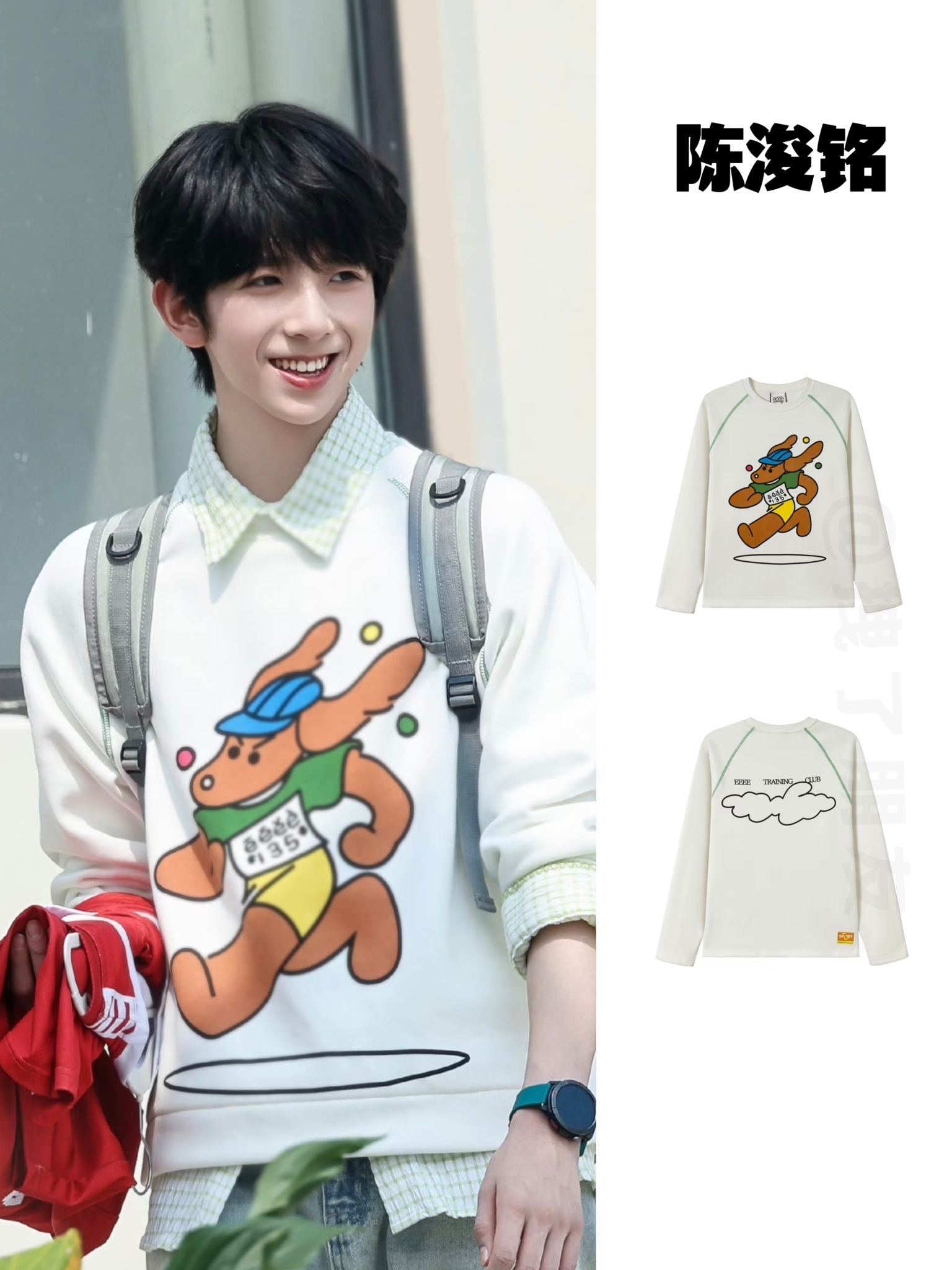 🧥eeeeArtmonster马拉松涂鸦小狗运动员印花圆领长袖打底衫加绒卫衣