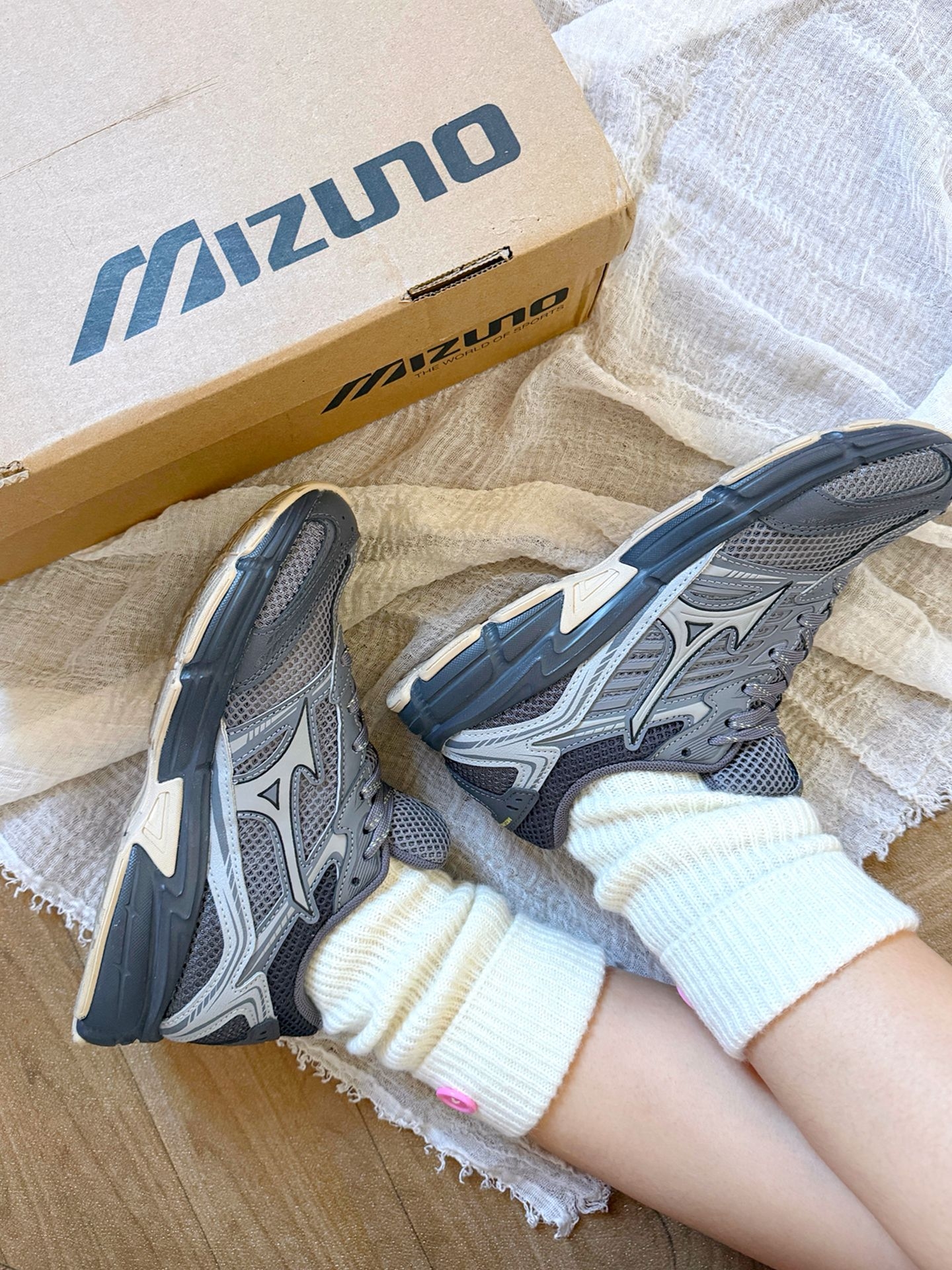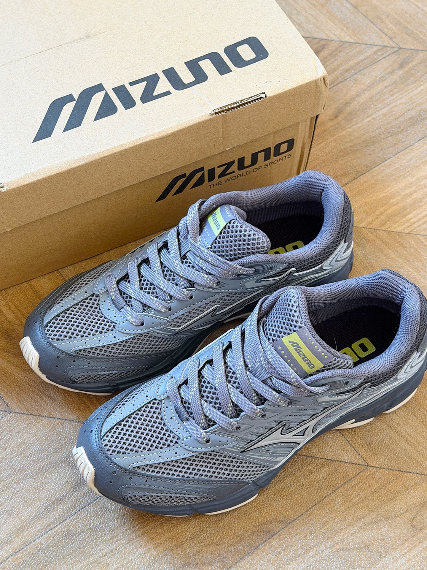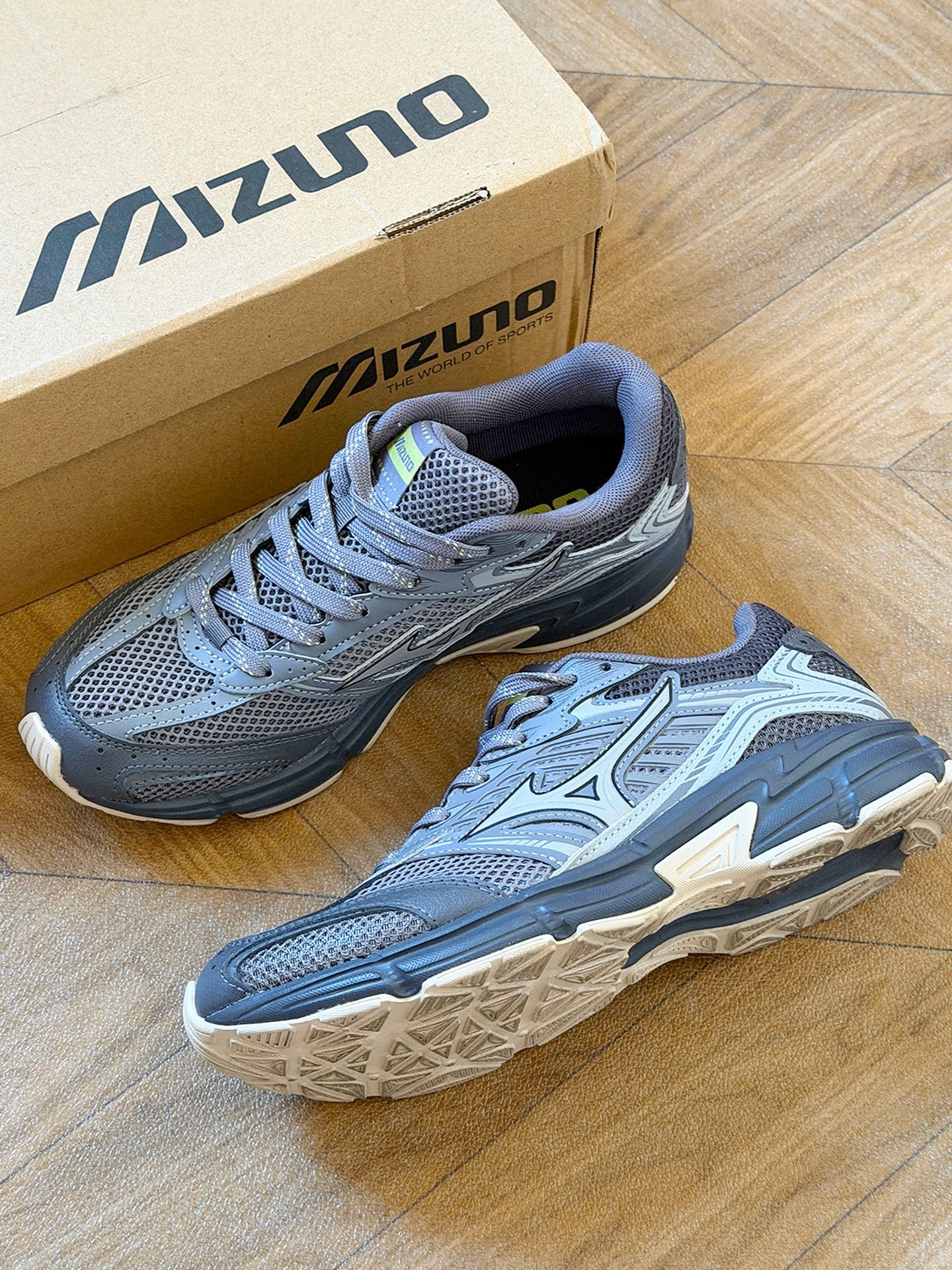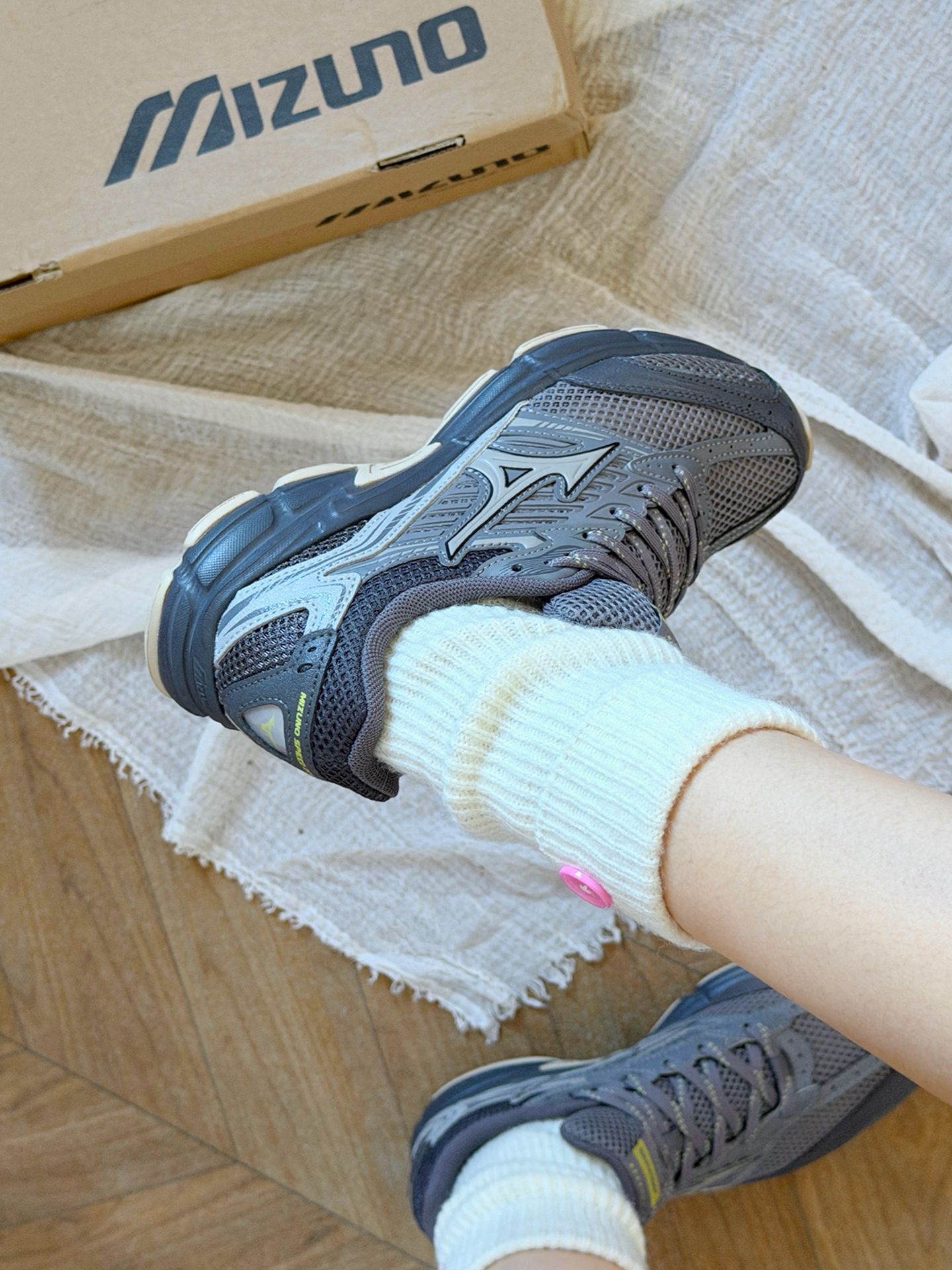 刚穿完这双 Mizuno 复古跑鞋,走了大半天路,网面透气不闷脚,缓震脚感很扎实👟 记一下,网眼缝隙易卡小碎屑,灰蓝拼色很复古,搭堆堆白袜刚好,鞋底抓地力稳📝 总之偏爱复古运动感的可以试试,日常出街或轻运动都适配💭