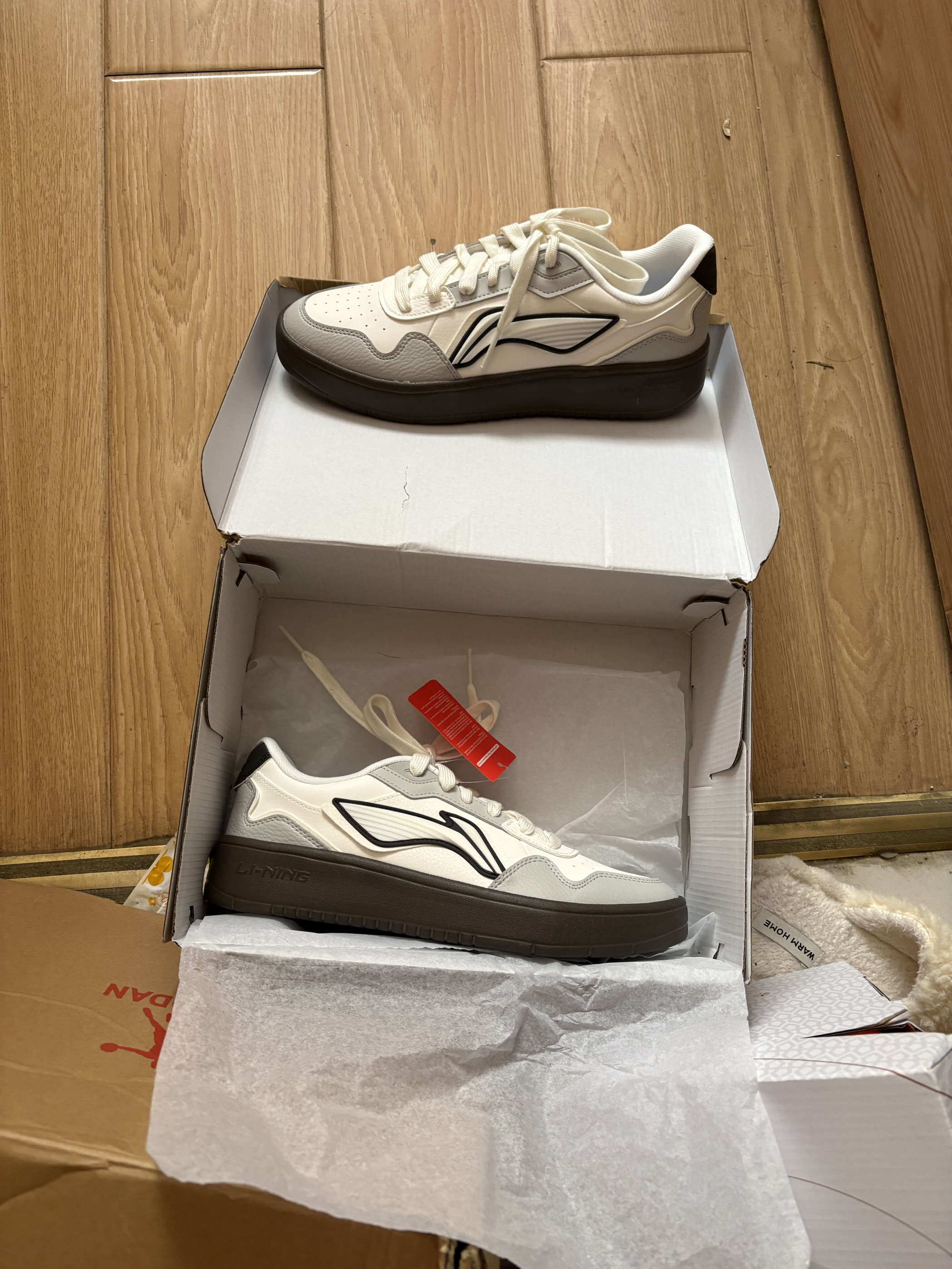 入手安踏欧文密码低帮板鞋有段时间了😌,浅色系配色很清新,搭牛仔裤、运动裤都不挑,日常出门穿很合适。脚感偏扎实,久走不累,鞋底耐磨度可以,穿了挺久没明显磨损,鞋身包裹贴合,不压脚背。三百左右的价格性价比在线,不管自己穿还是送朋友、男朋友都很拿得出手,质感配得上价位。 小缺点也有☝️,雨天鞋底防滑一般,瓷砖地面得慢走;天热穿会有点闷脚,更适合春秋季。整体来说是双很省心的日常板鞋,不用费心打理,细...